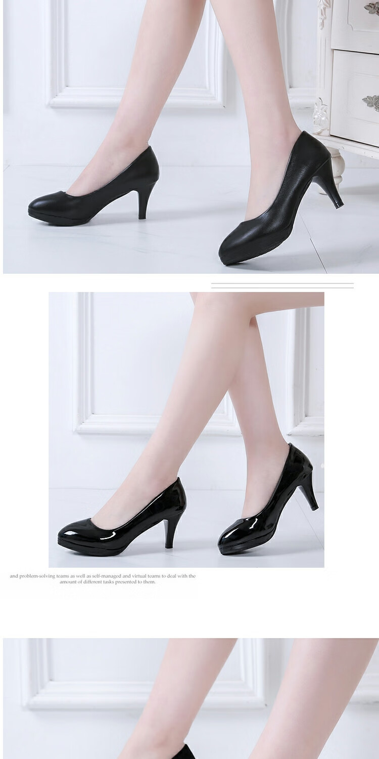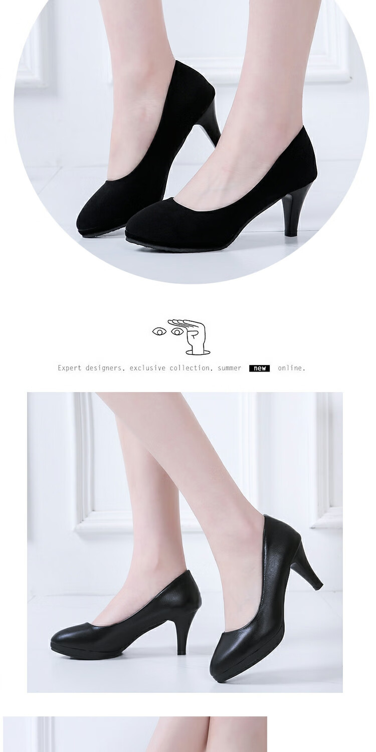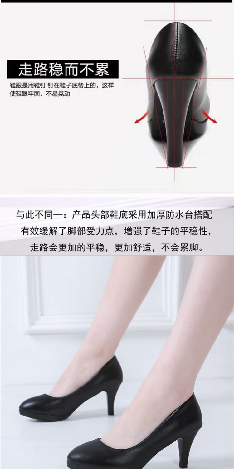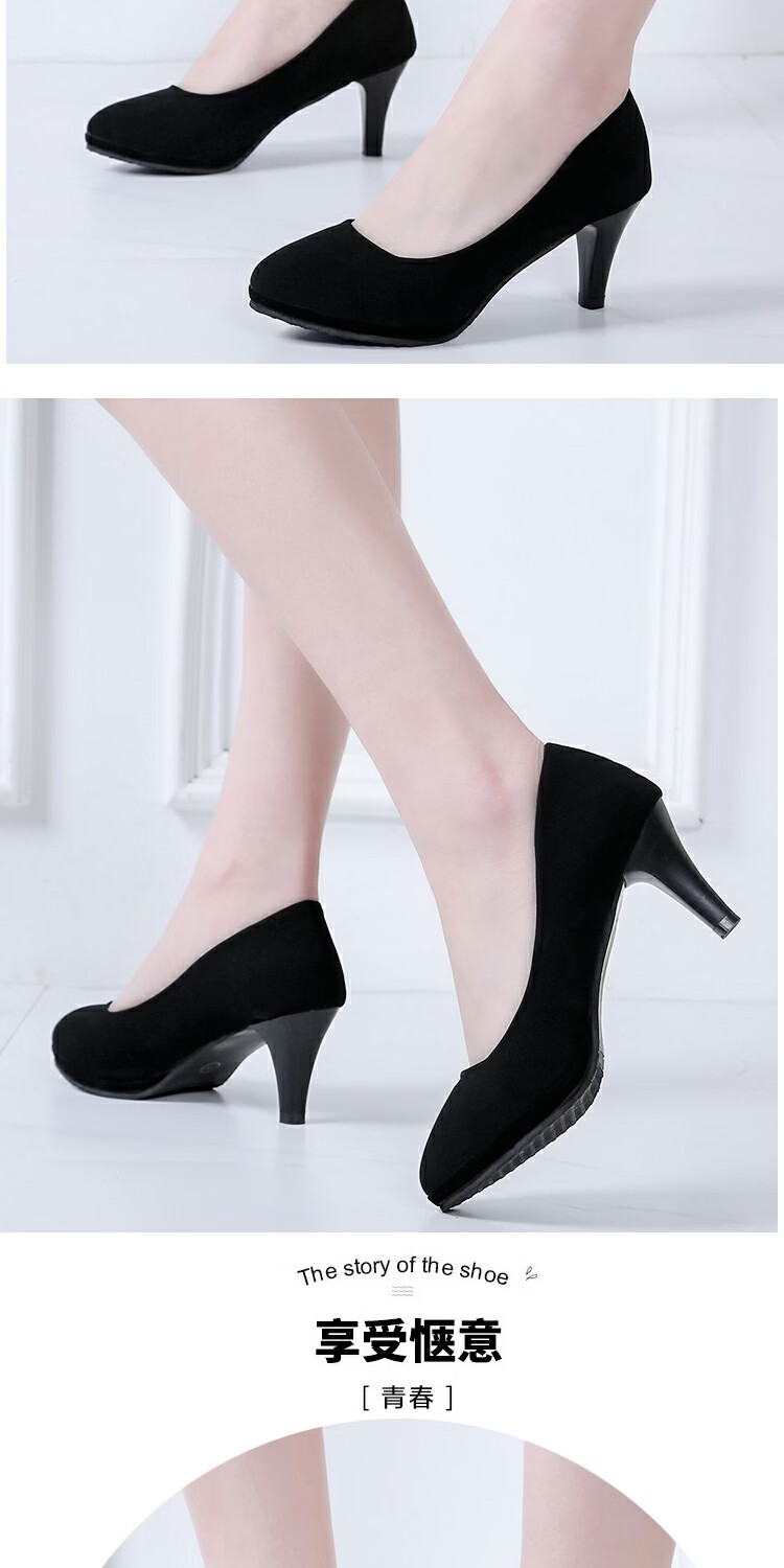 恒狮黑色高跟鞋女空乘面试空姐正装学生礼仪大码职业工作细跟圆头单鞋 太空灰 38