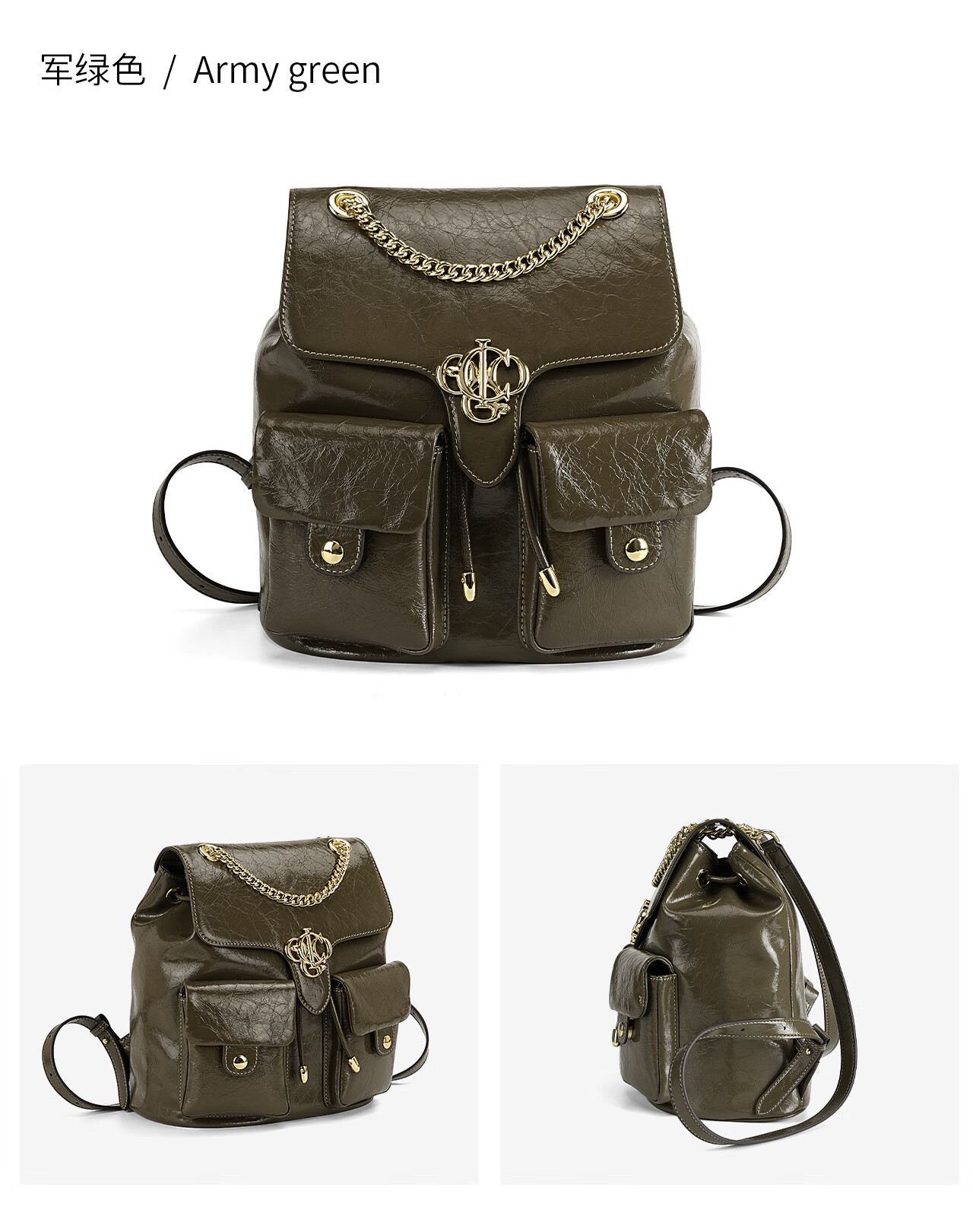 COOGI双肩包2025年女士大容量柔软多用背包书包双肩包包女包节日礼物 军绿色 25*15*27cm