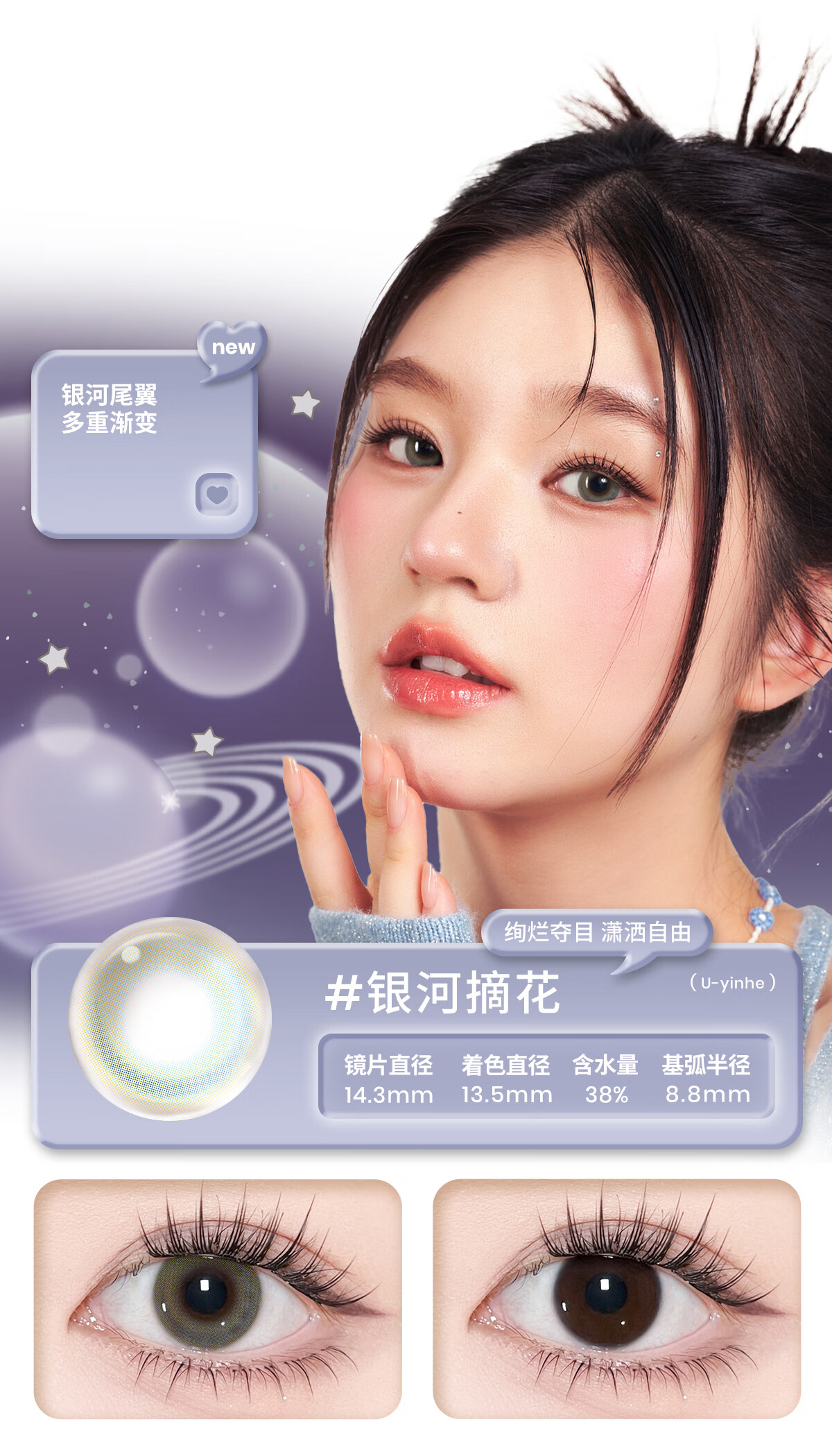 NANODOTS悬粒半年抛 cos混血美瞳隐形眼镜2片装moody美瞳三明治工艺 苹果派 | 满星花纹,上眼亮晶晶 425度