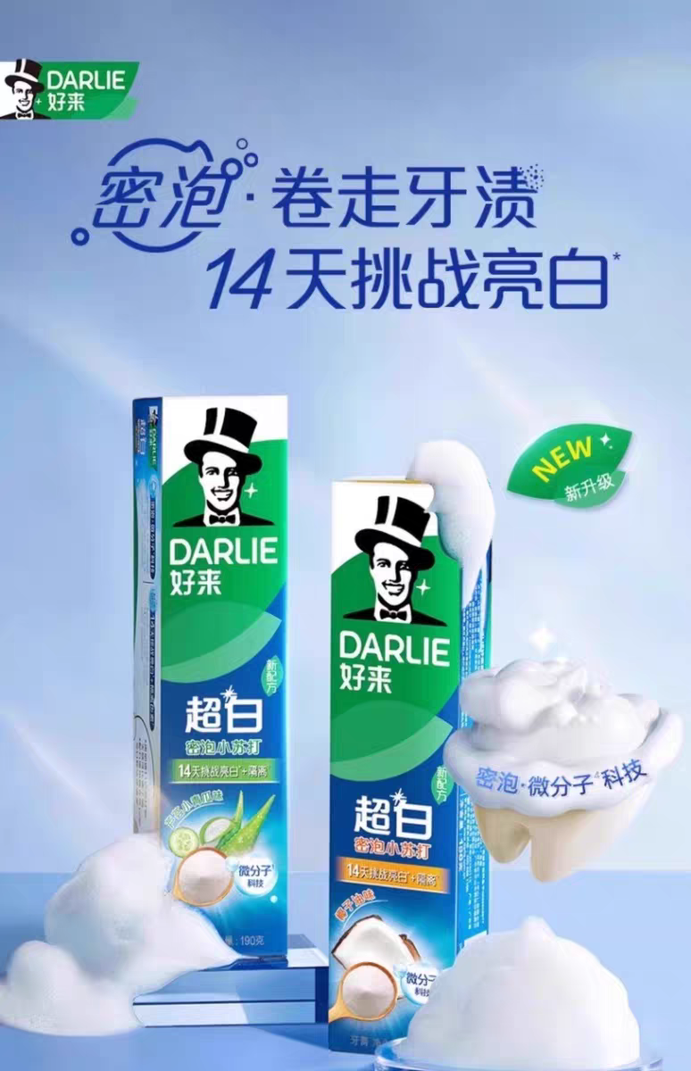 DARLIE(原黑人)好来小苏打超白密泡牙膏温和亮白椰香味旅行包装赠牙刷 【黑人好来牙膏1支】+【山姆吸盘牙刷5支】组合装