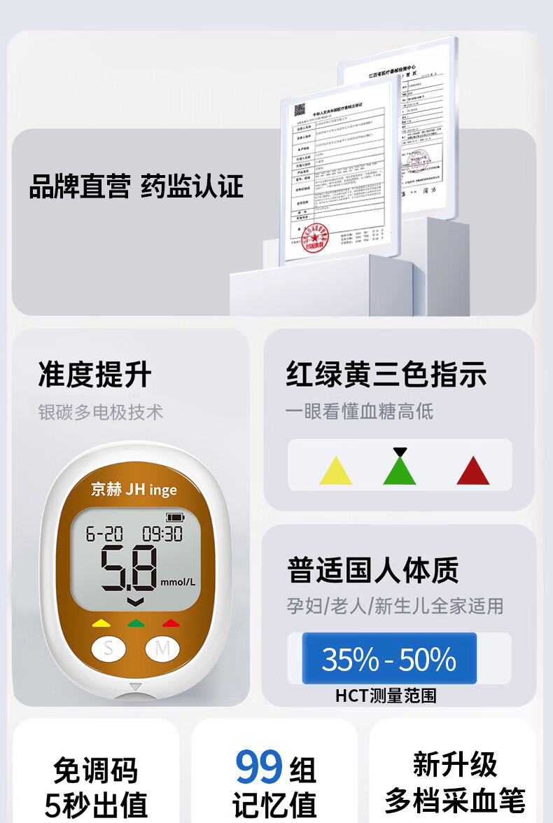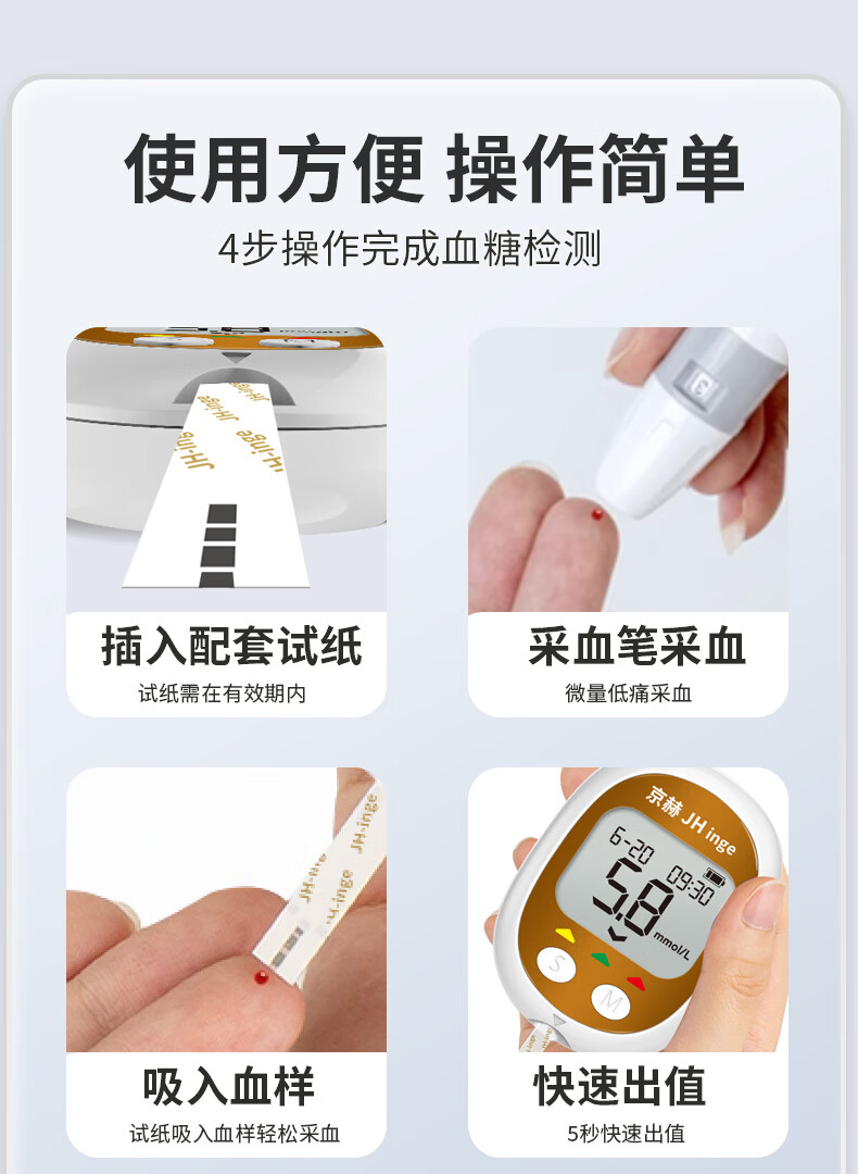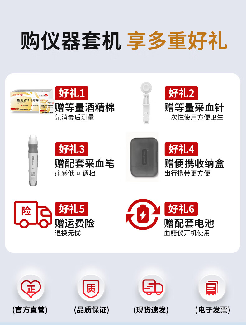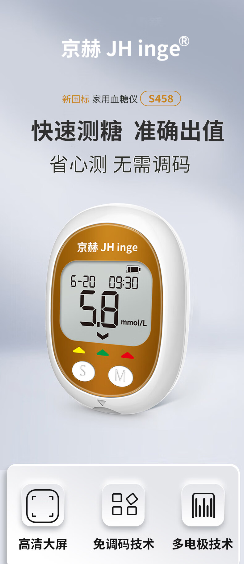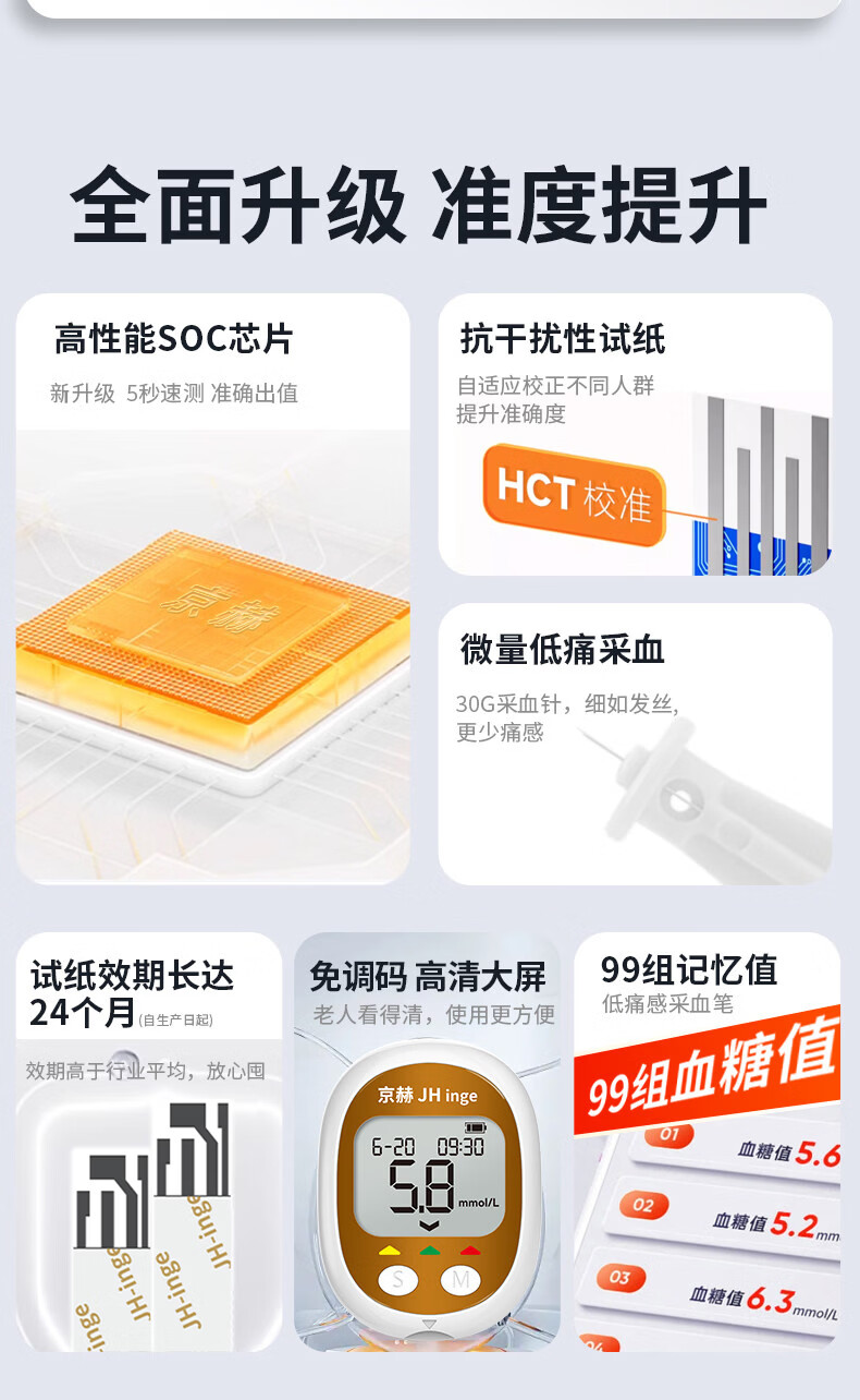京赫新国标血糖仪微痛采血笔脱氢酶测试法医用级准确出值血糖仪检测 血糖仪+采血三件套【无试纸】