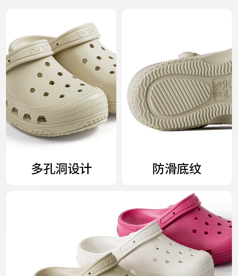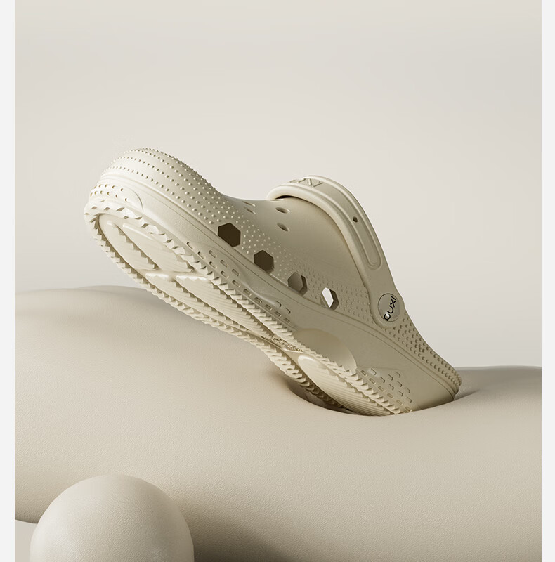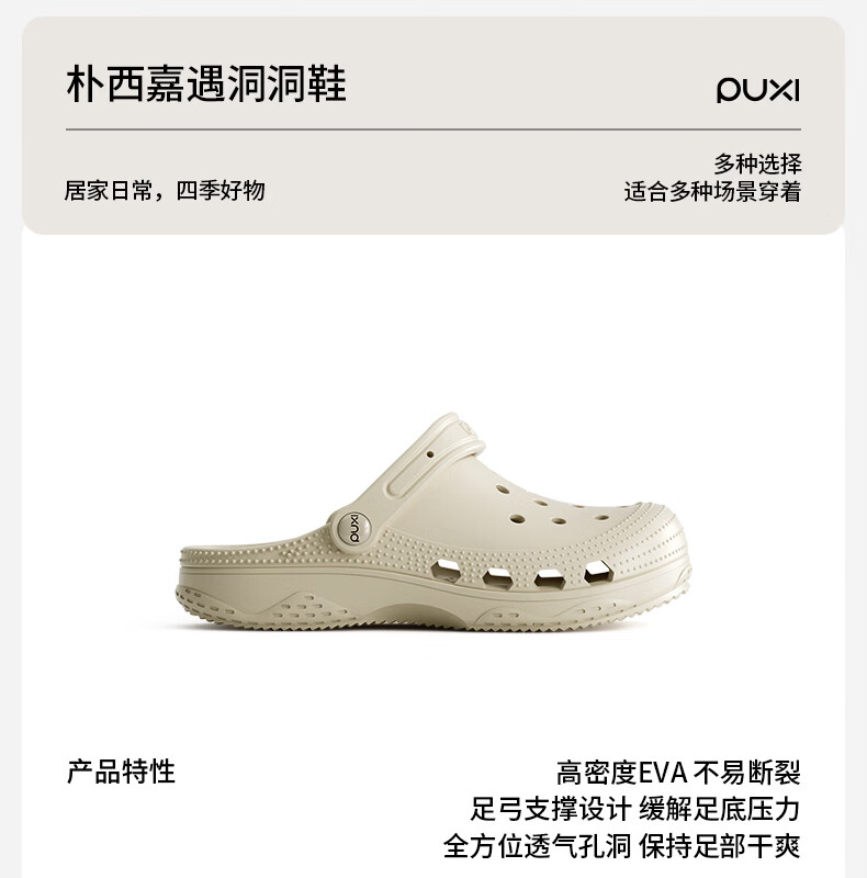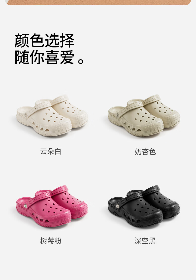 朴西嘉遇情侣软底洞洞鞋女士外穿夏季沙滩鞋eva防滑踩屎感凉鞋 奶杏色 37-38