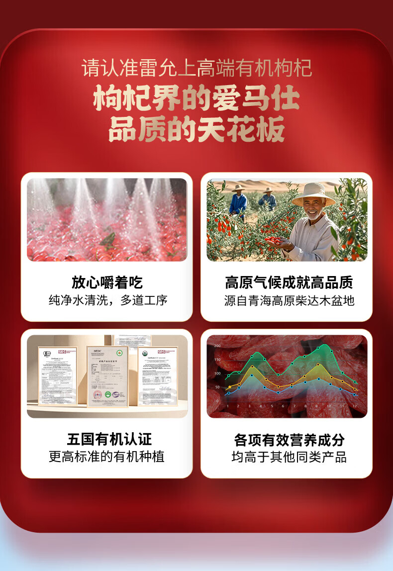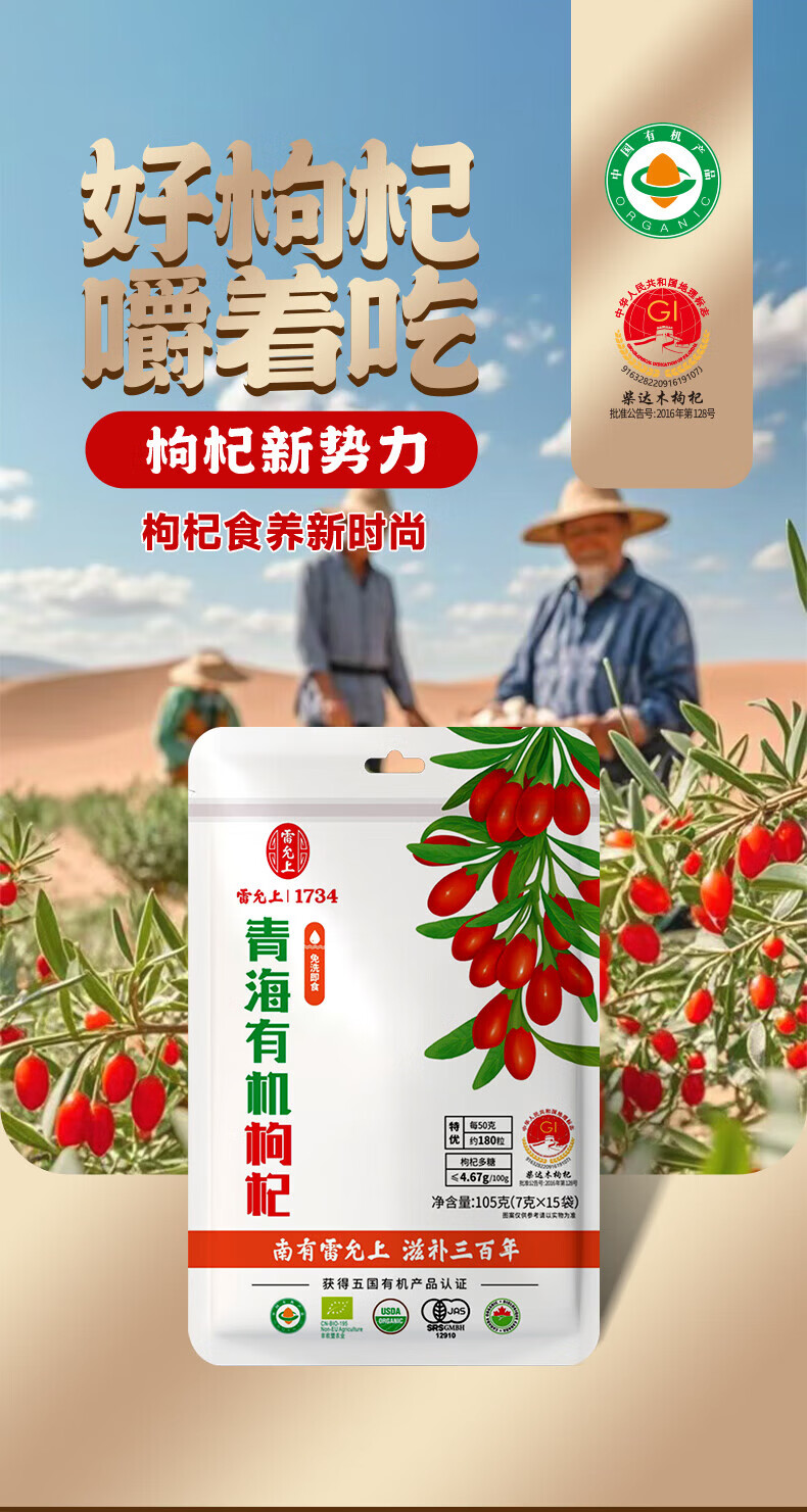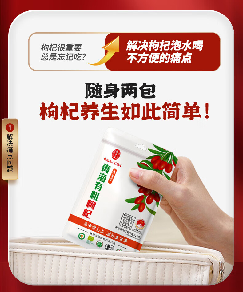 雷允上青海有机枸杞105g特优级小包装食品干净无硫枸杞泡茶泡水煲汤食材 105g*1袋