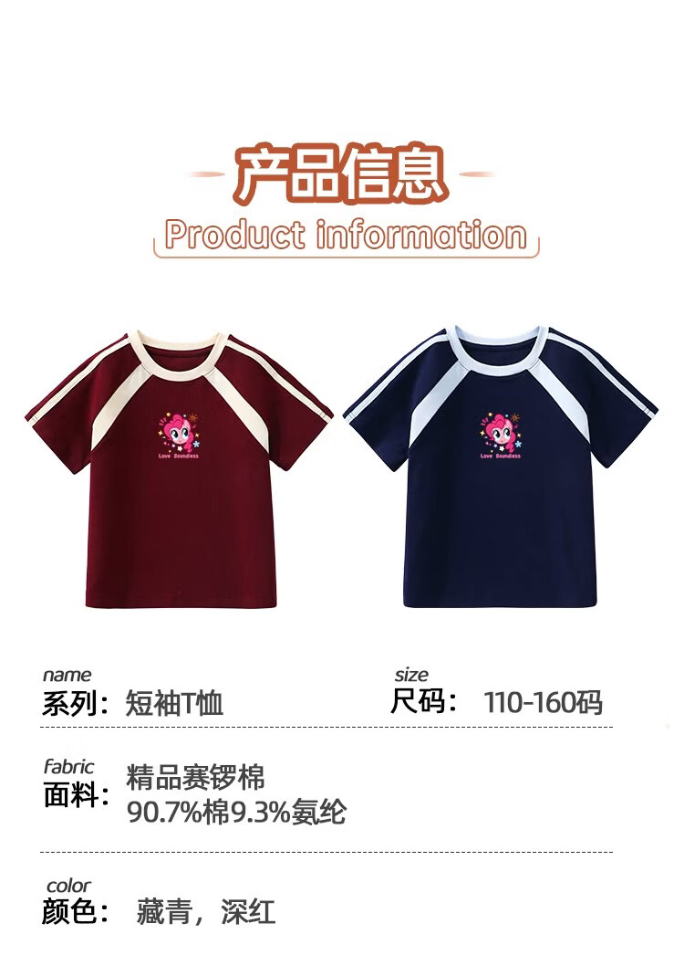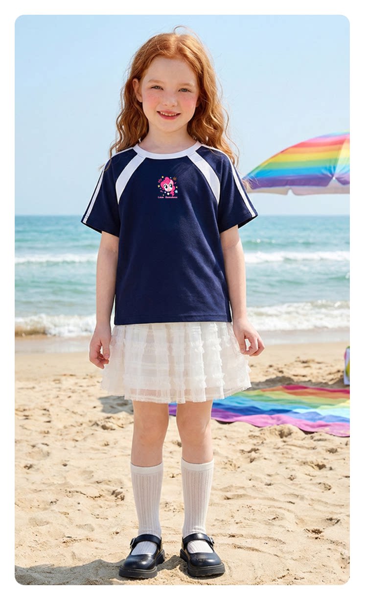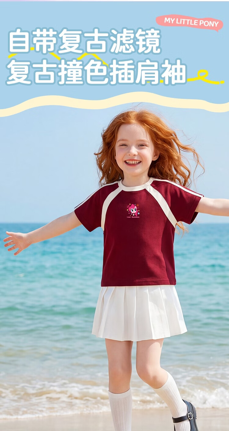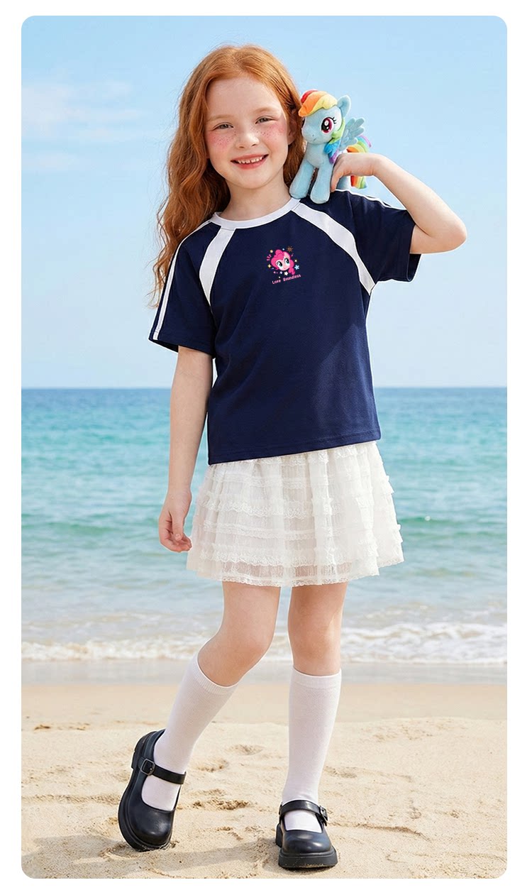 小马宝莉(MY LITTLE PONY)女童短袖T恤2026夏季新款小女孩时髦半袖儿童运动风上衣t 【圆领短袖T恤】闪耀碧琪藏青 140 140cm