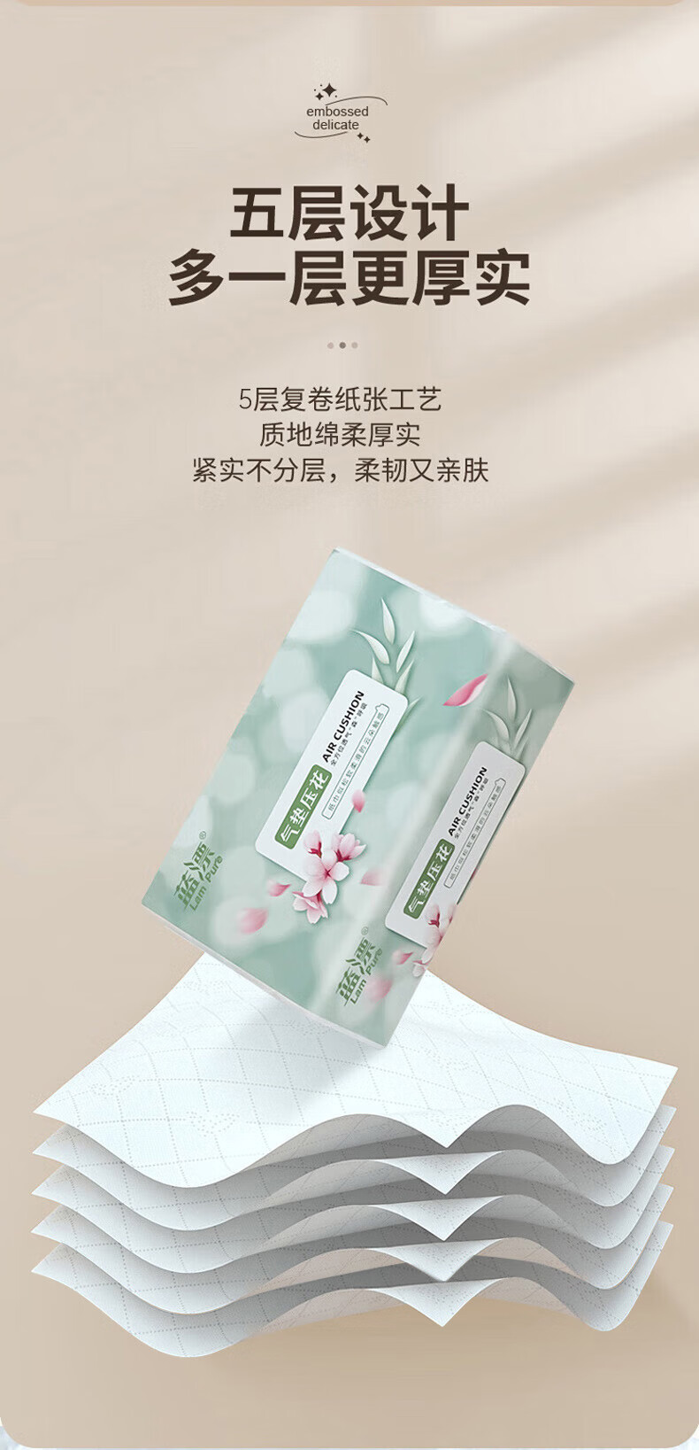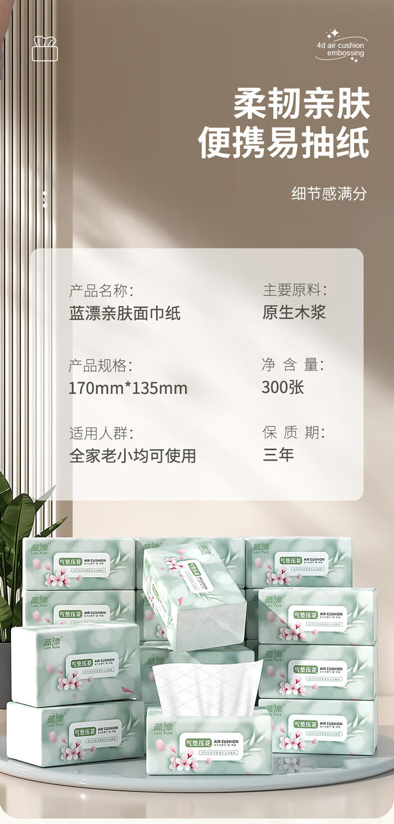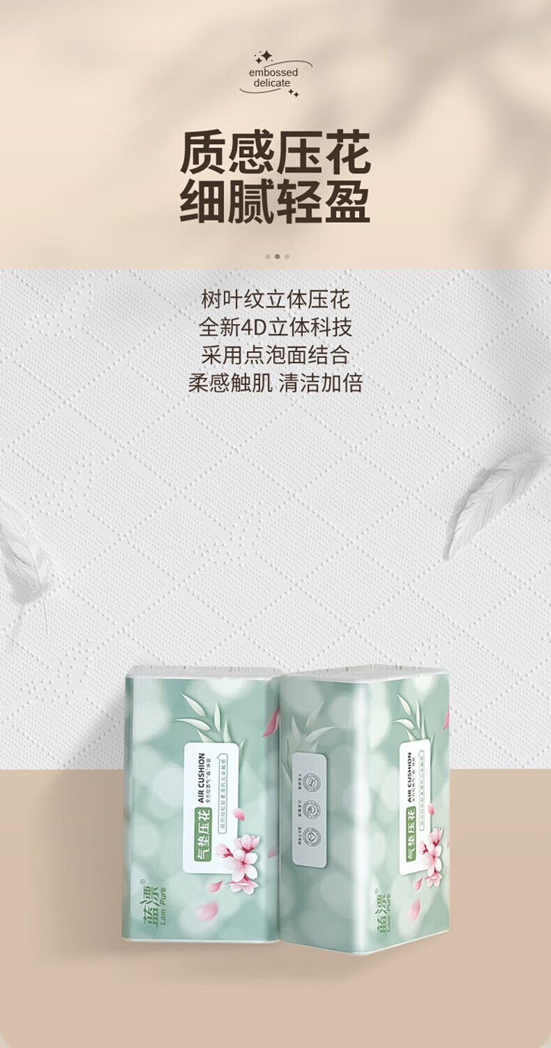 【超值】蓝漂白色纸巾抽纸 300张层加厚 湿水不易破纸巾餐巾纸 5层 300张*5包