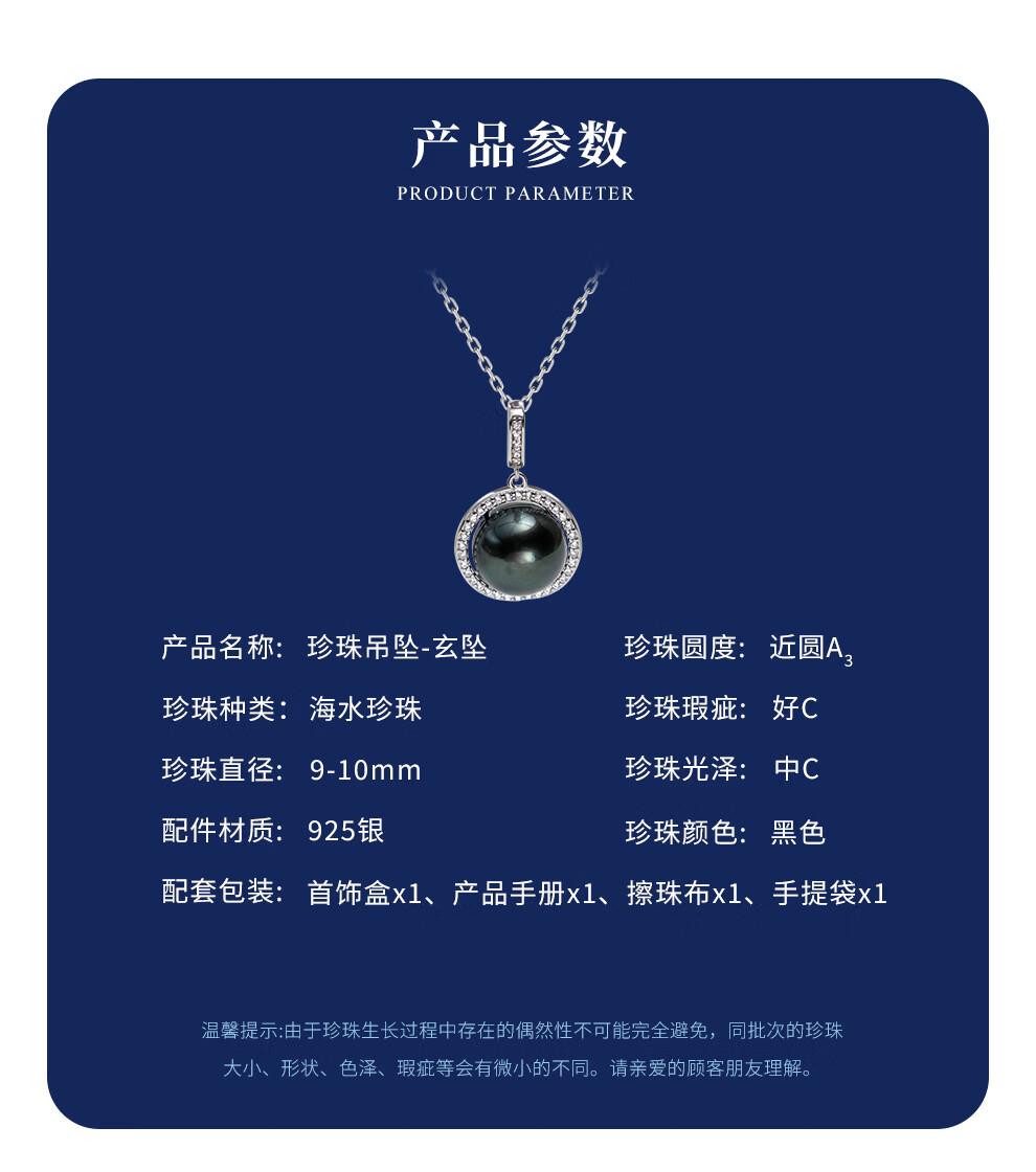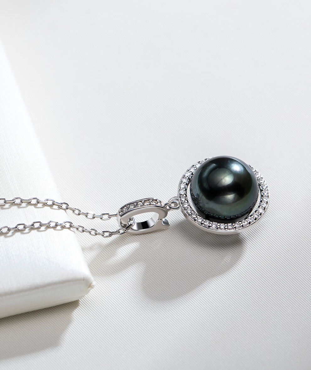 南珠宫玄坠925银大溪地海水珍珠吊坠日常通勤百搭新年礼物送礼女 9.0-10.0mm 925银海水珍珠吊坠