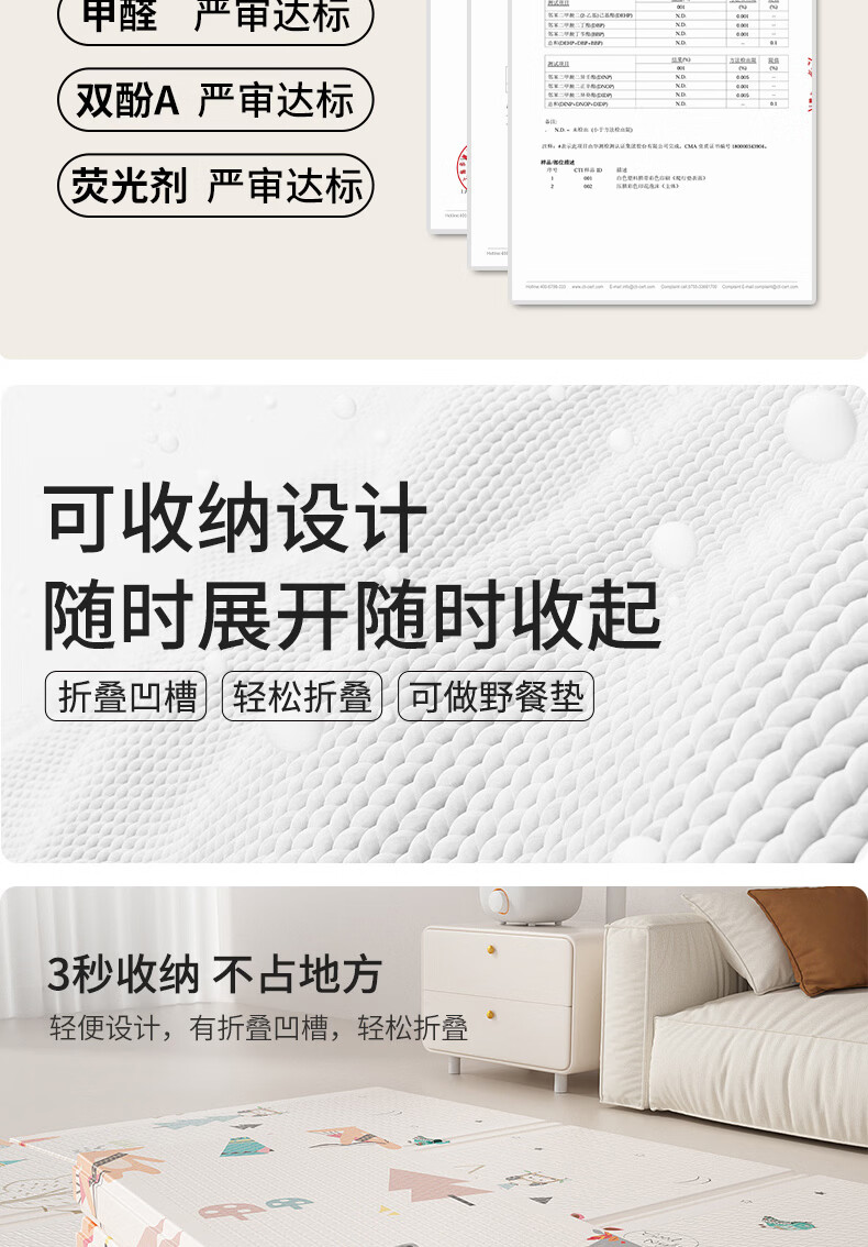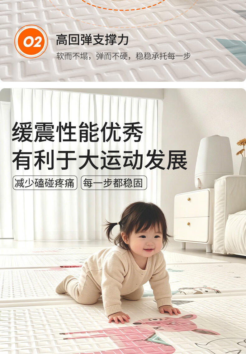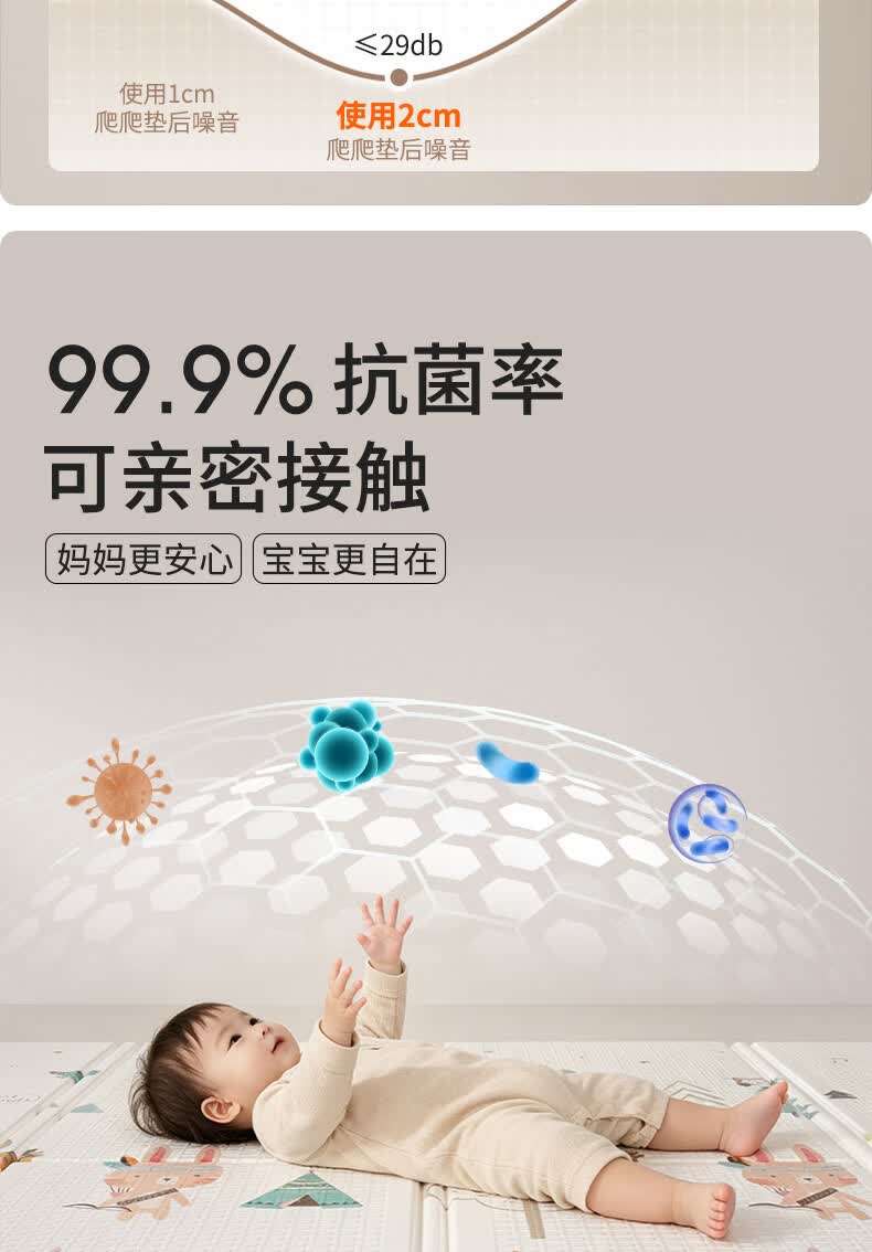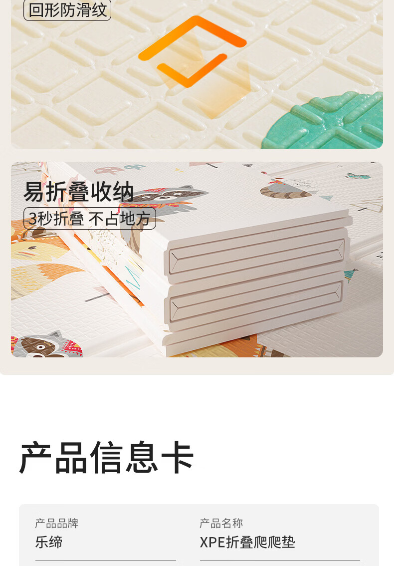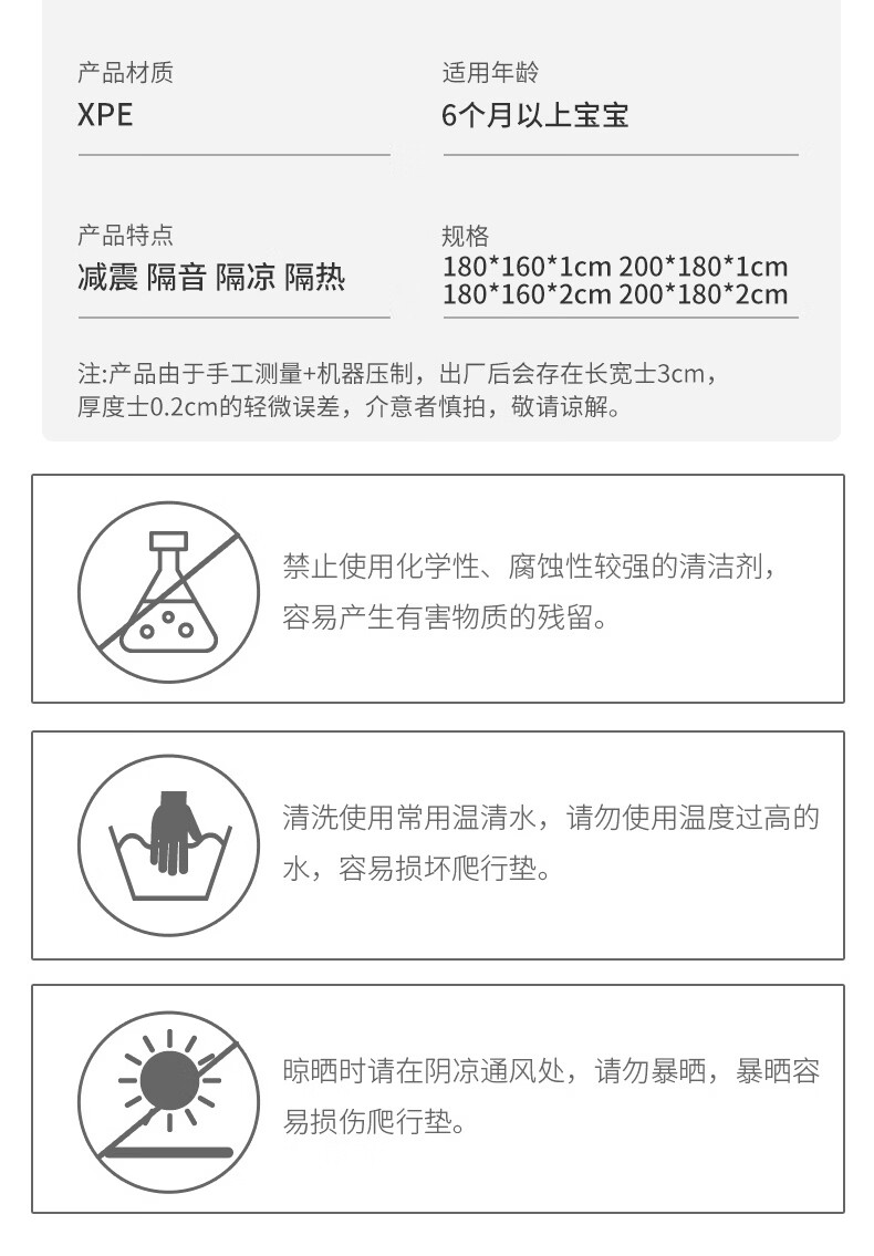乐缔XPE宝宝爬行垫双面抗菌折叠爬爬垫婴儿童加厚泡沫地垫180*160*1CM