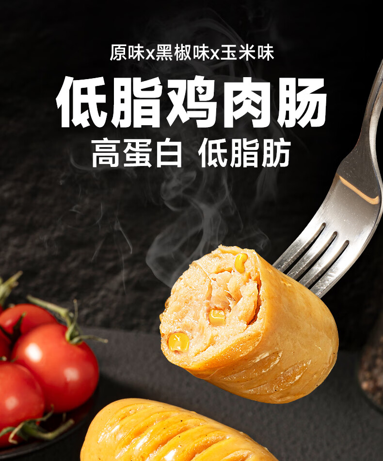 比比赞(BIBIZAN)玉米肠240g约12根鸡胸肉即食香肠高蛋白健身饱腹代餐火腿肠零食