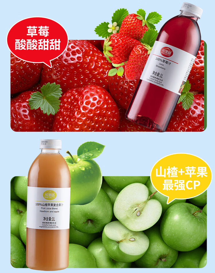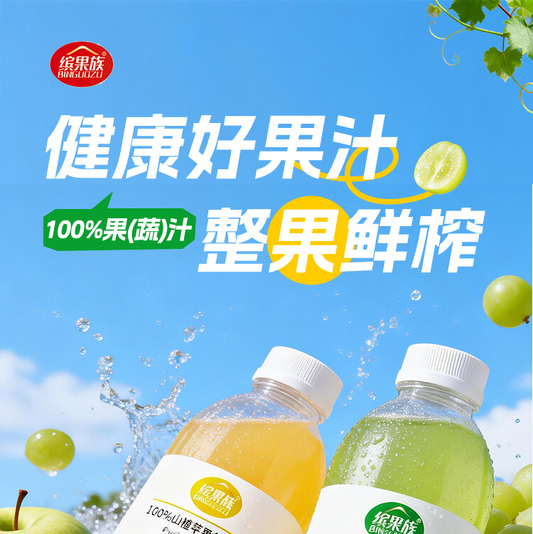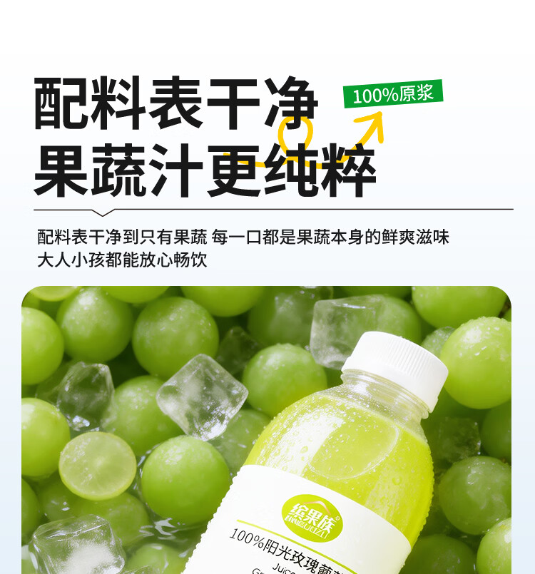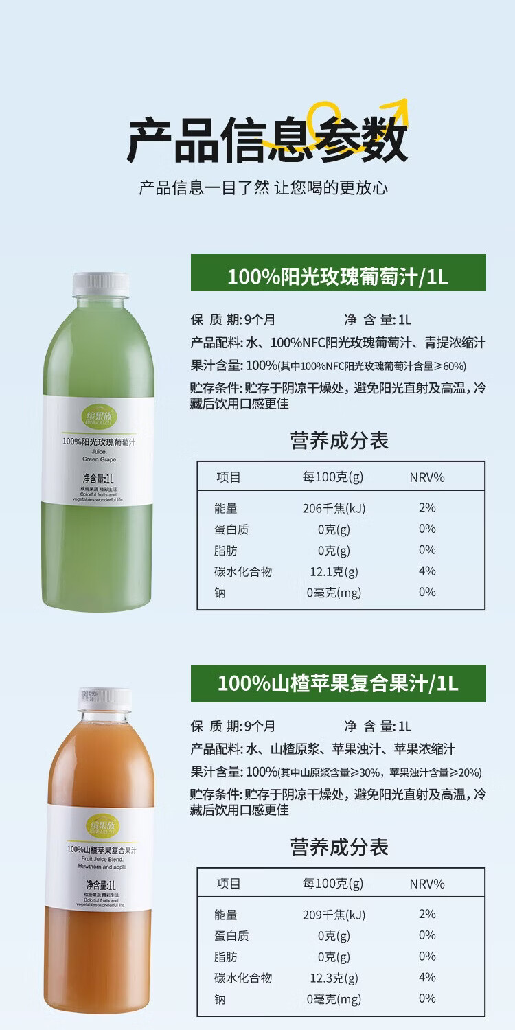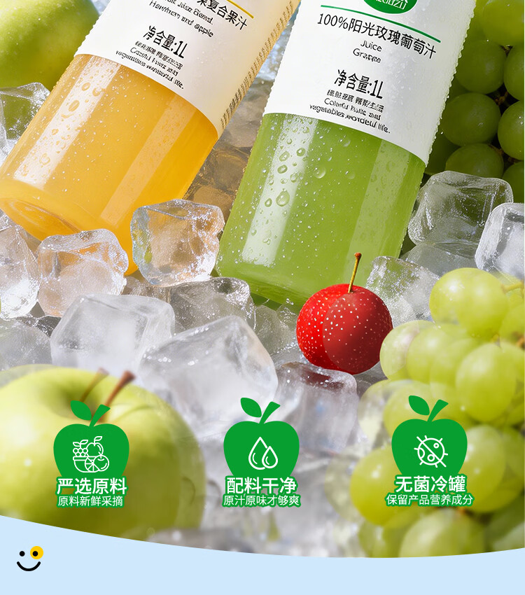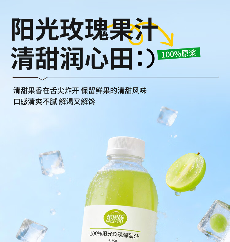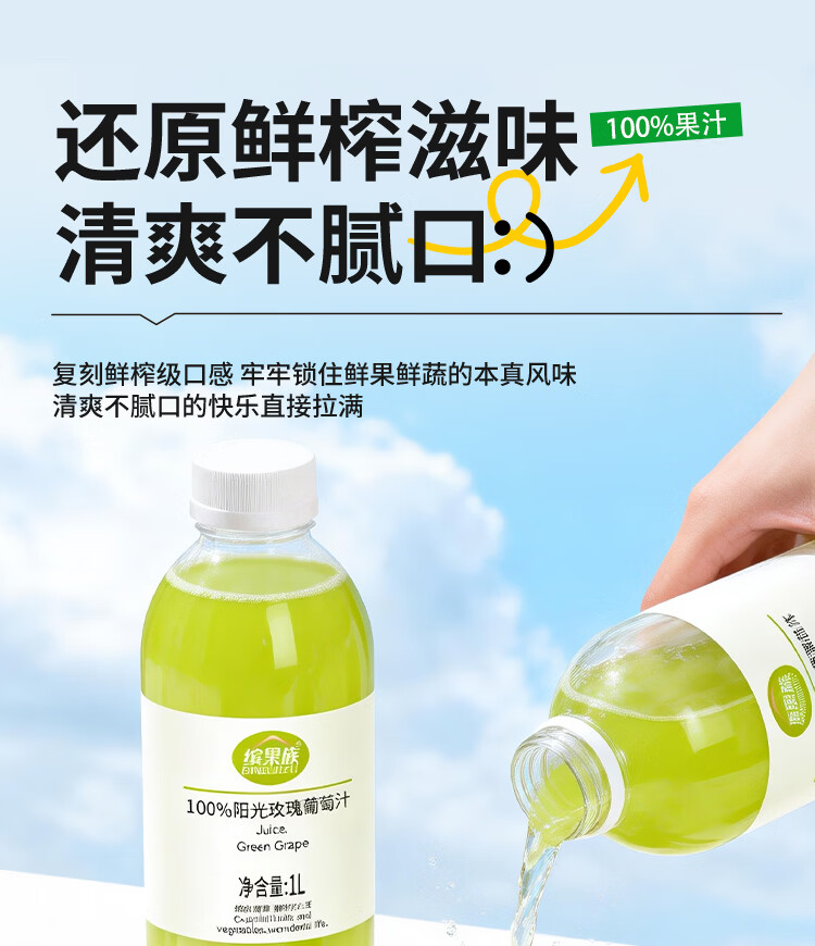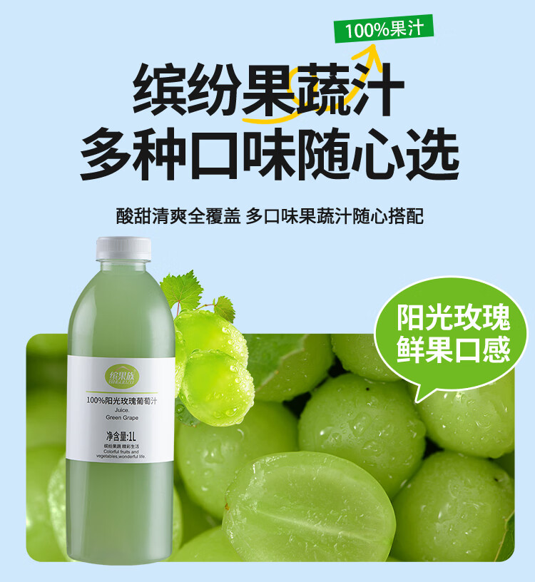 缤果族100%纯果汁饮料阳光玫瑰草莓山楂苹果整箱批发1L大桶分享装 100%阳光玫瑰葡萄汁1L装