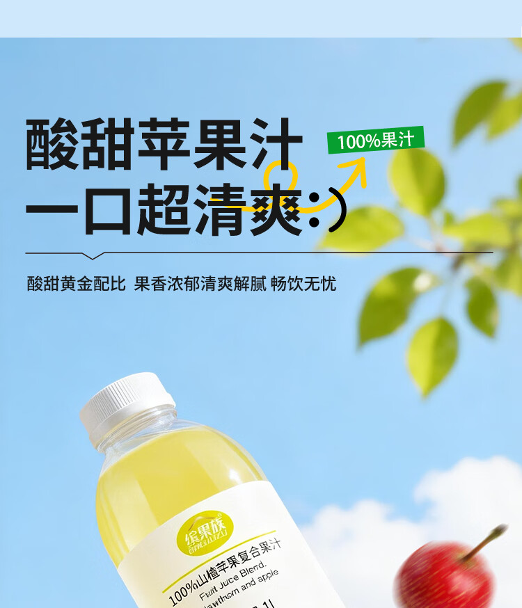 植物主义鸡内金山楂汁210ml*12瓶装100%果汁儿童开胃苹果山楂复合果汁饮料 鸡内金苹果山楂汁12瓶整箱(100%果汁)