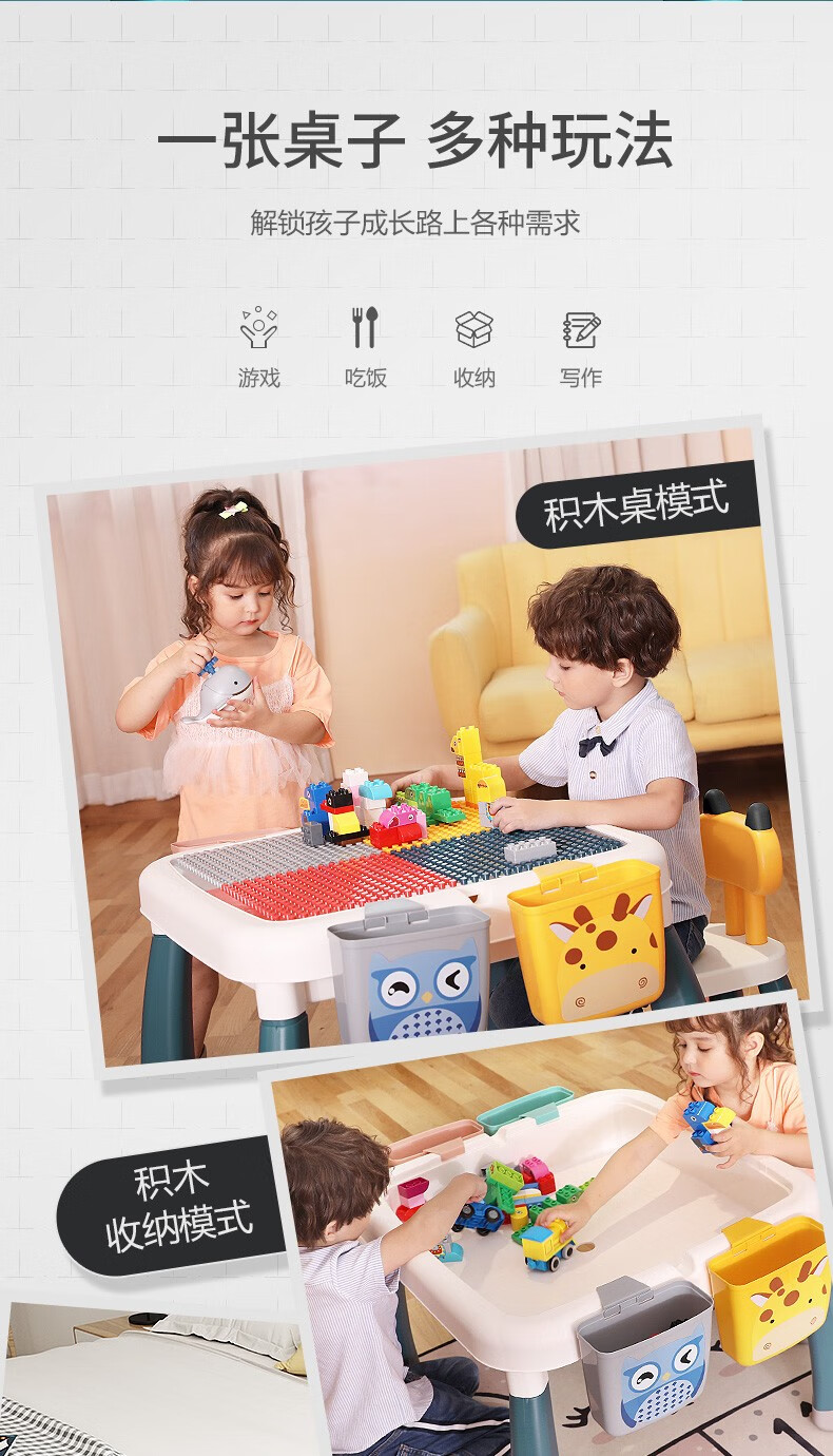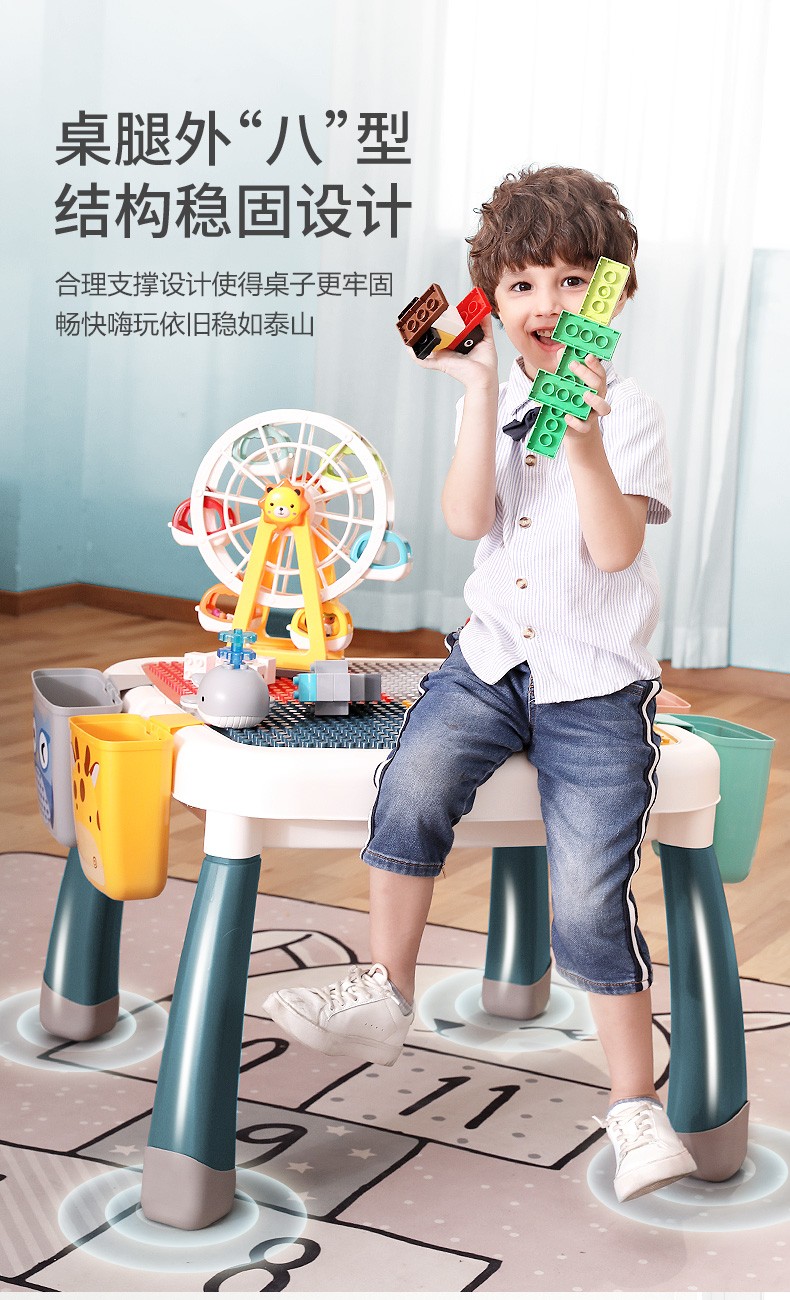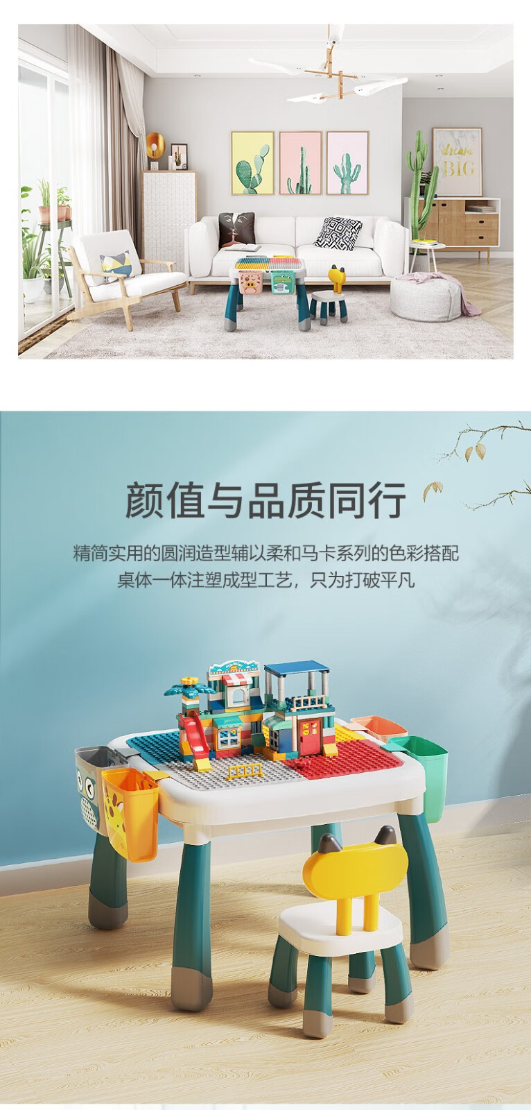 费乐(FEELO)兼容乐高大颗粒拼装儿童玩具生日礼物男女孩积木桌100105百变汽车