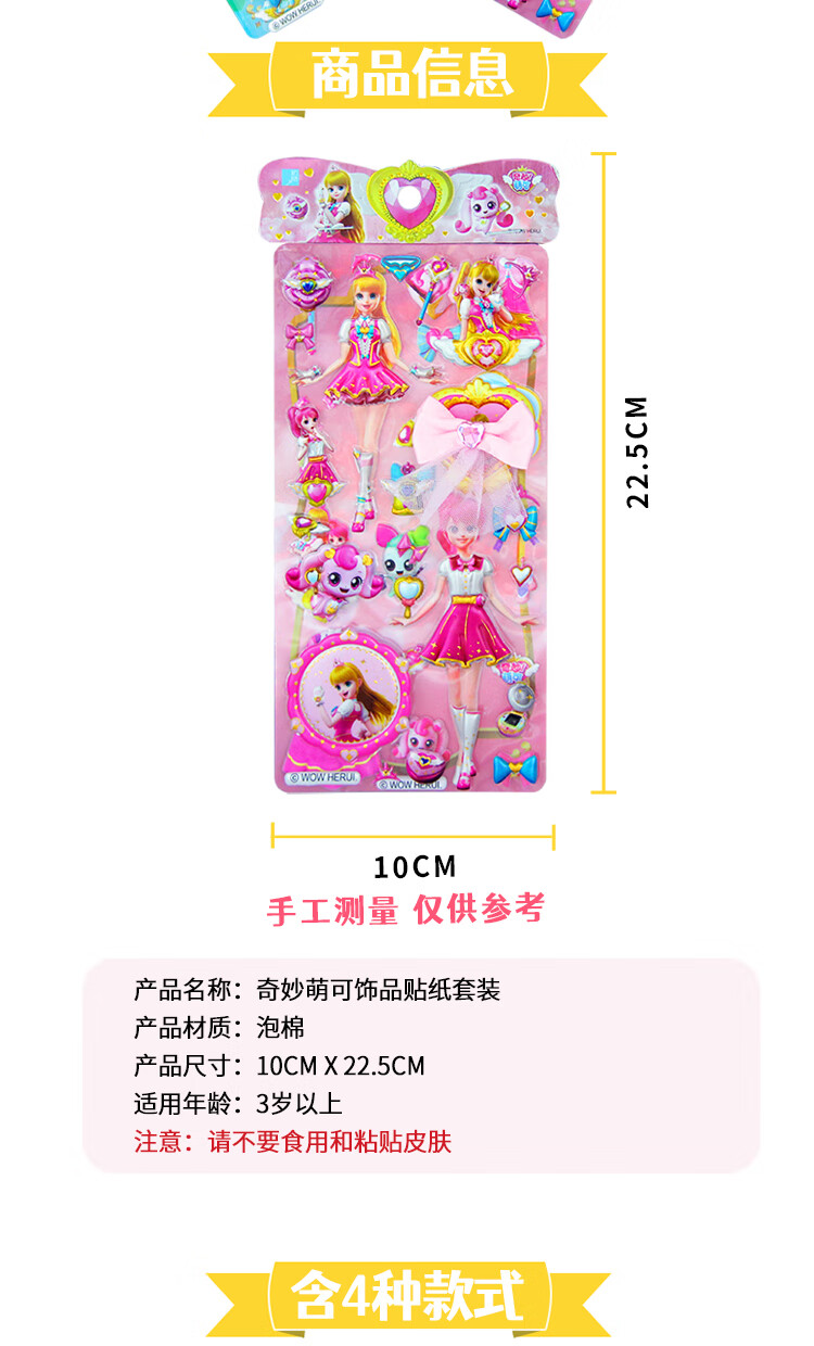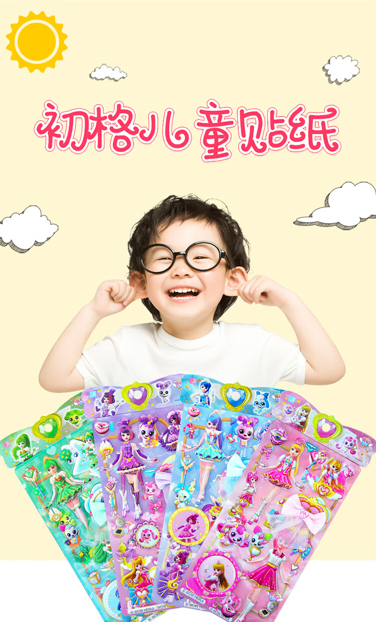 初格贴纸儿童拼豆贴画玩具换装贴纸公主卡通奇妙萌可开学季礼物