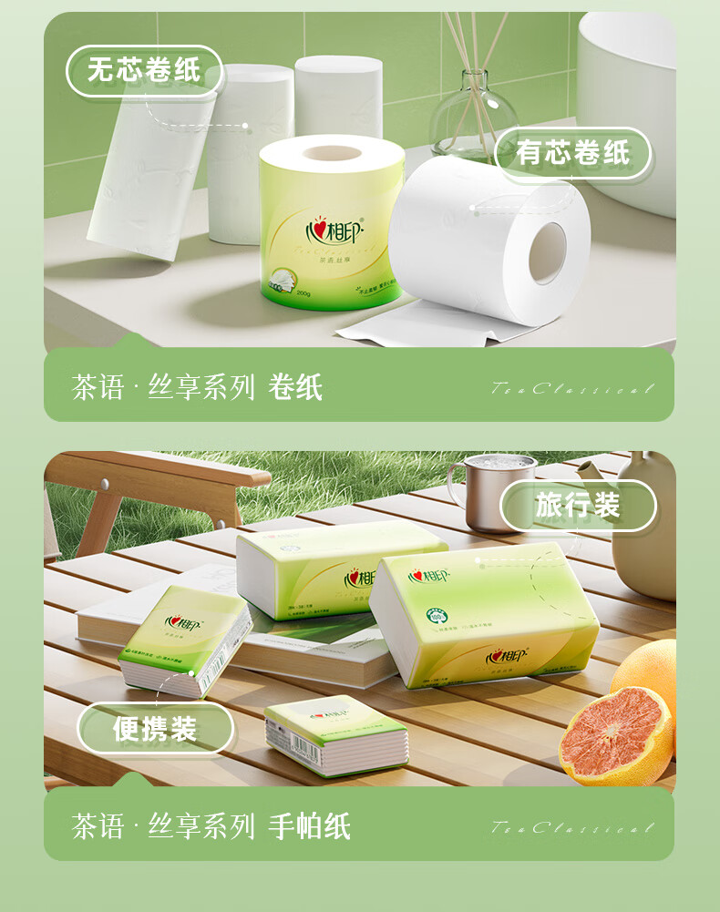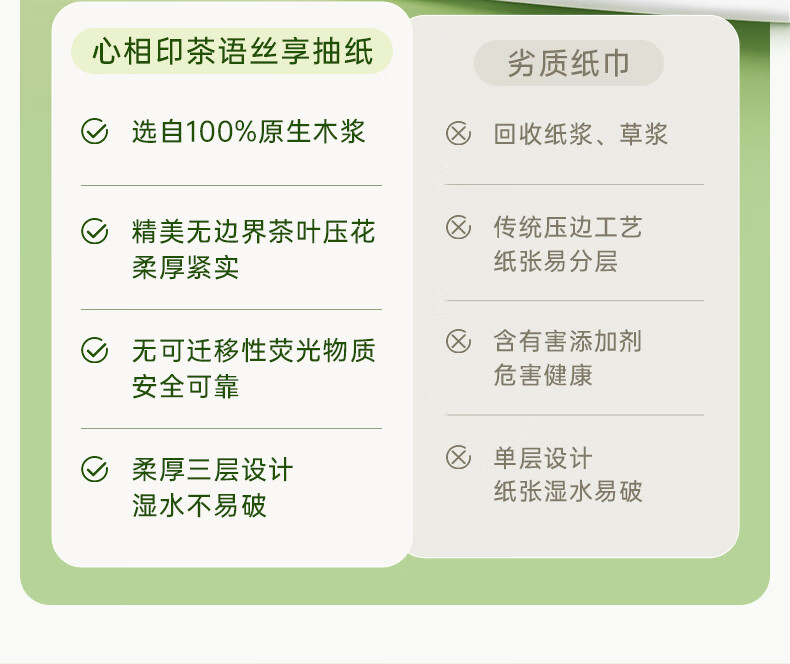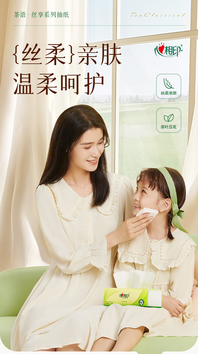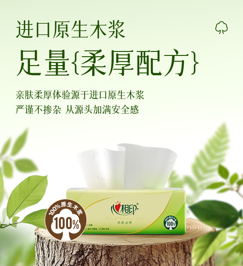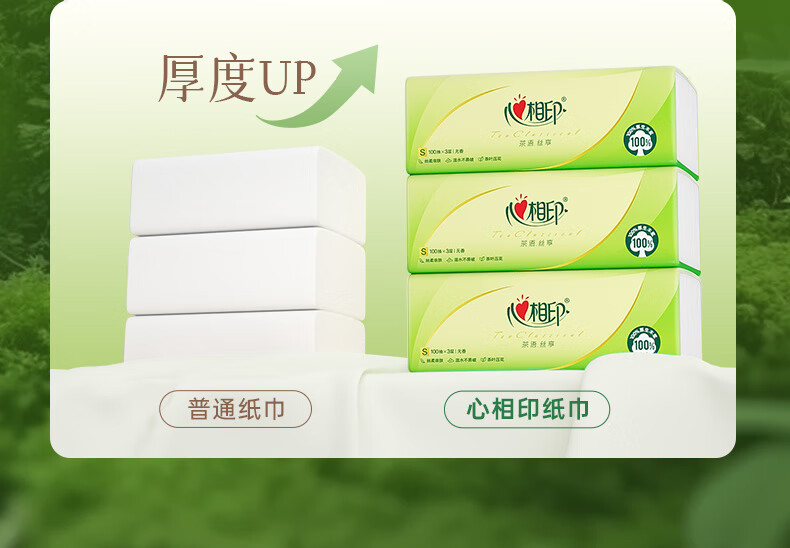 心相印抽纸茶语丝享纸巾家用卫生纸抽心心相印餐巾纸批实惠装 3层 100抽*3包