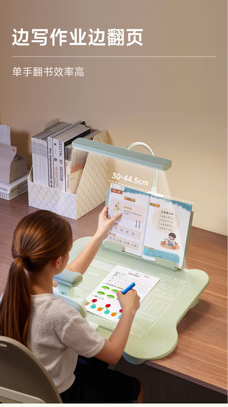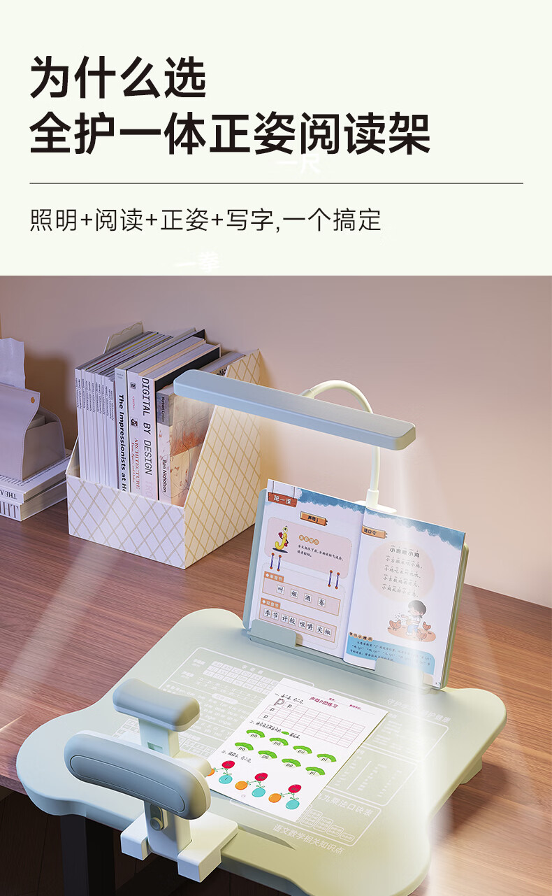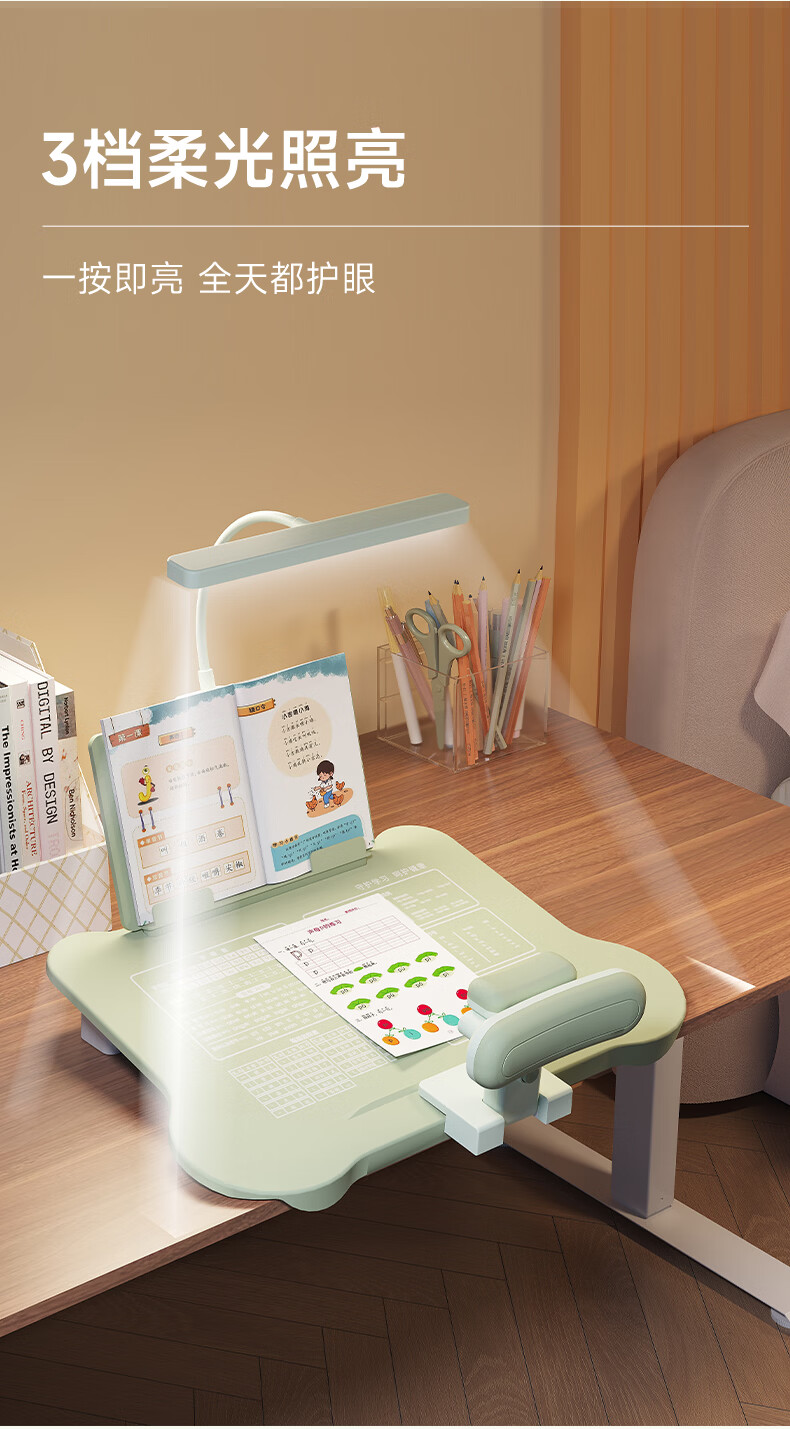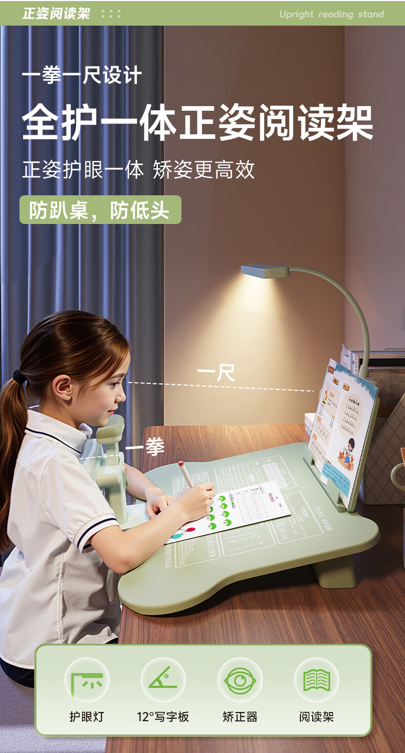 语季儿童坐姿矫正器小学生桌面款幼儿园写字姿势纠正器写作业学习桌低头驼背神器初中生三维一体书写桌 【蓝色/升级可托下巴】黄金十二度+阅读架+充电台灯