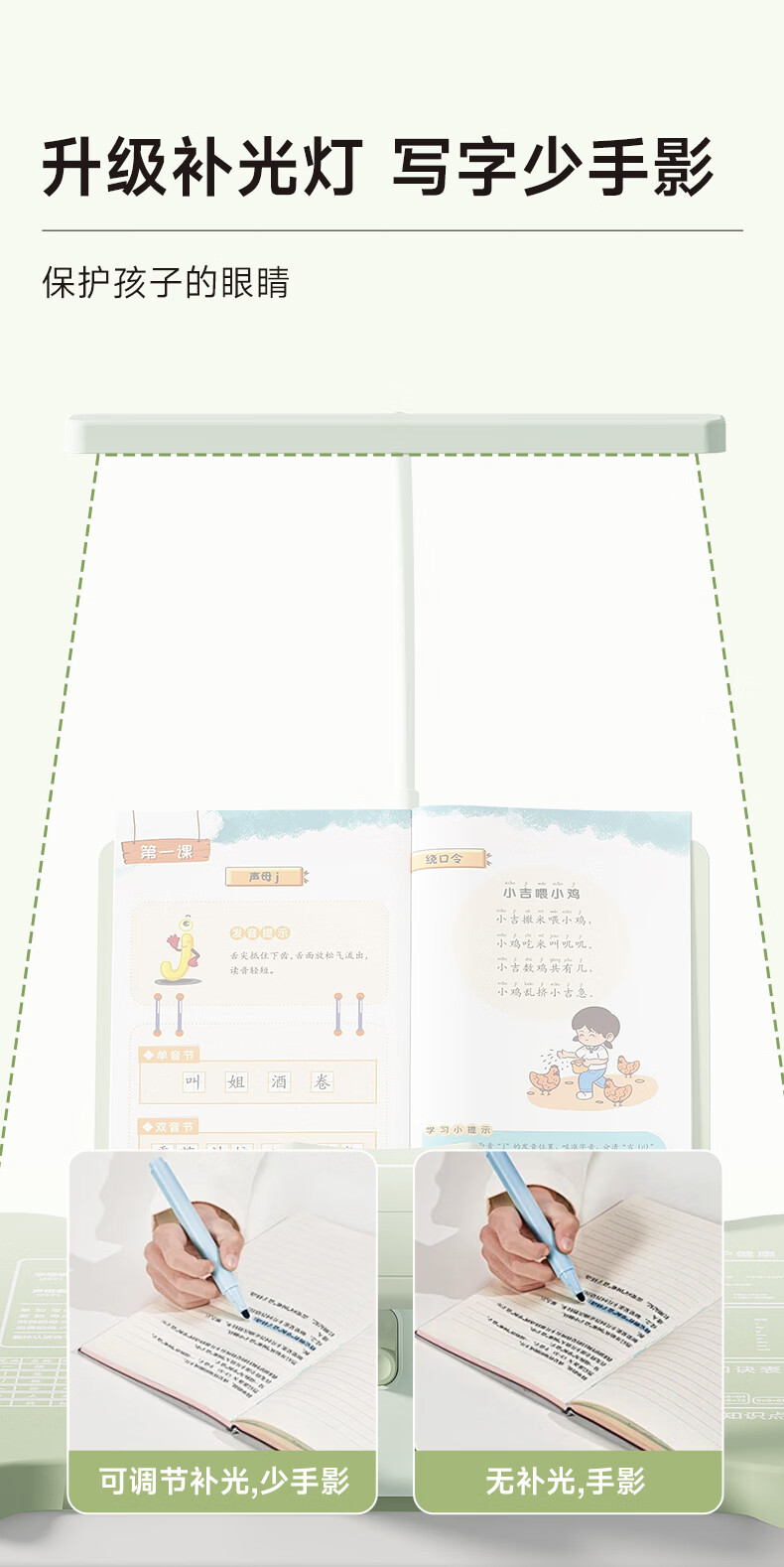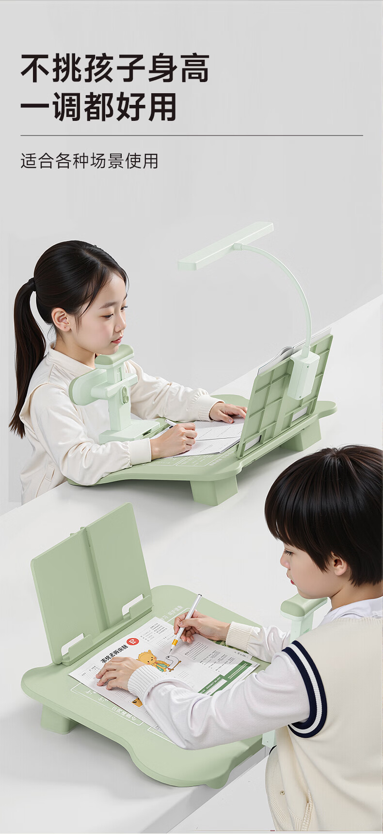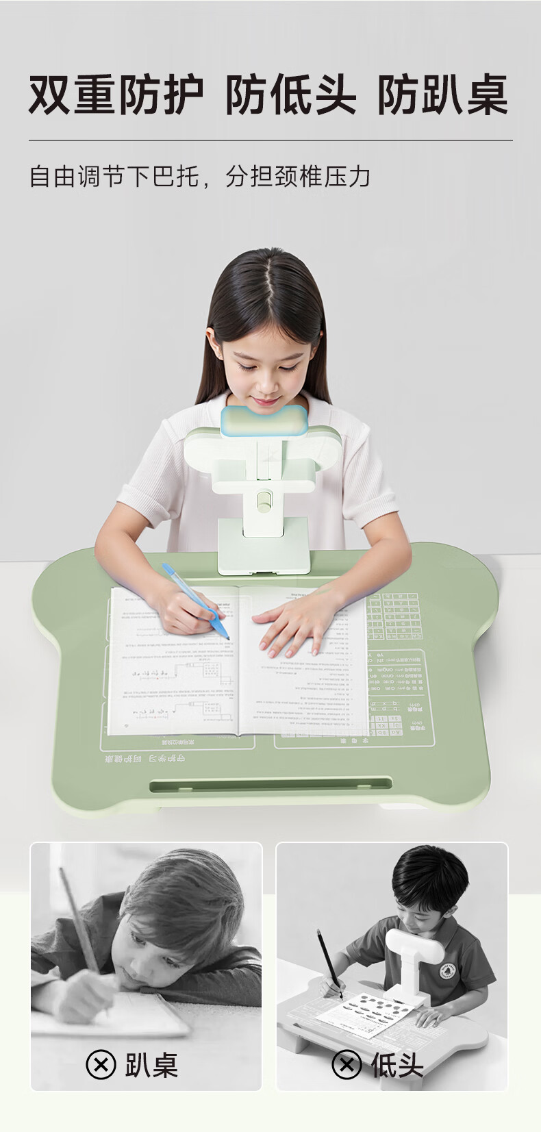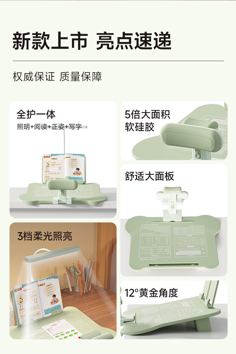 语季儿童坐姿矫正器小学生桌面款幼儿园写字姿势纠正器写作业学习桌低头驼背神器初中生三维一体书写桌 【蓝色/升级可托下巴】黄金十二度+阅读架+充电台灯