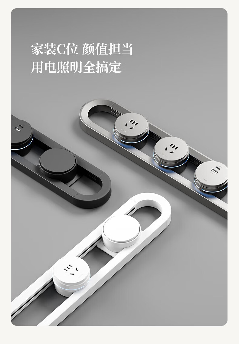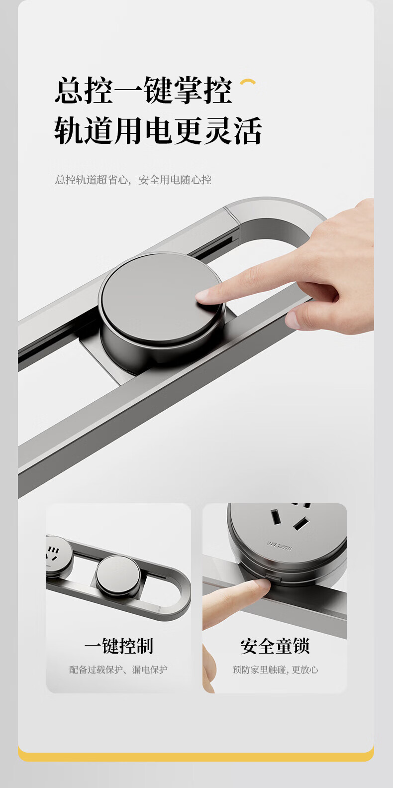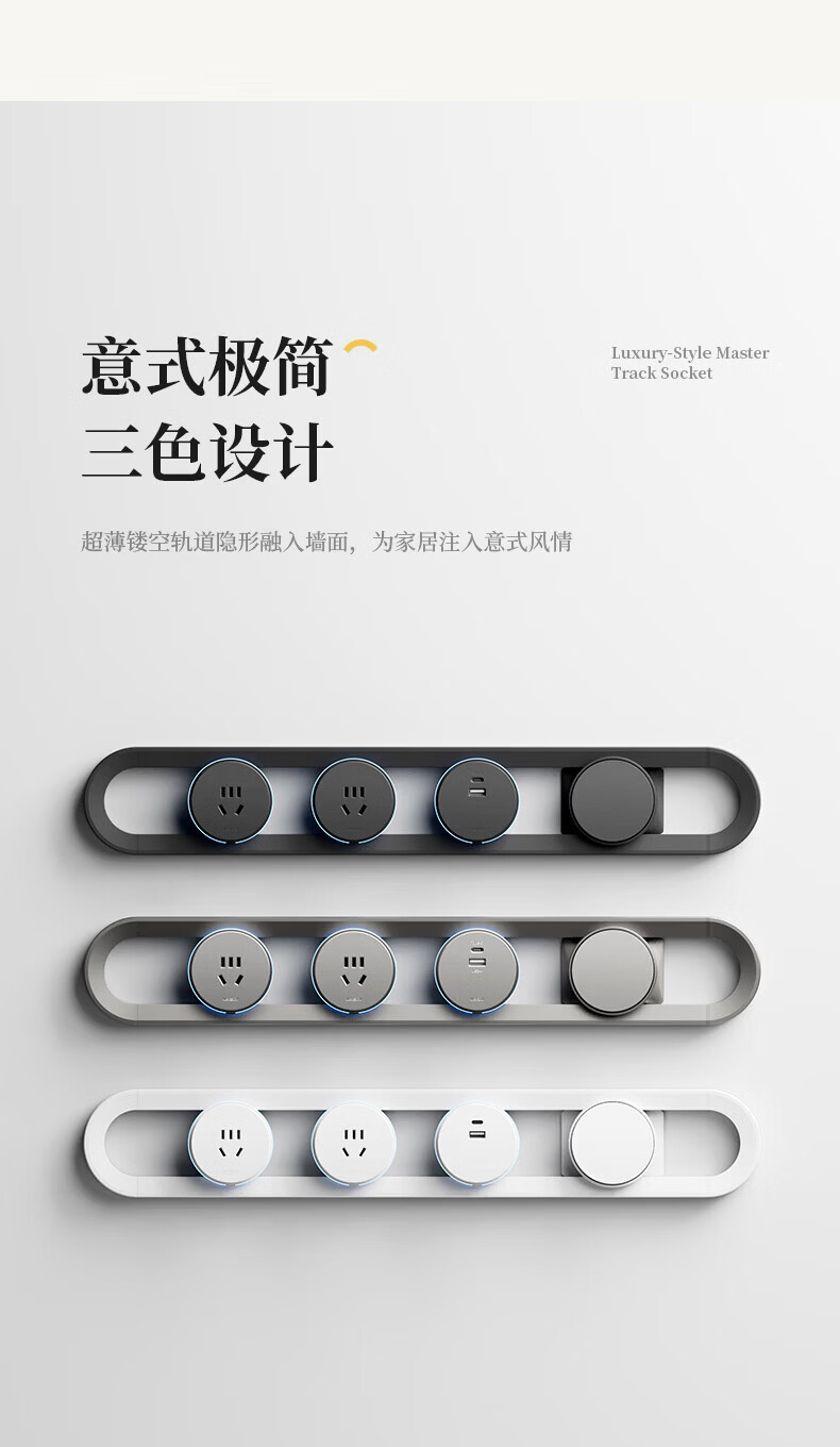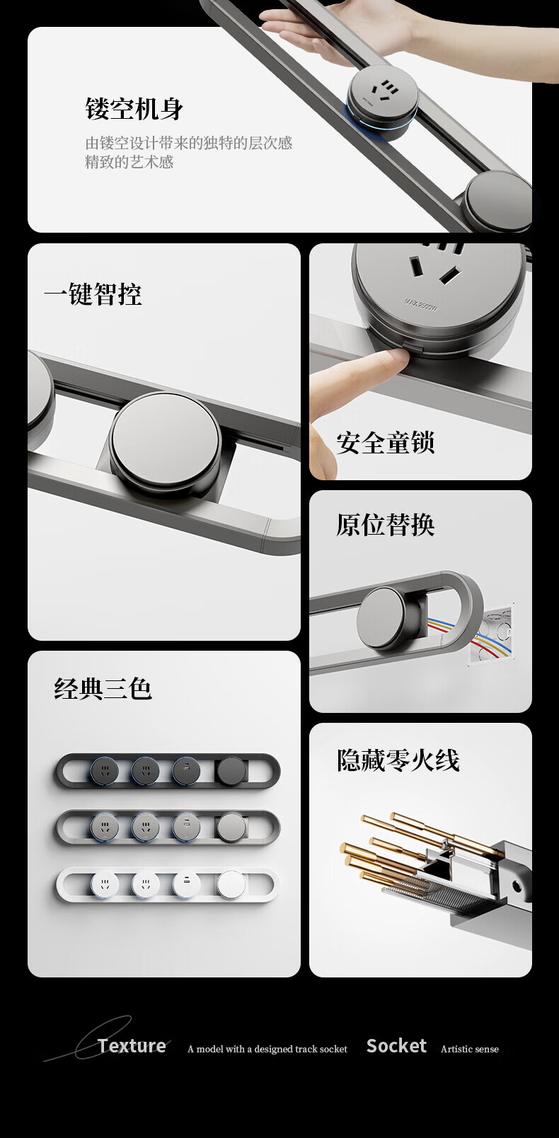 国际电工镂空带开关明装轨道插座可移动电力导轨厨房餐边柜带过载保护排插 黑色【50厘米镂空轨道+3个五孔】一键断电