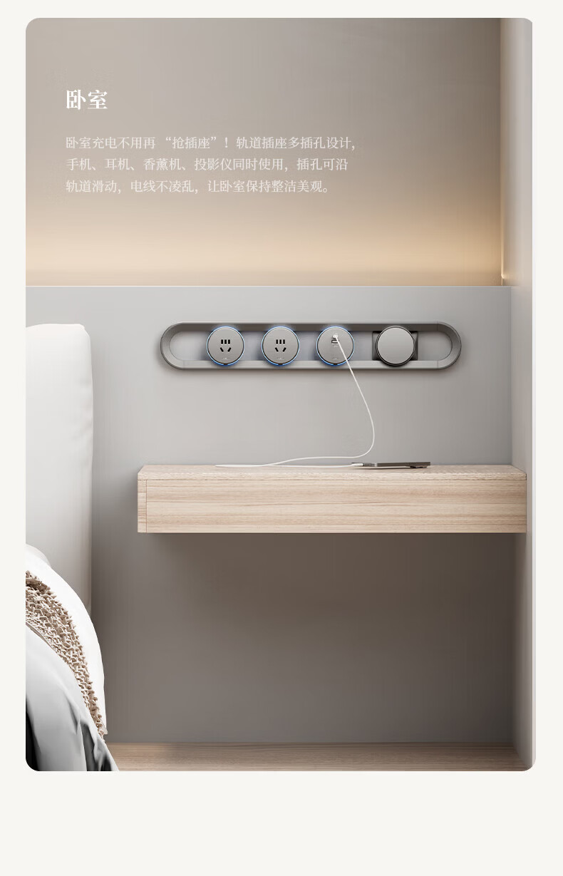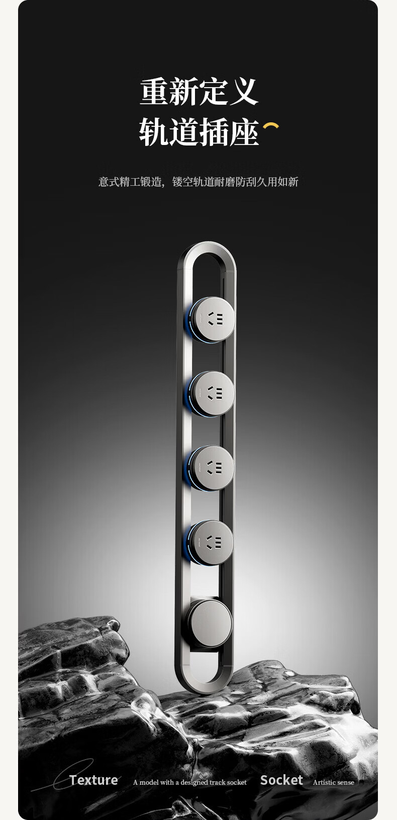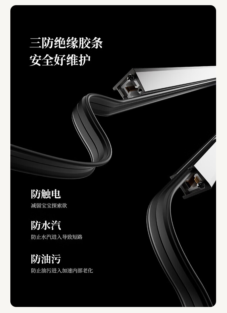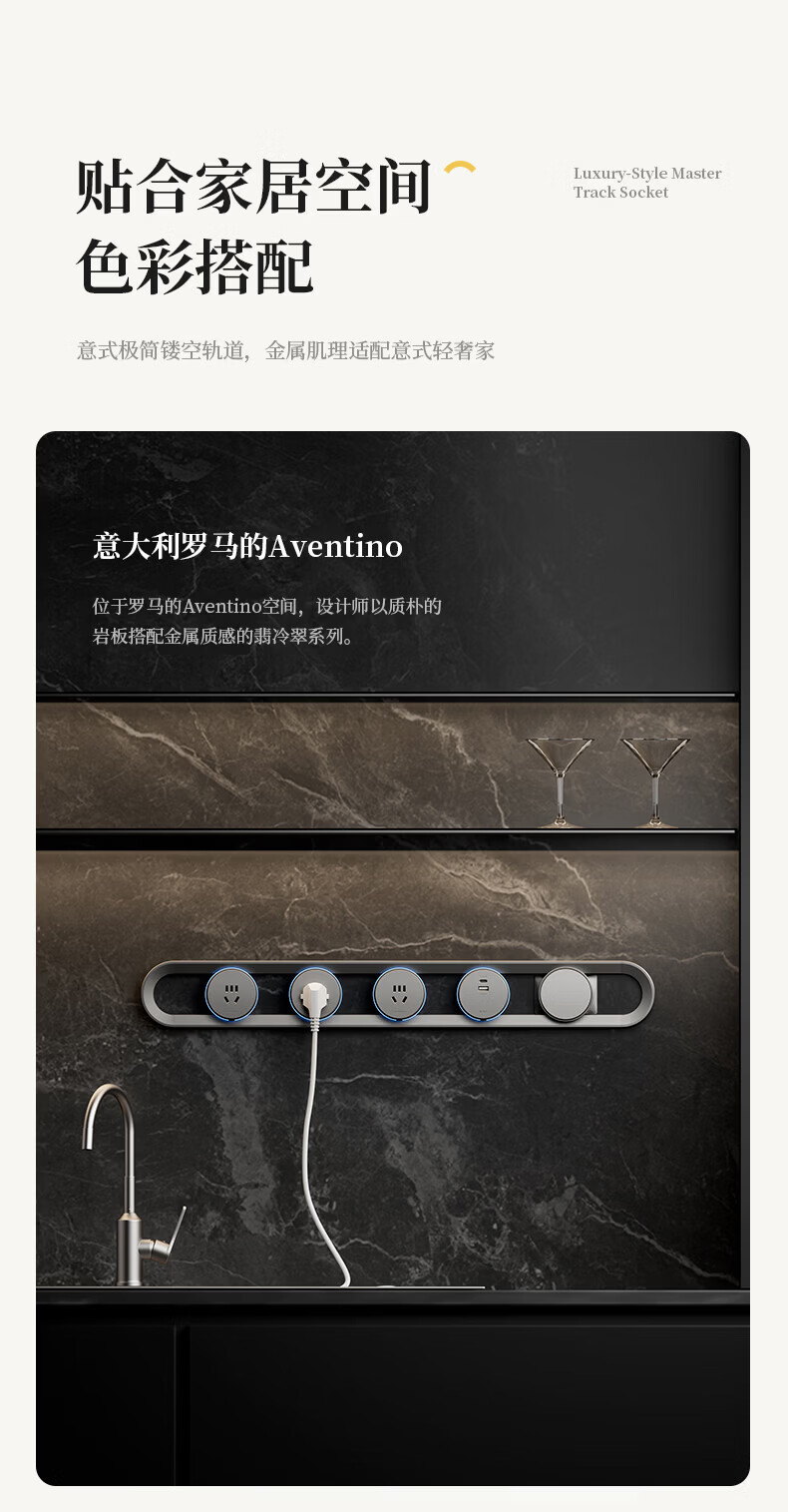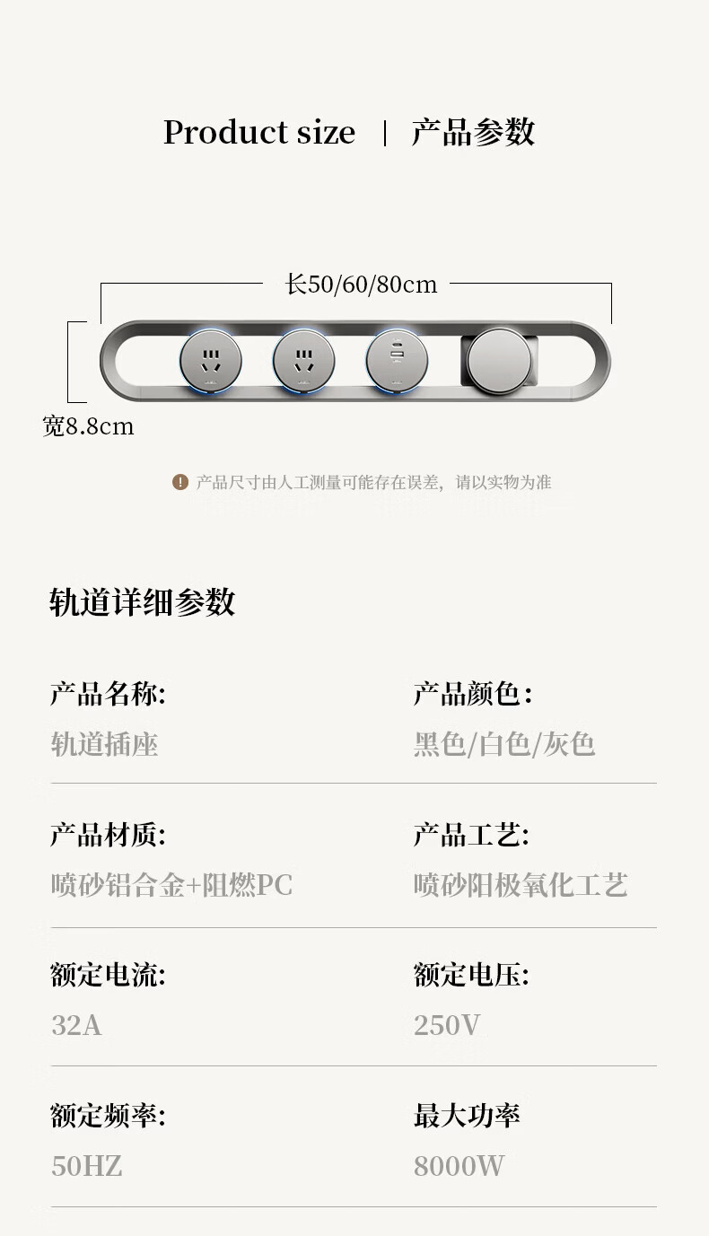国际电工镂空带开关明装轨道插座可移动电力导轨厨房餐边柜带过载保护排插 黑色【50厘米镂空轨道+3个五孔】一键断电
