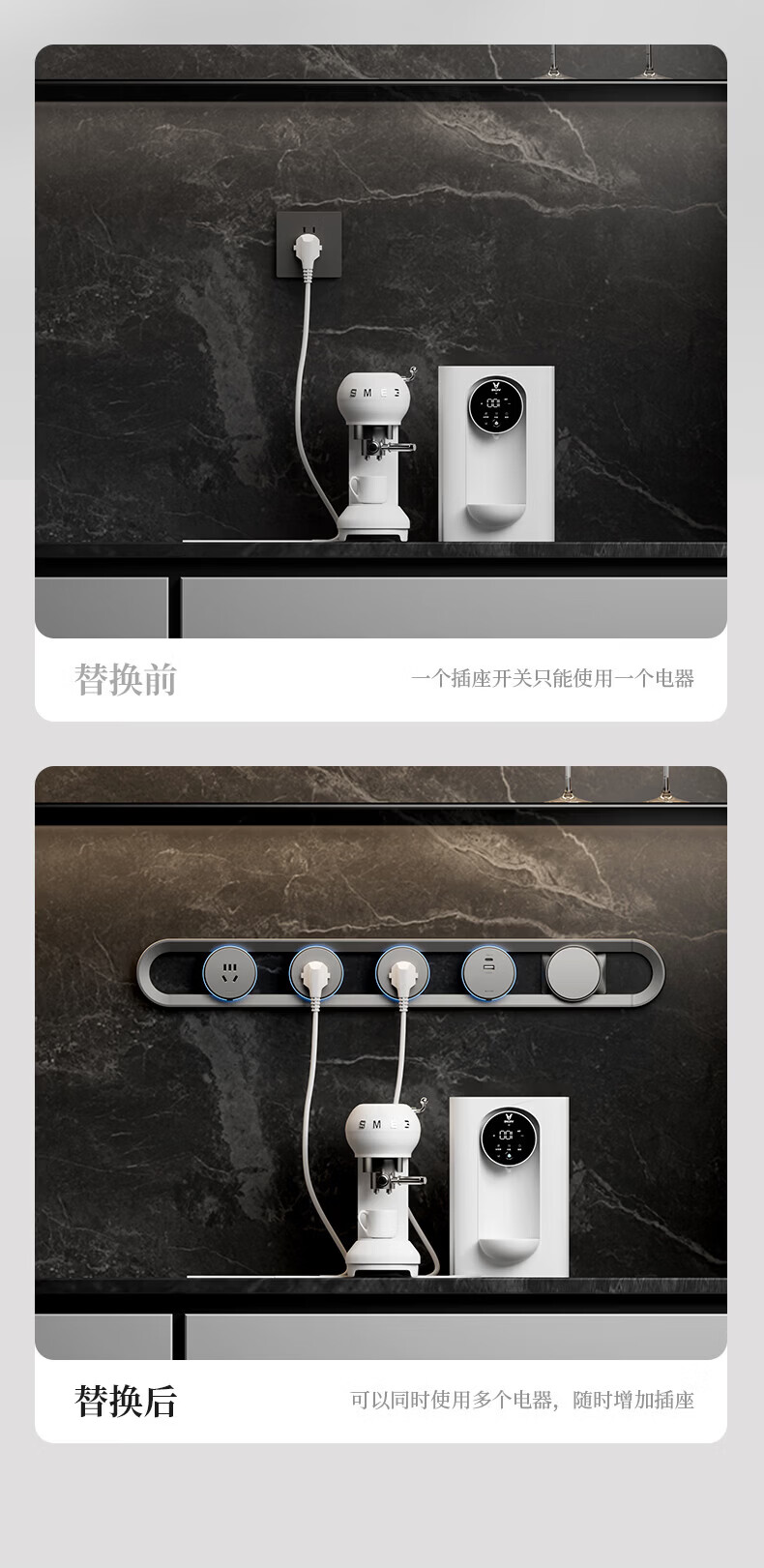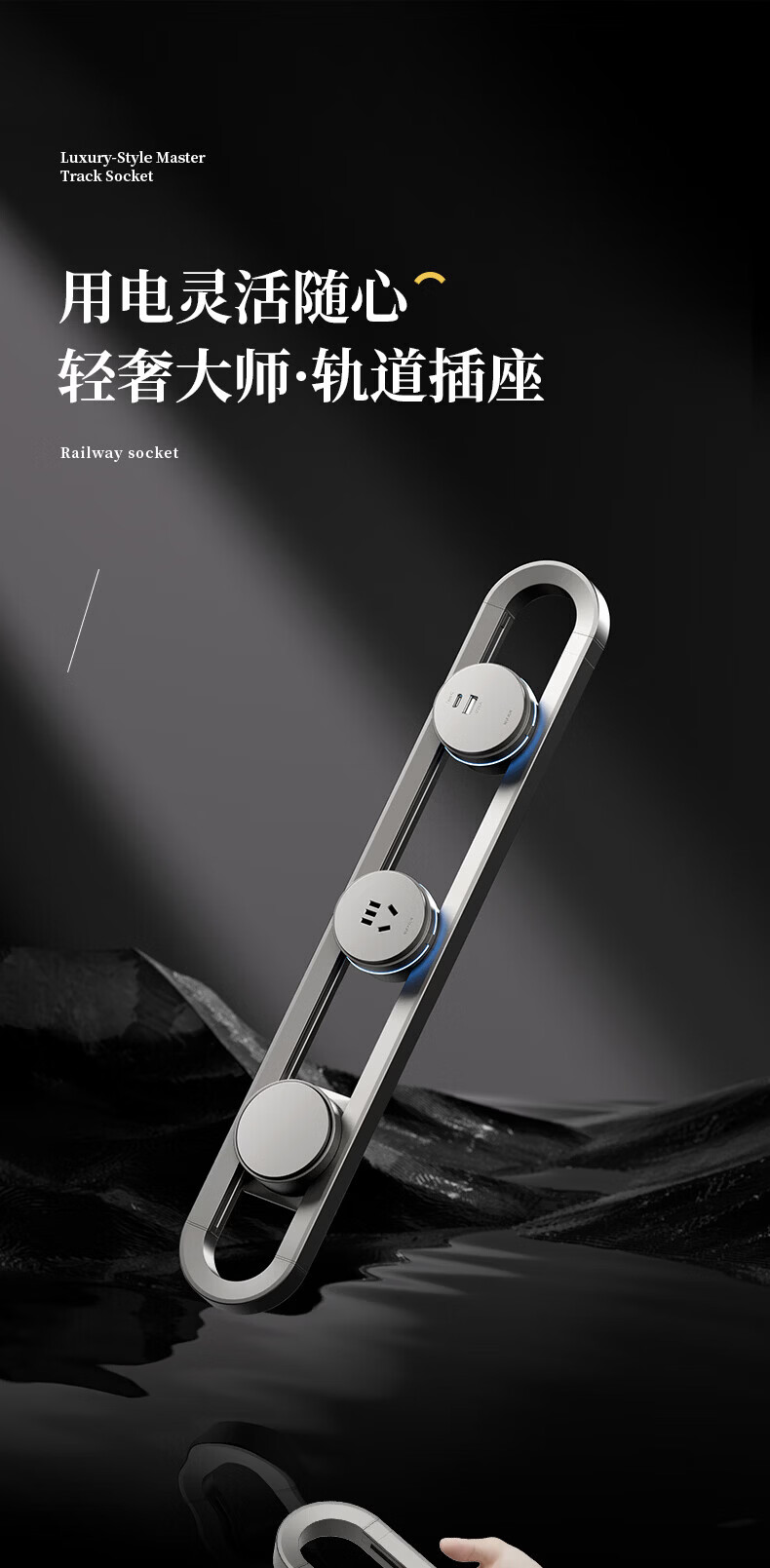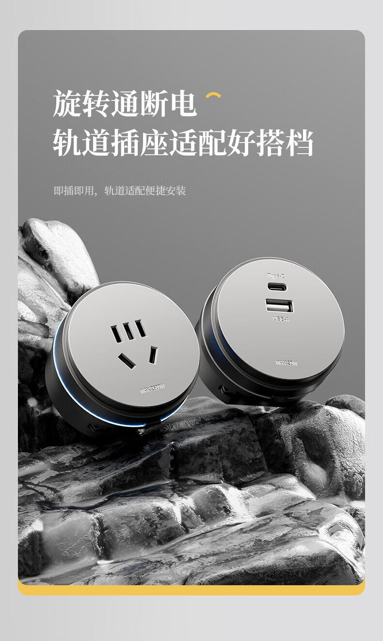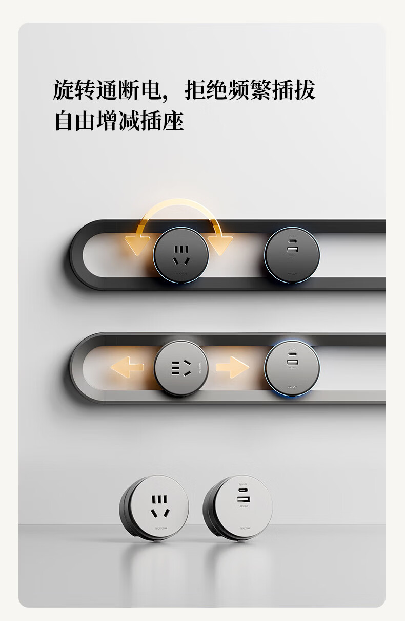 国际电工镂空带开关明装轨道插座可移动电力导轨厨房餐边柜带过载保护排插 黑色【50厘米镂空轨道+3个五孔】一键断电