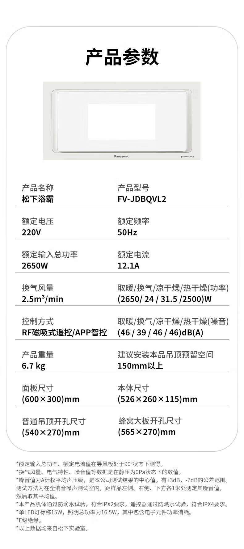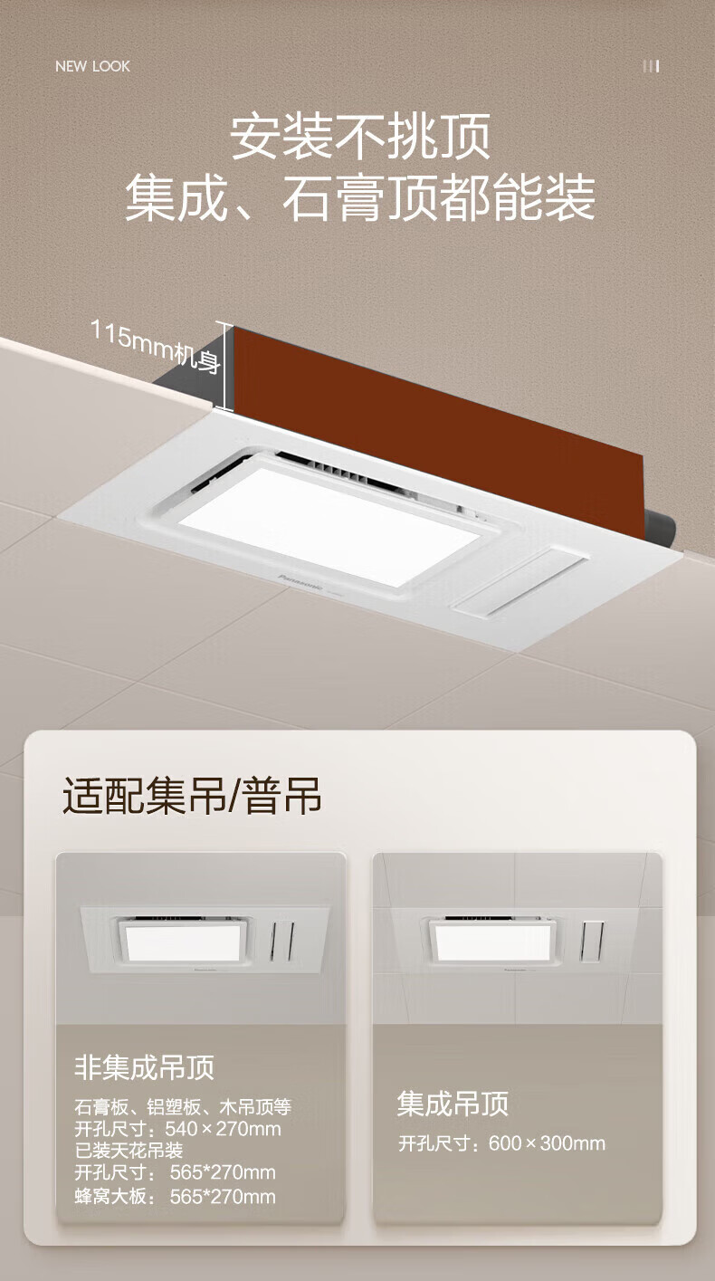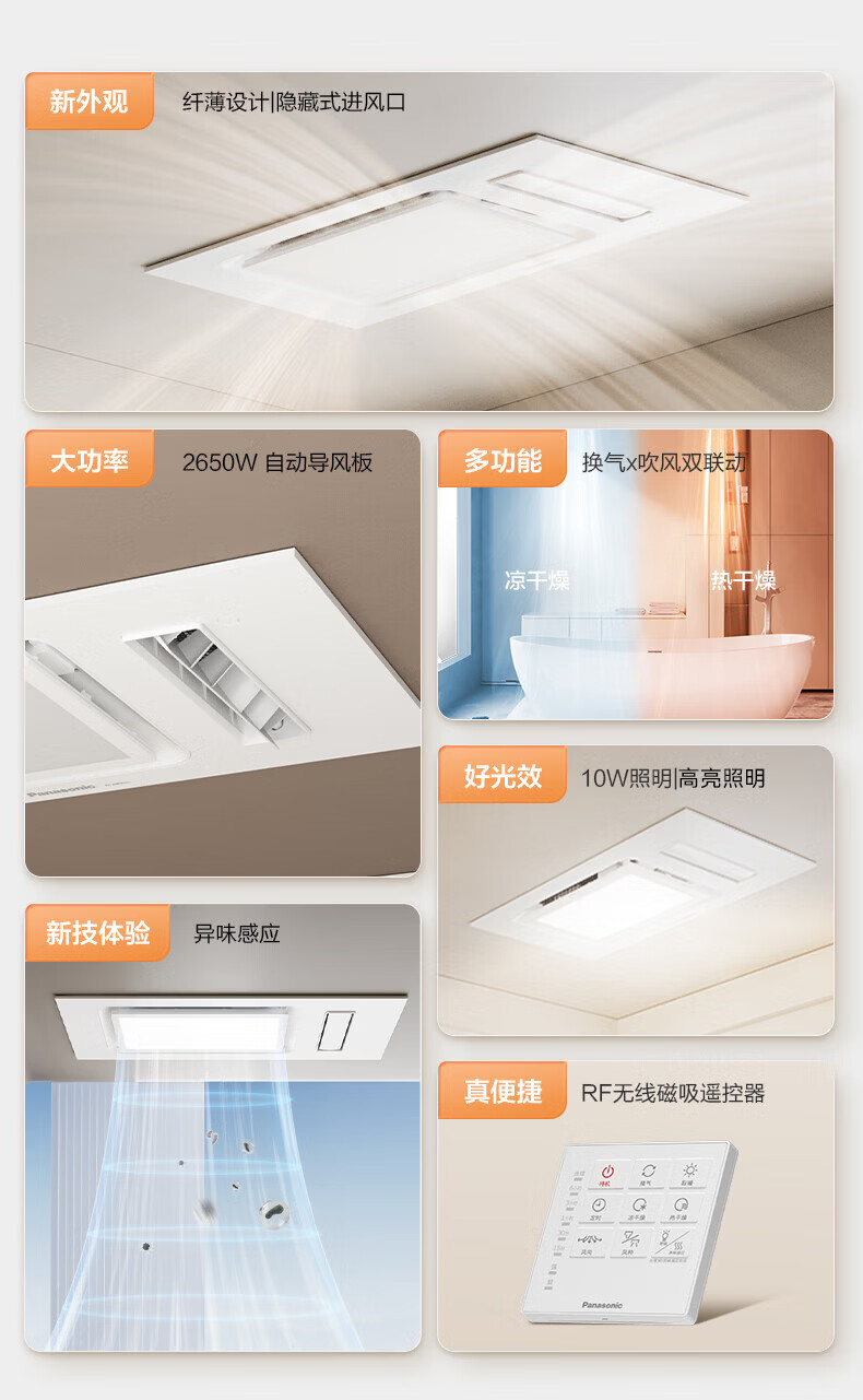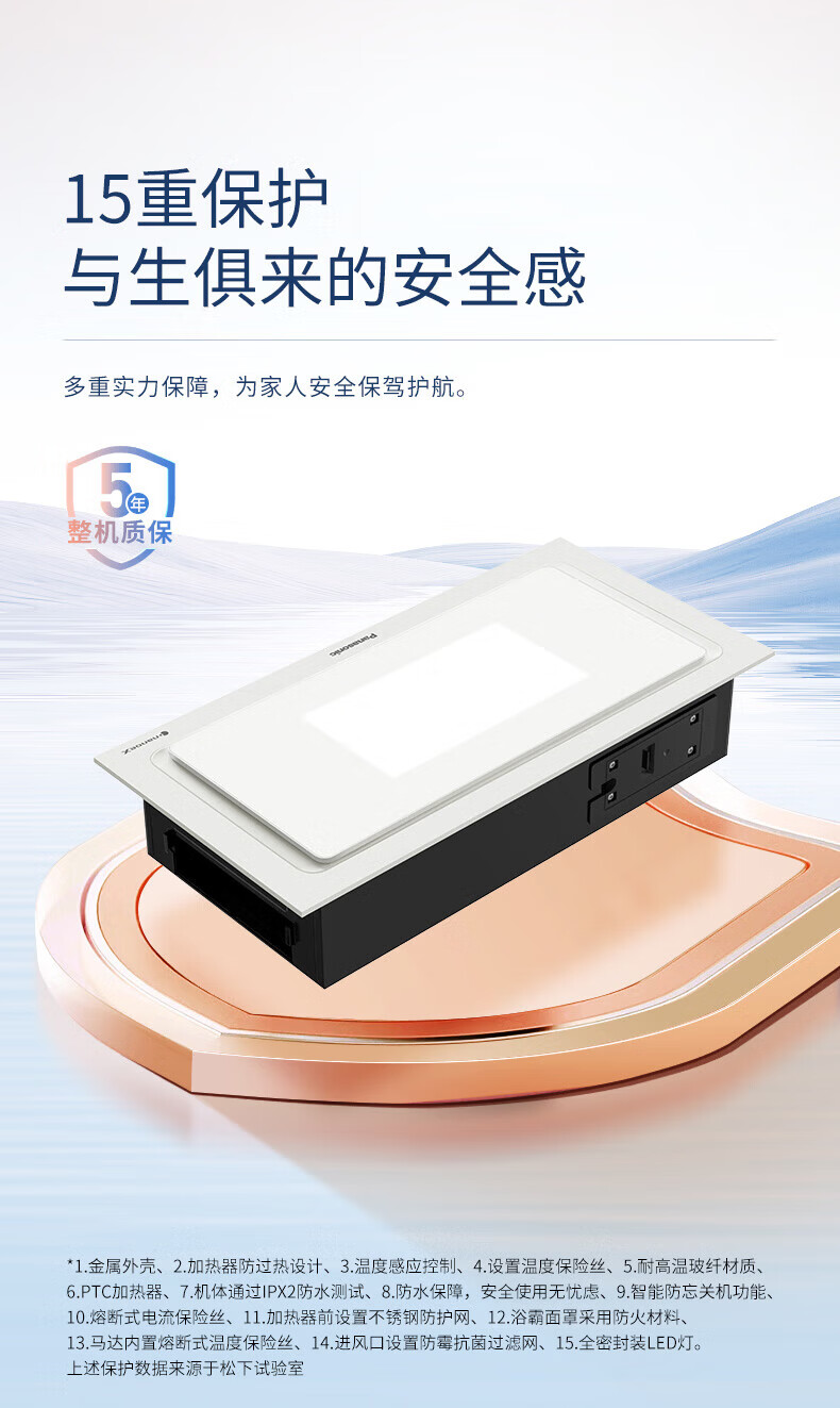 松下(Panasonic)暖风浴霸灯集成吊顶暖风机照明排气扇一体浴室卫生间风暖机 丨异味感应丨JDBQVU1