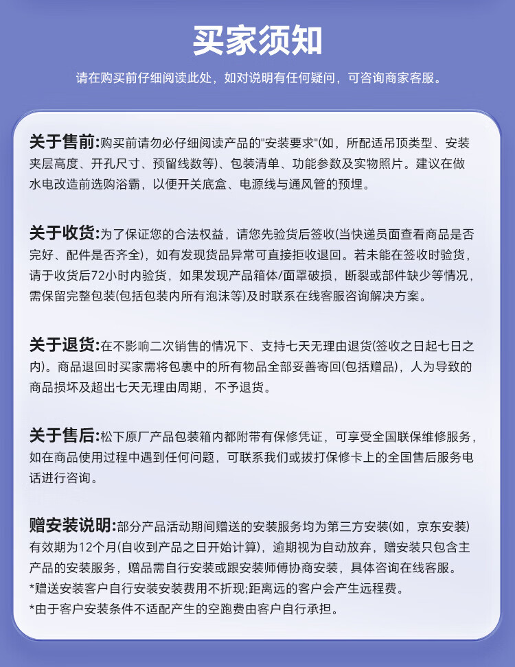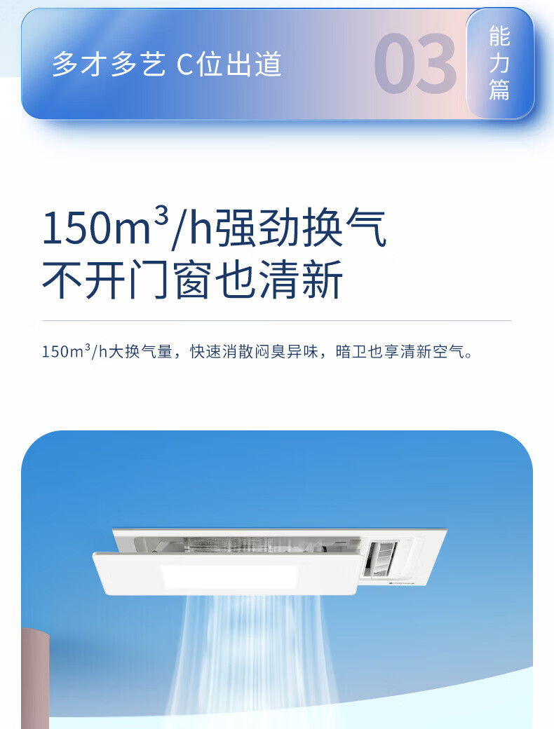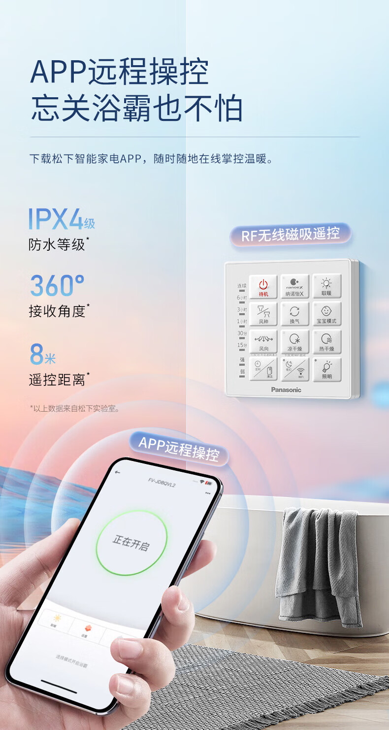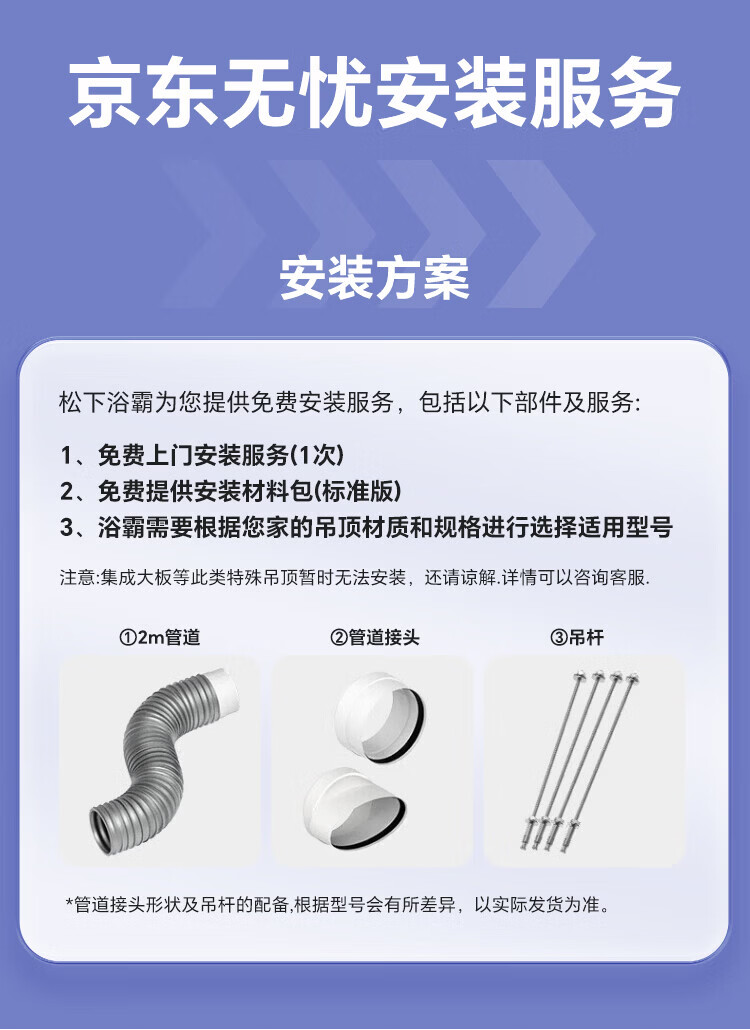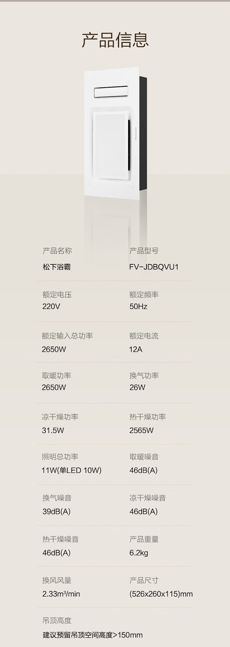 松下(Panasonic)暖风浴霸灯集成吊顶暖风机照明排气扇一体浴室卫生间风暖机 丨异味感应丨JDBQVU1