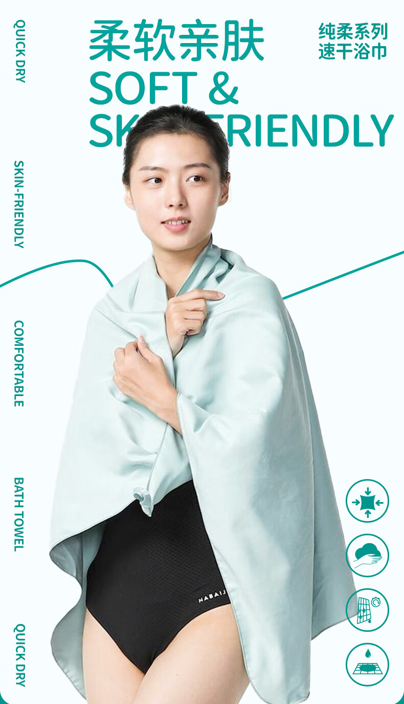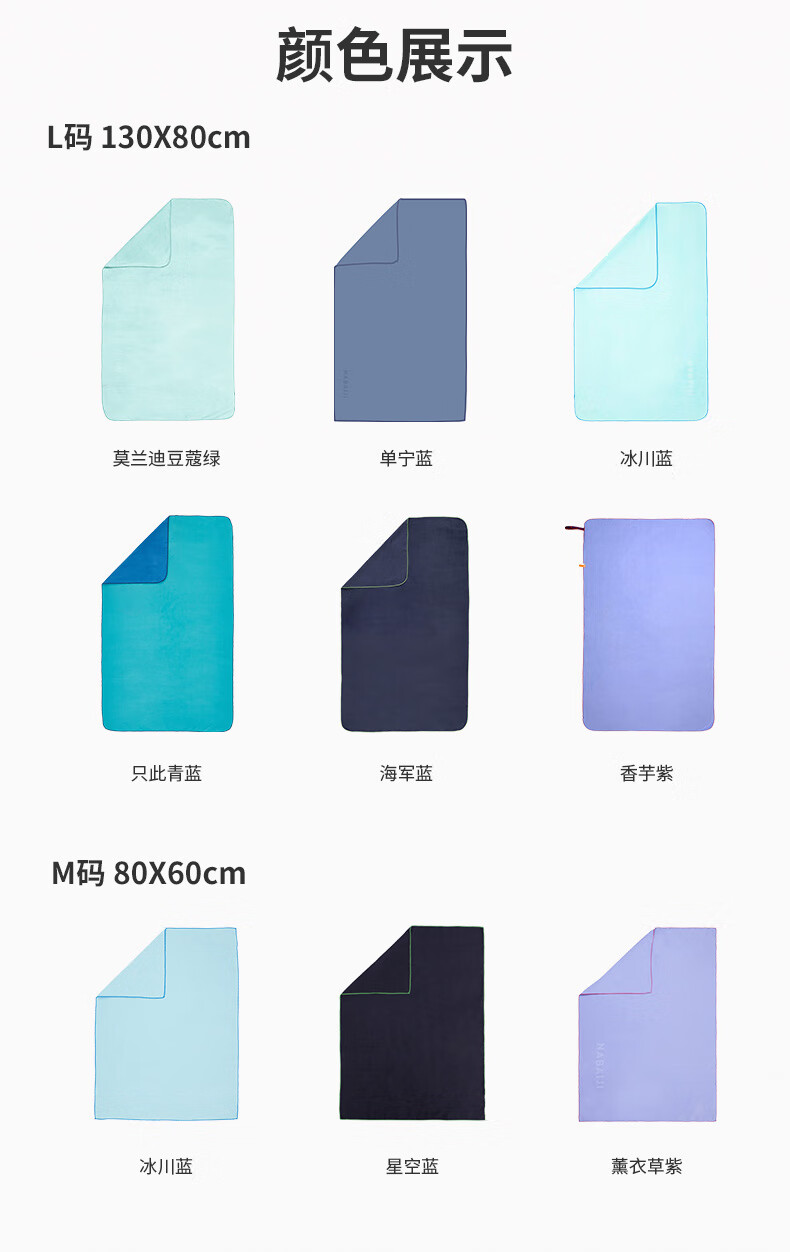 迪卡侬速干浴巾游泳运动毛巾吸汗便携保暖温泉大毛巾L码2711281