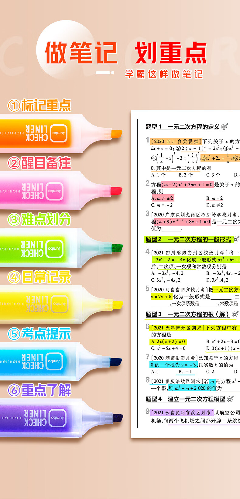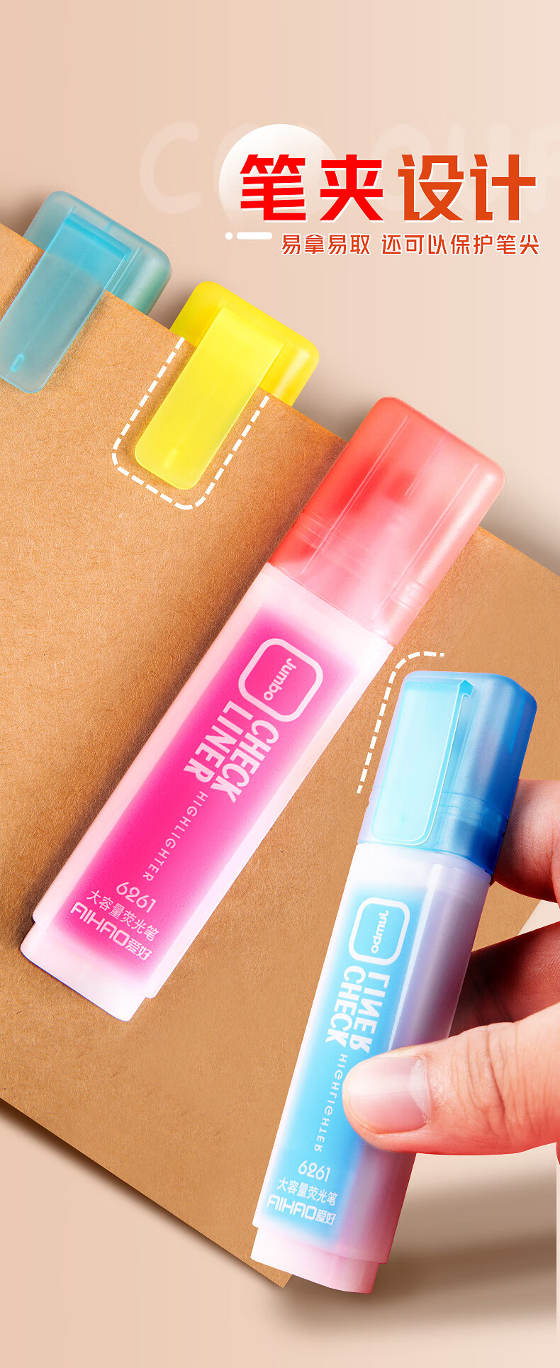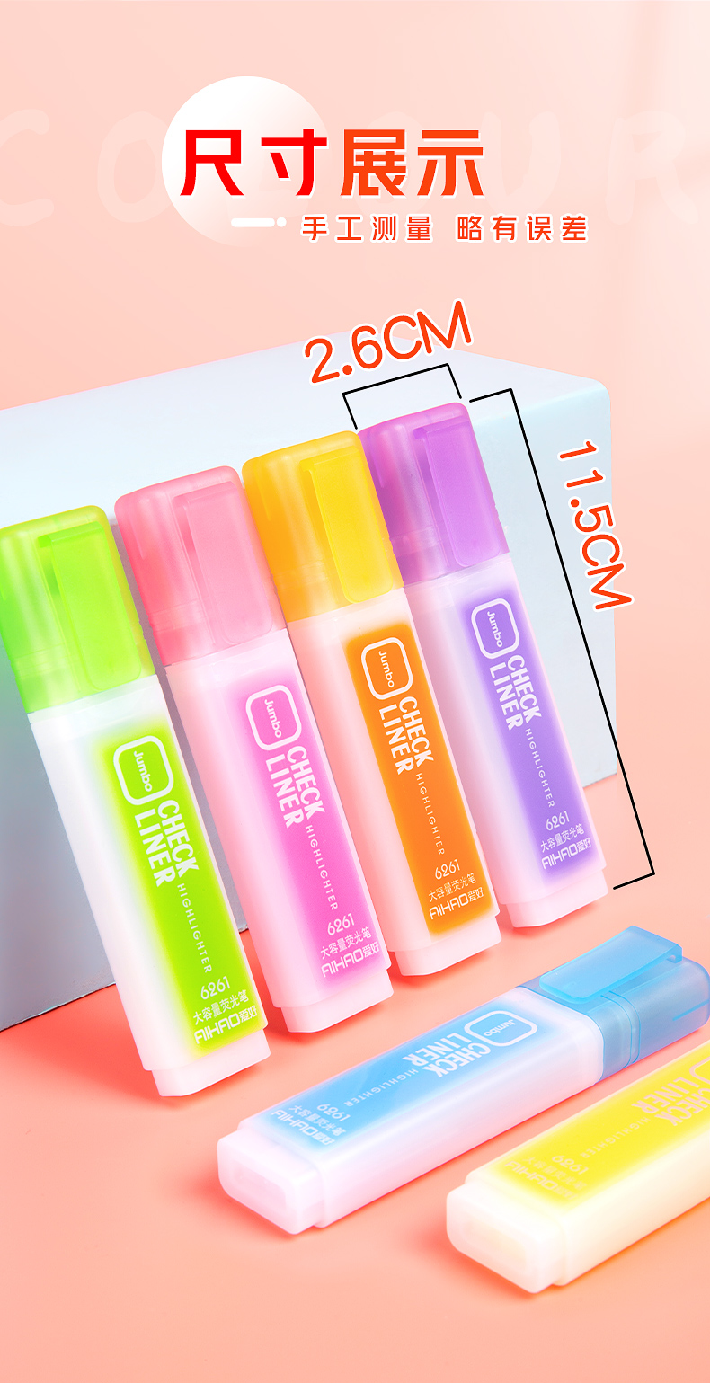 爱好(AIHAO)【热门商品】荧光笔大容量彩色标记笔ins风高颜值划重点笔多色手账记号笔6色 6261