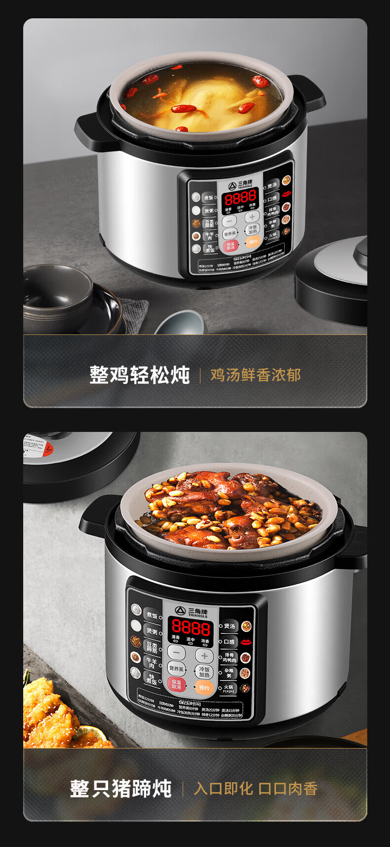 三角牌(Triangle)电压力锅家用2.5-6L智能多功能饭锅24H预约上盖可拆卸煮饭煲汤炖肉高压电饭锅 推荐1-3人【陶瓷釉胆】 2.5L