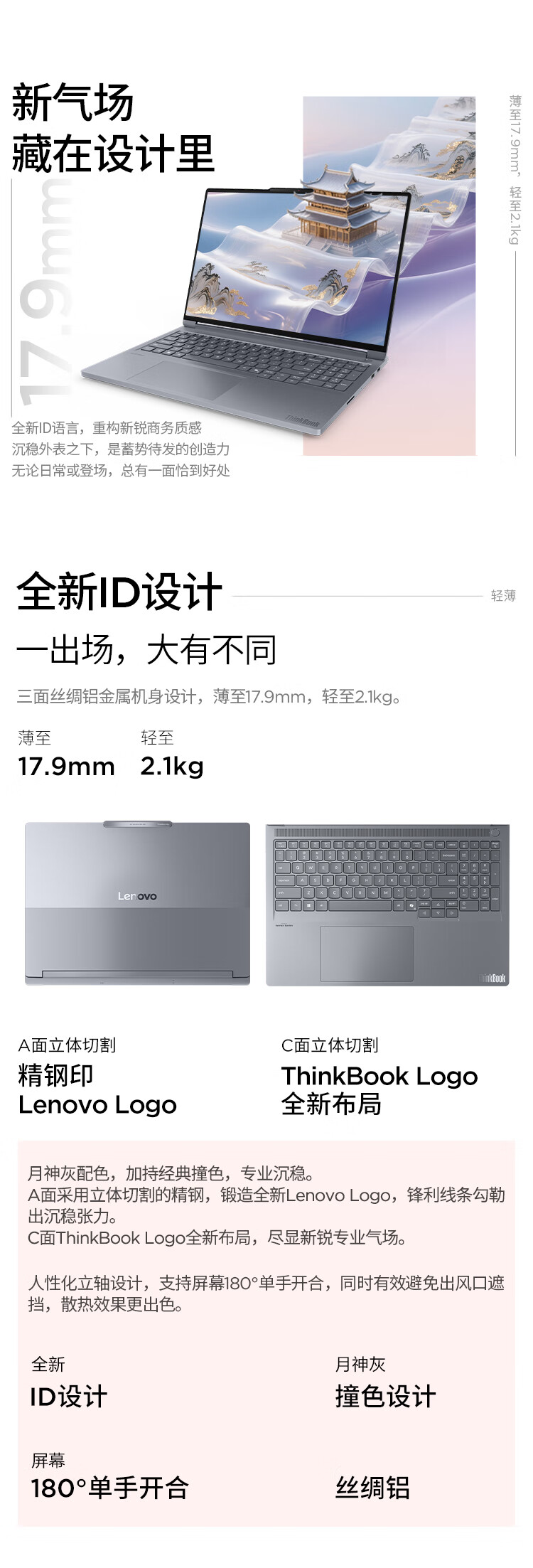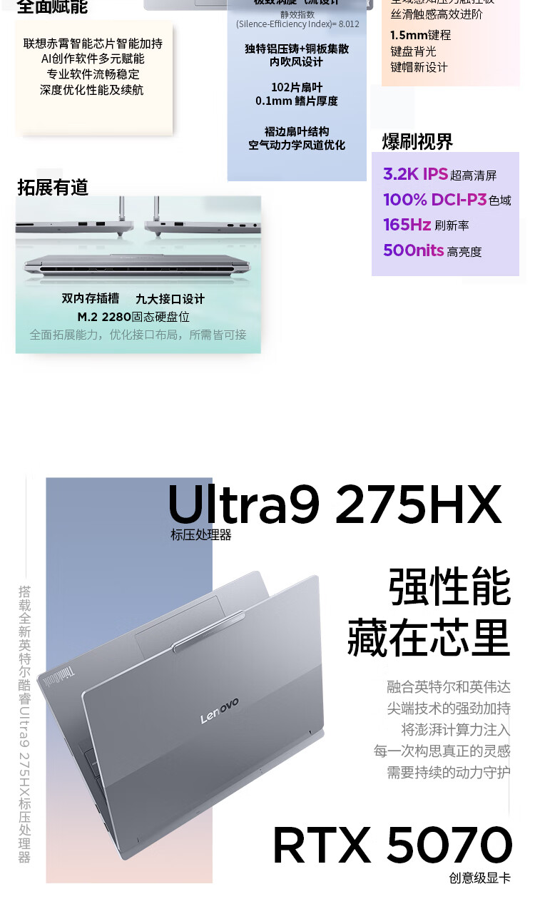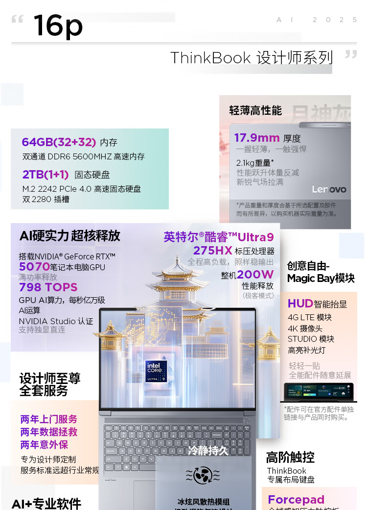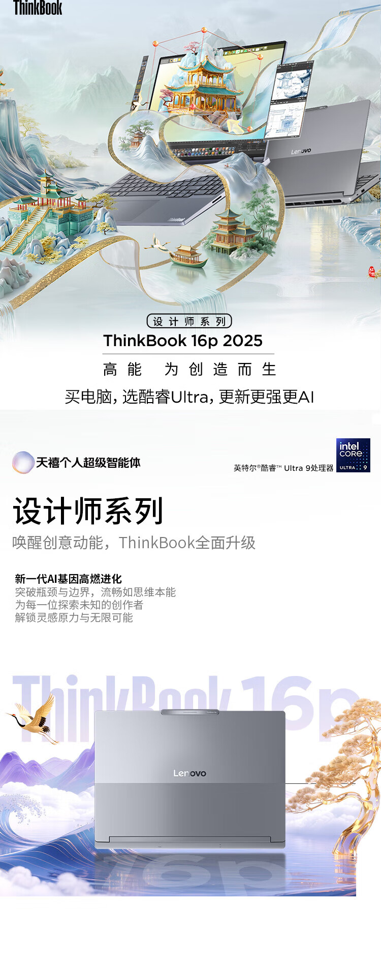 ThinkPad联想设计师系列ThinkBook16p AI游戏笔记本电脑酷睿Ultra9-275HX RTX5070 3.2K 165Hz 64G 2T国补
