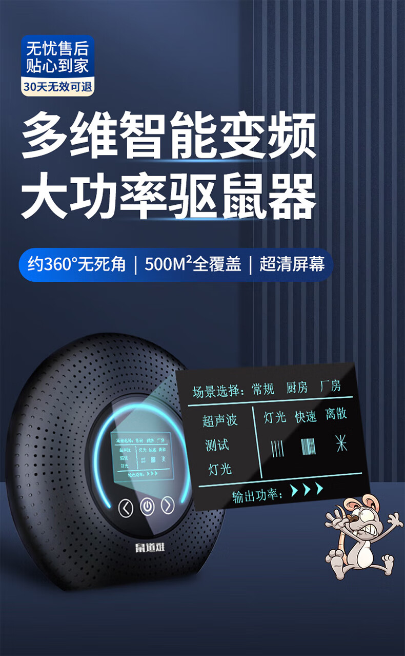 鼠道难超声波驱鼠器500㎡一窝锅端灭驱鼠商用家用强力老鼠克星驱鼠神器