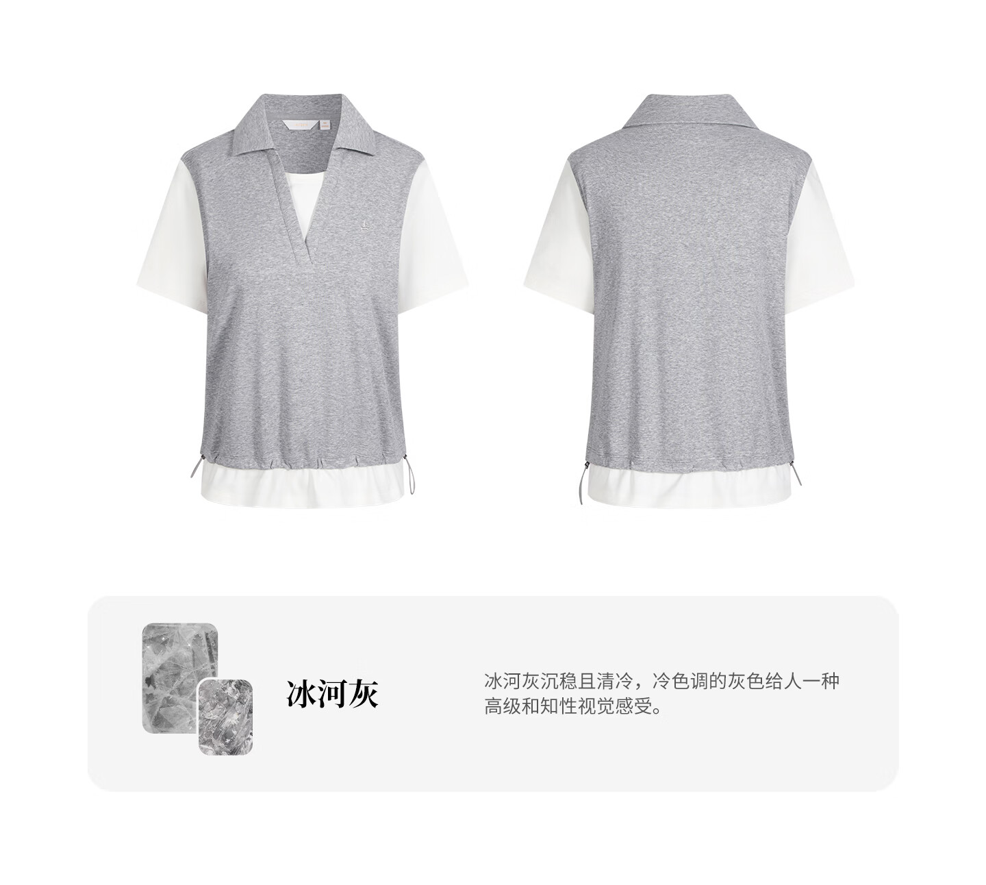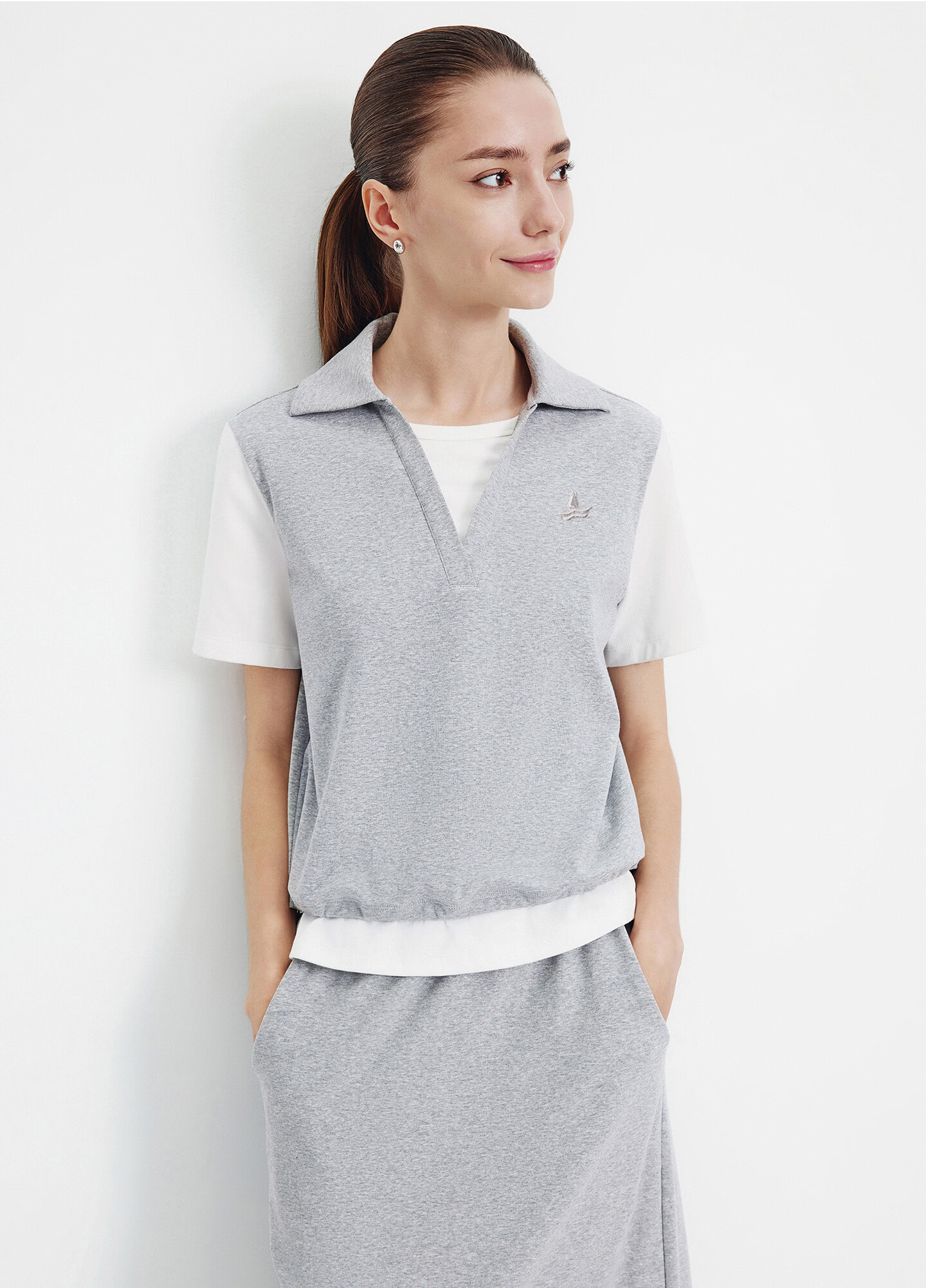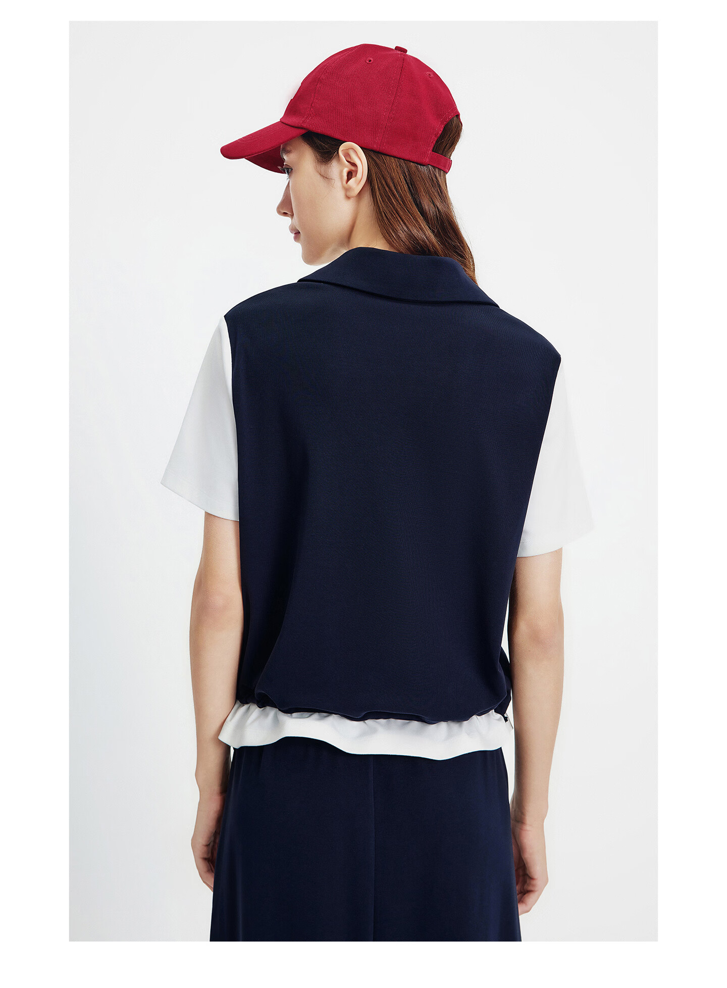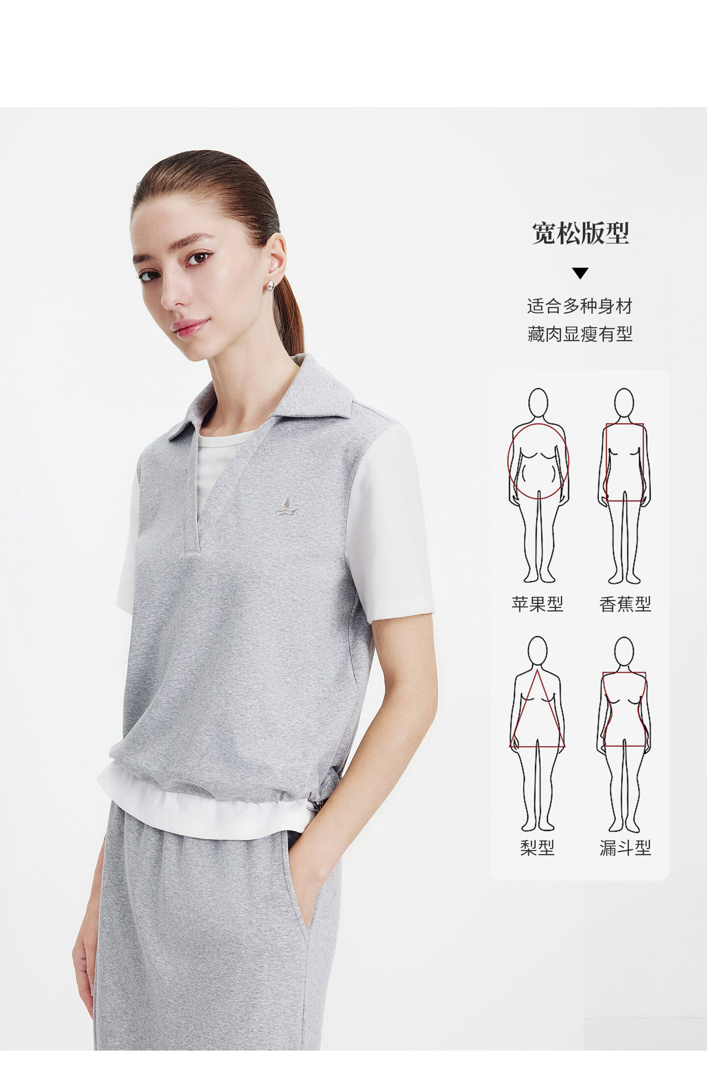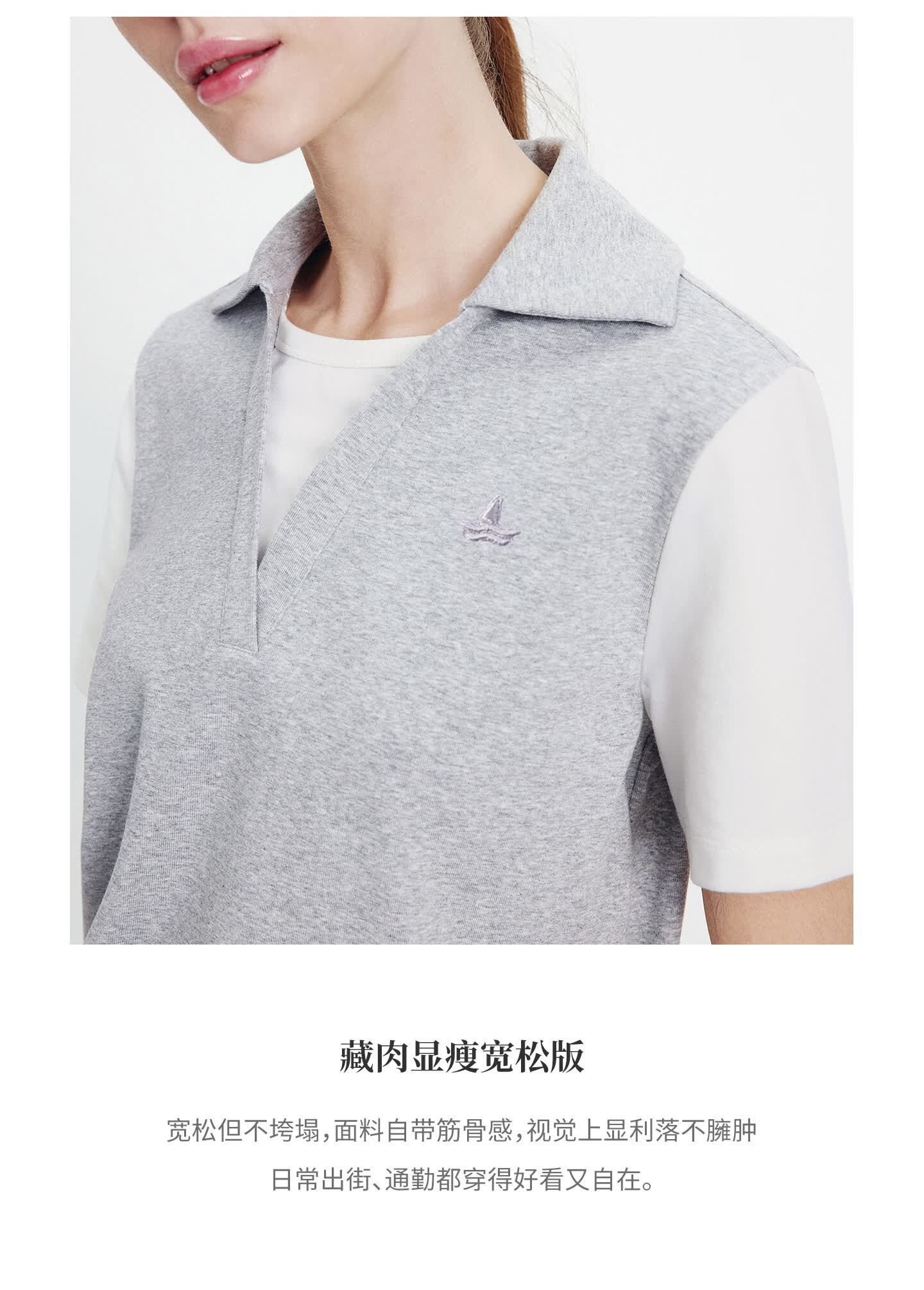 Navigare小帆船假两件V字翻领上衣2026新款女士宽松撞色短袖T恤2325536504