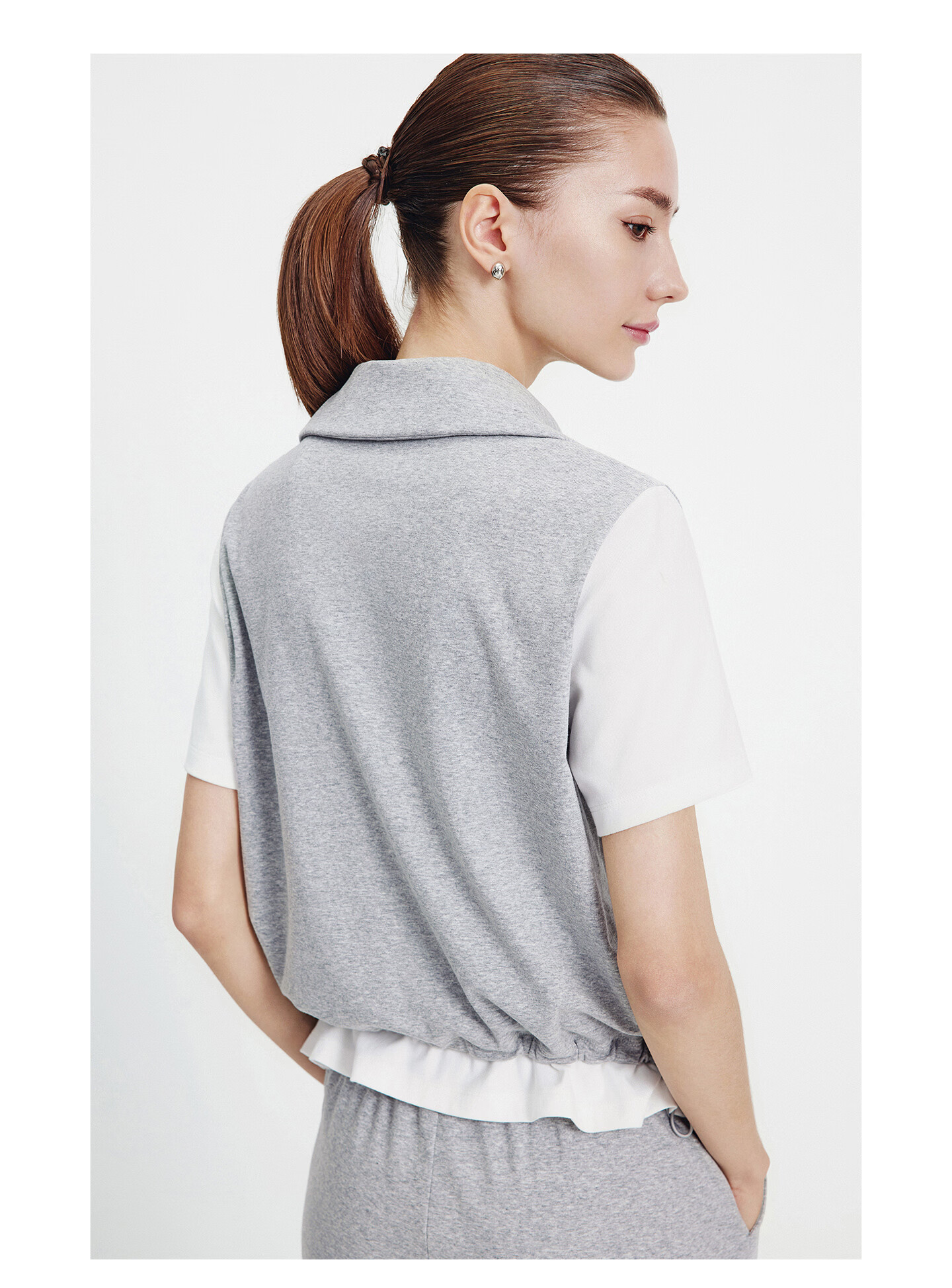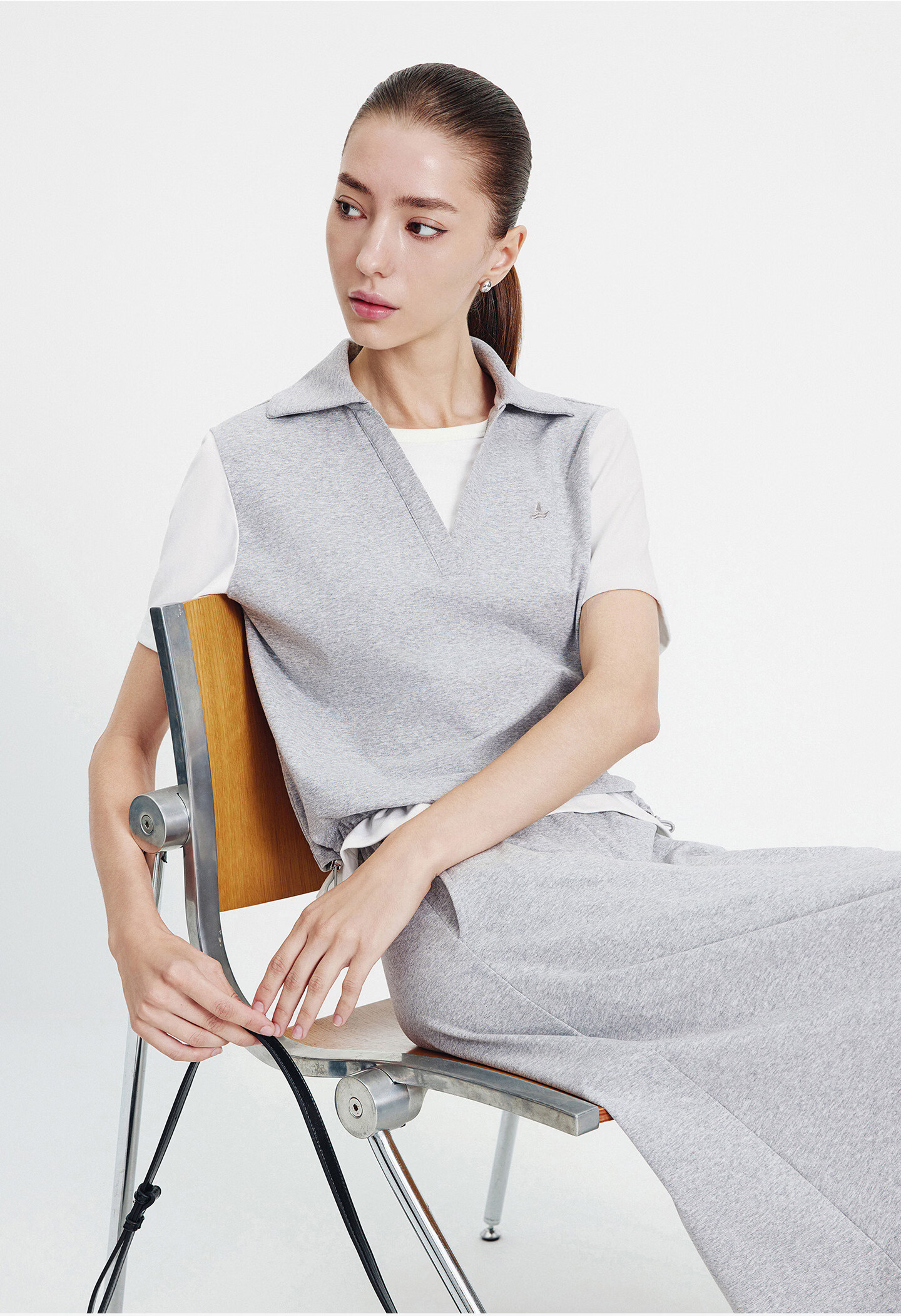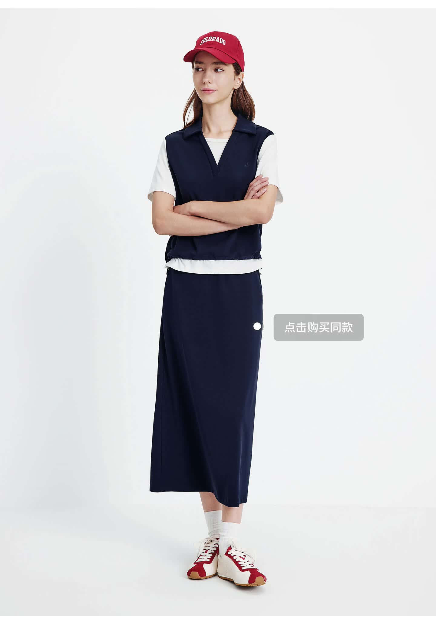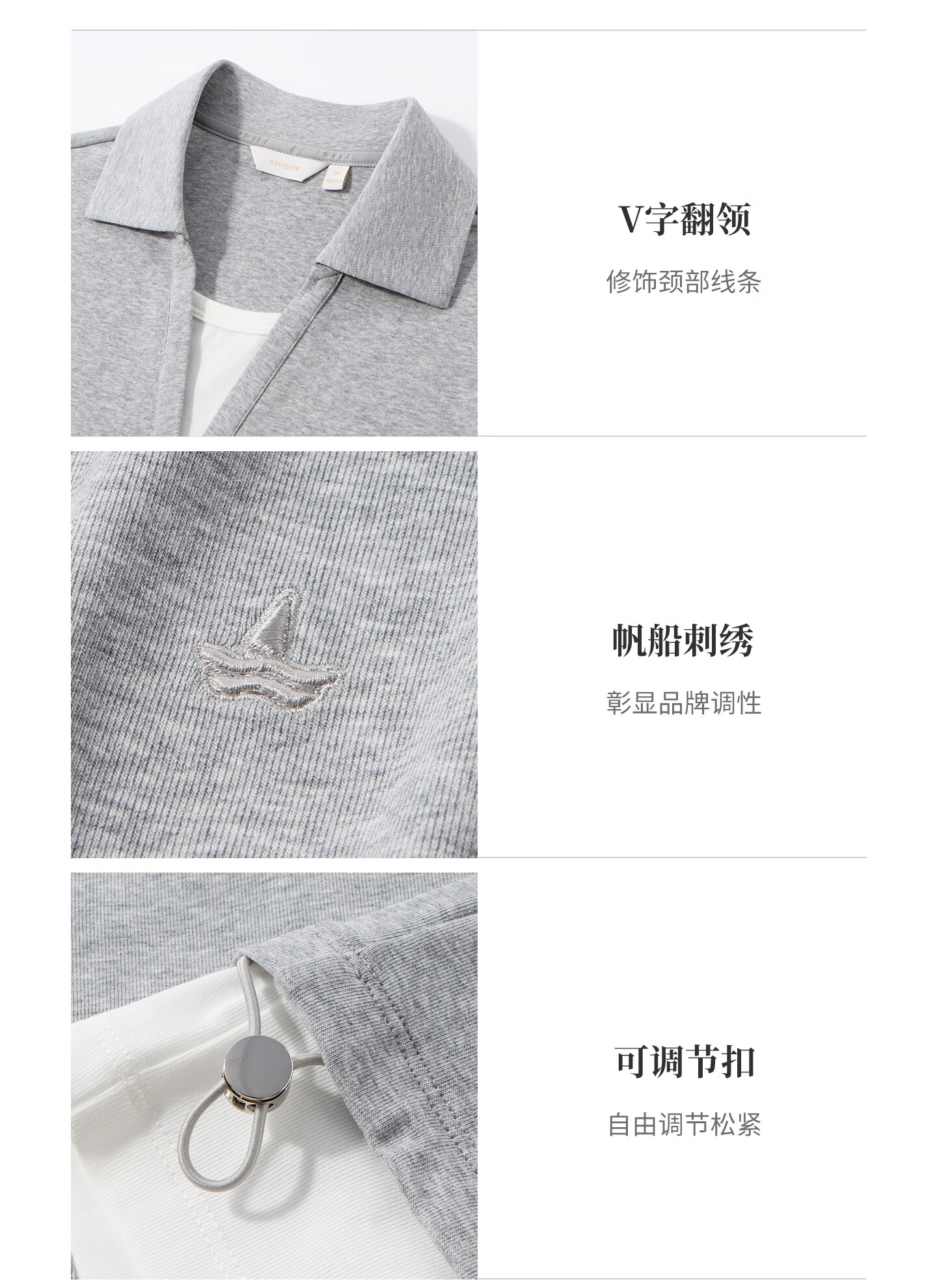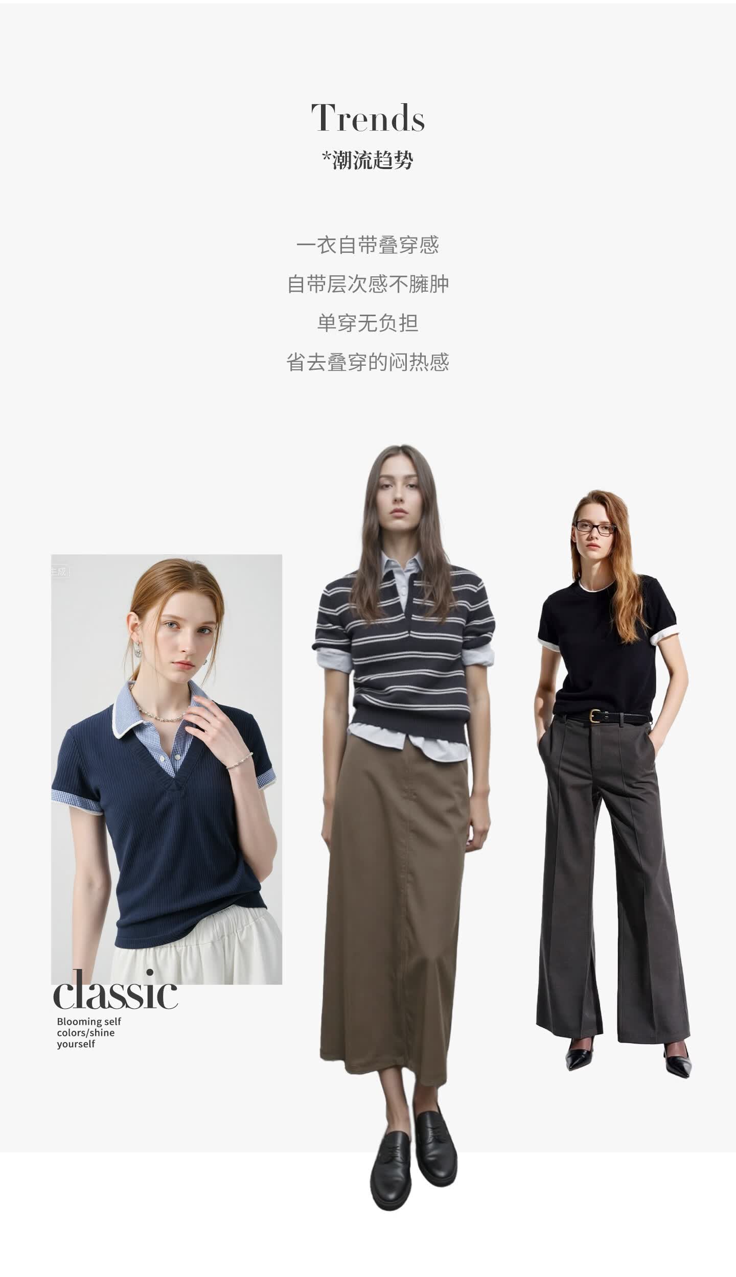 Navigare小帆船假两件V字翻领上衣2026新款女士宽松撞色短袖T恤2325536504