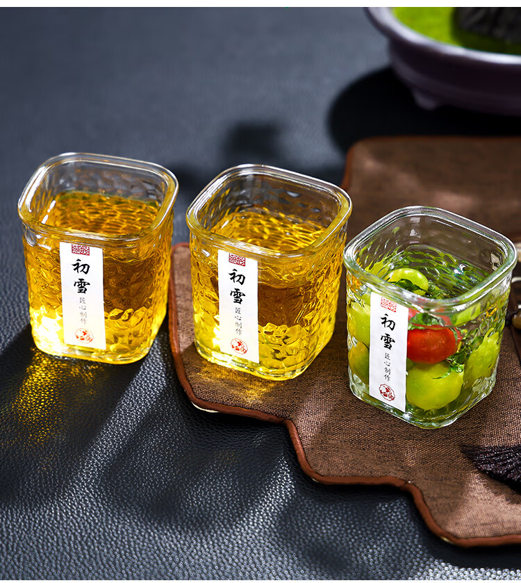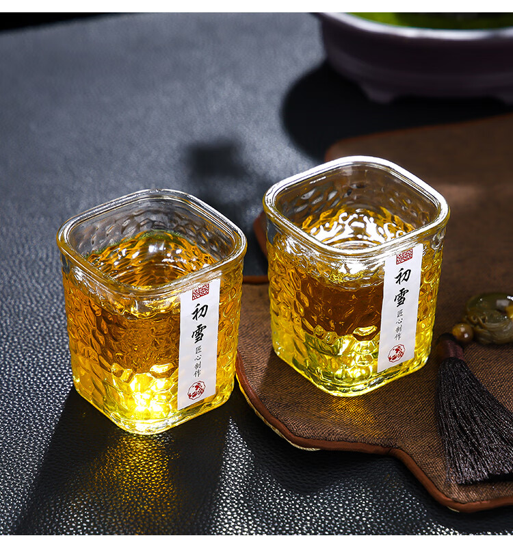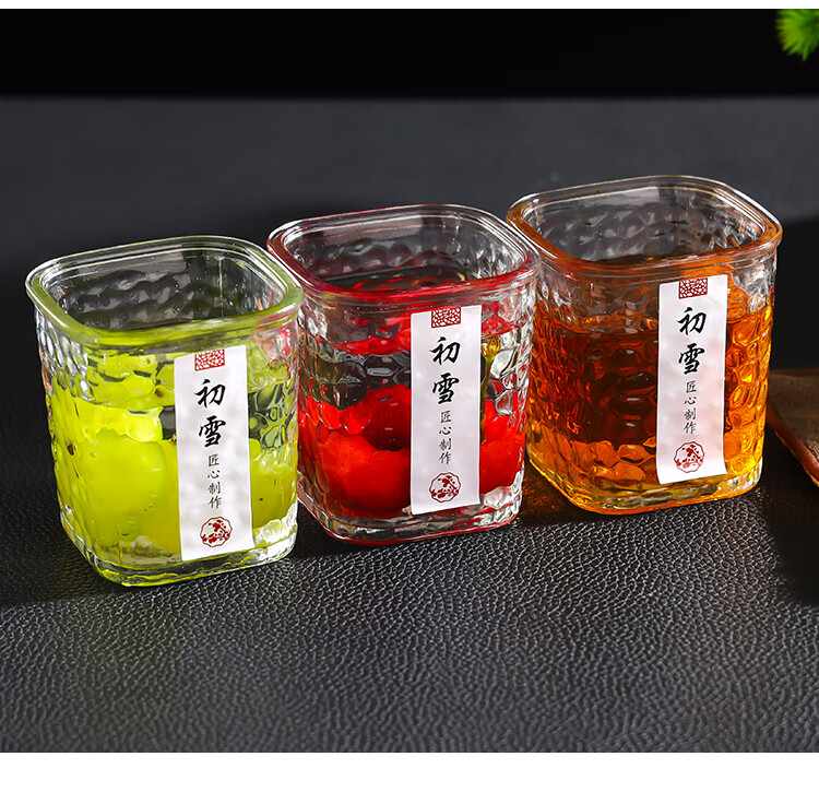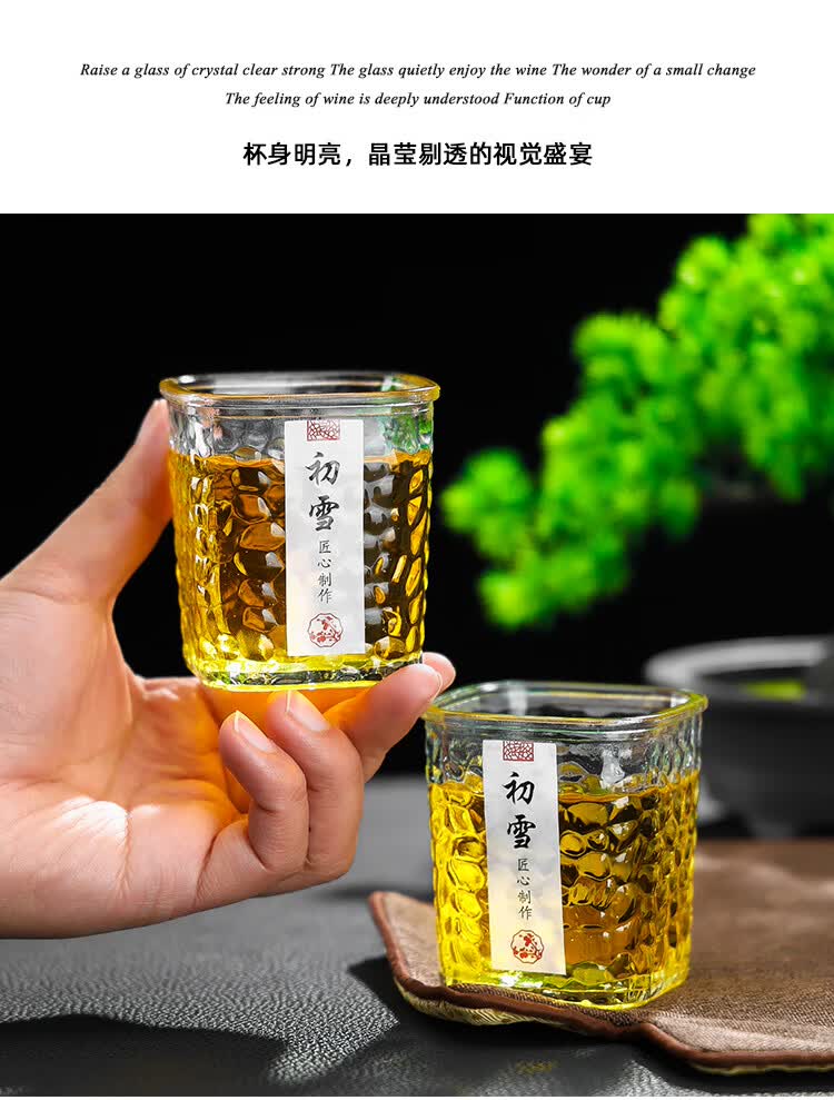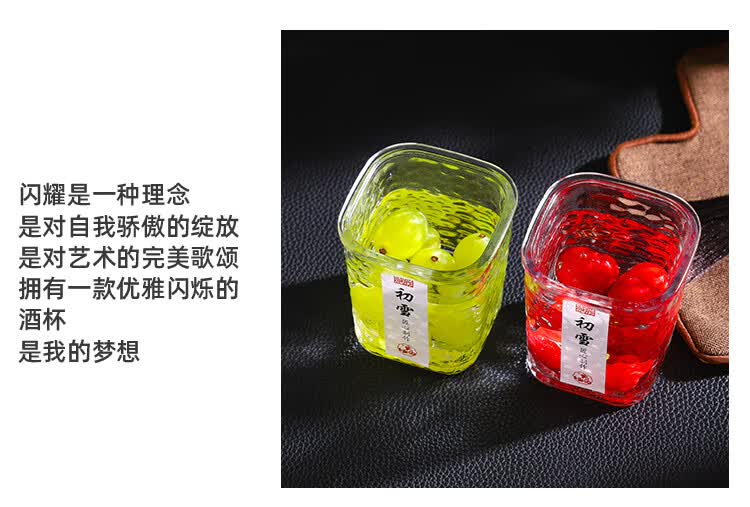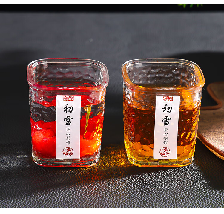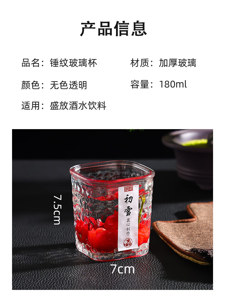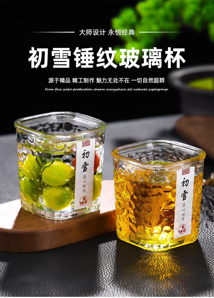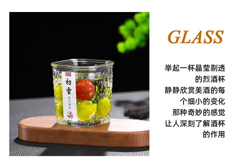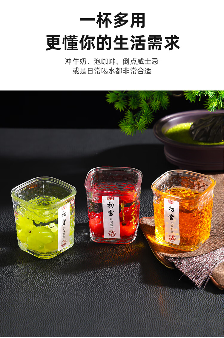高颜值锤纹杯初雪玻璃杯日式家用水杯威士忌酒杯方形杯子简约 初雪杯 200ml 鱼鳞透明