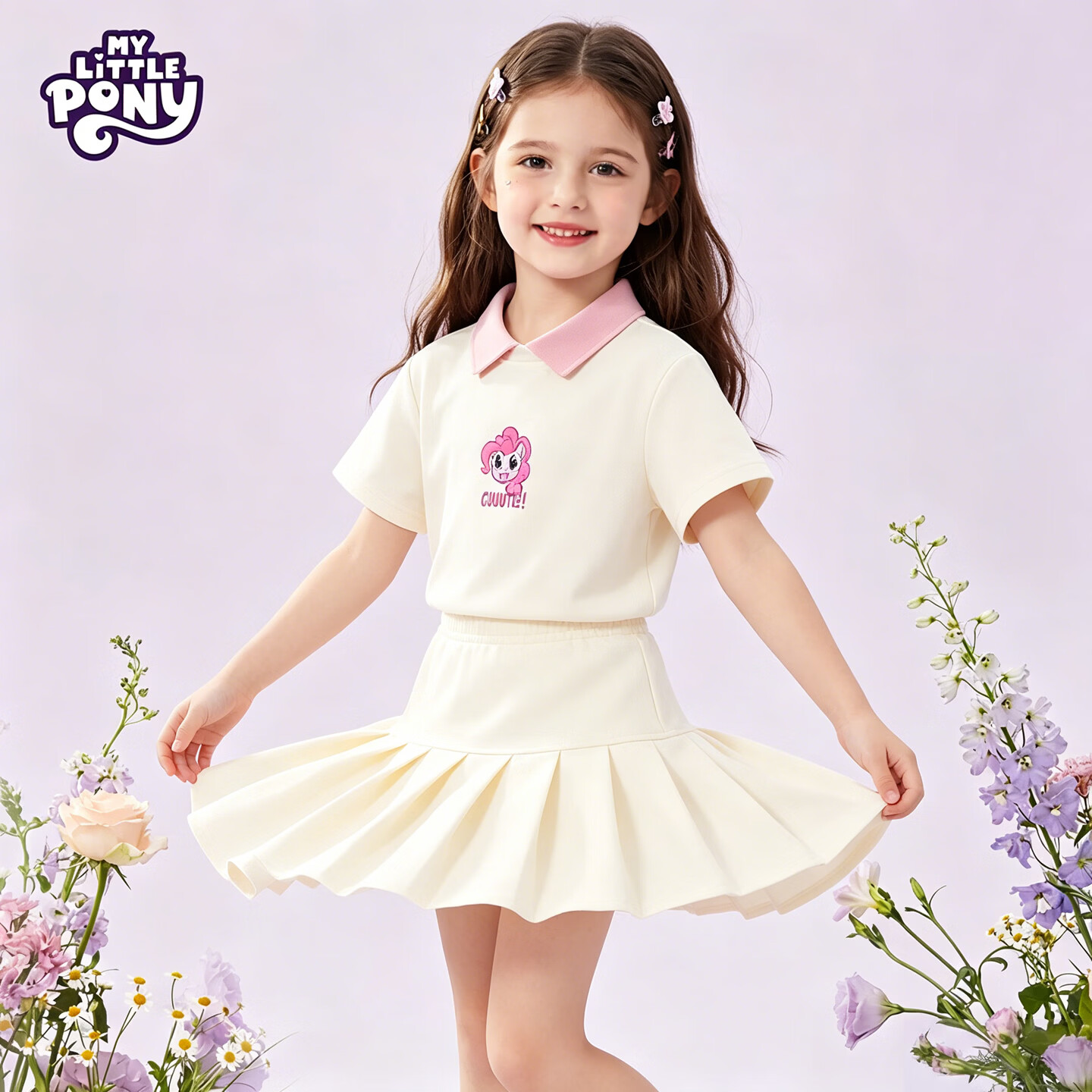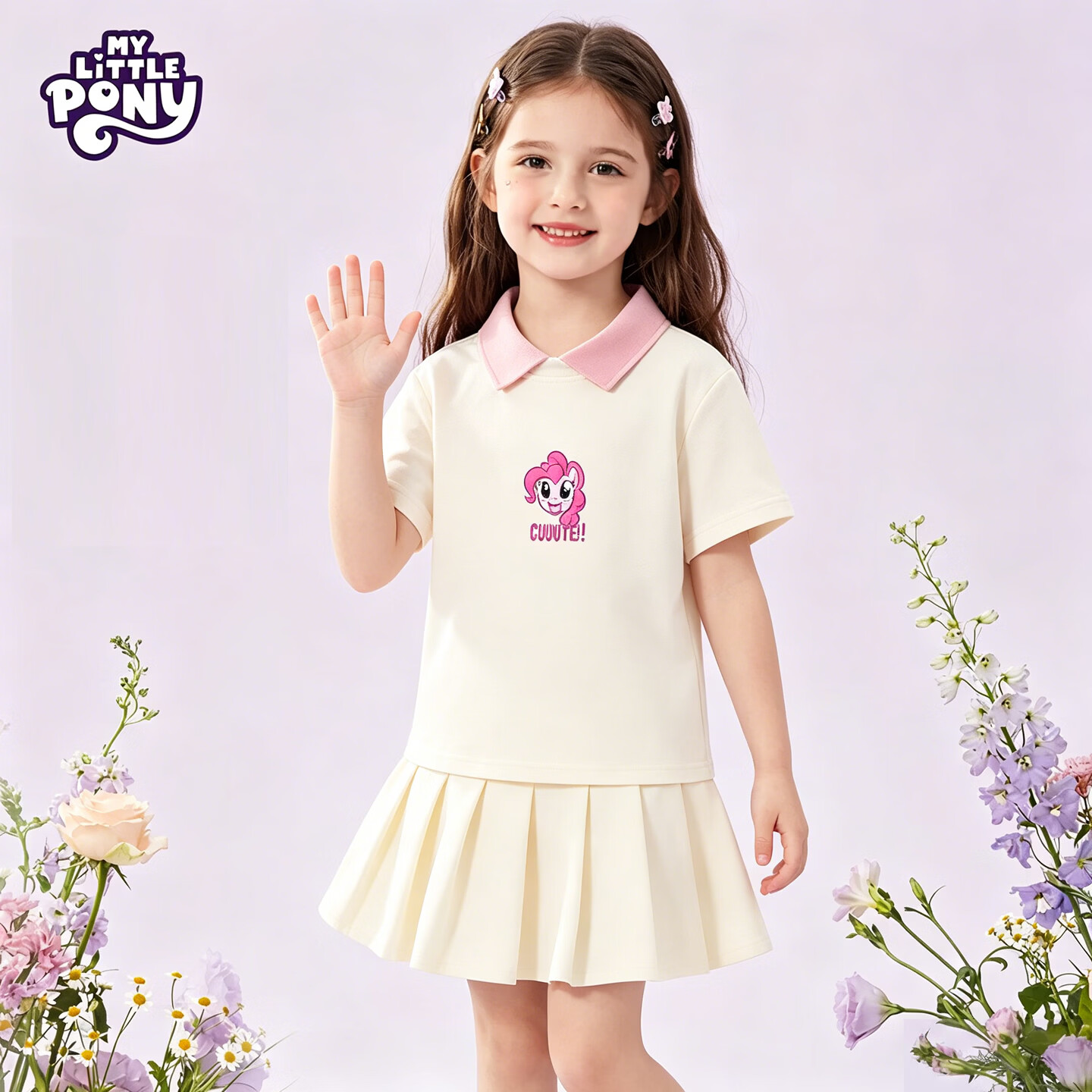 小马宝莉(MY LITTLE PONY)女童百褶裙子套装2026新款夏季女孩洋气装宝宝中小童夏装 粉色 110 110码 建议100-110cm