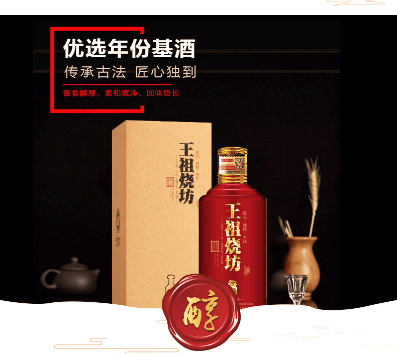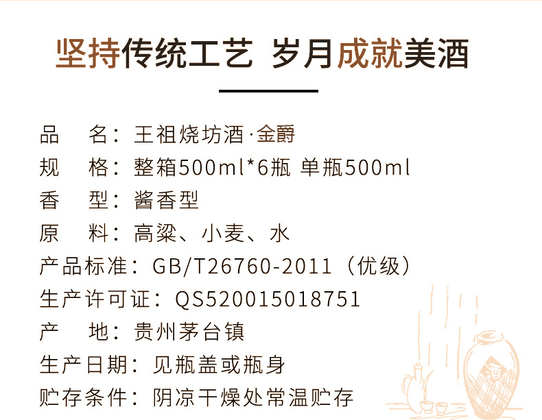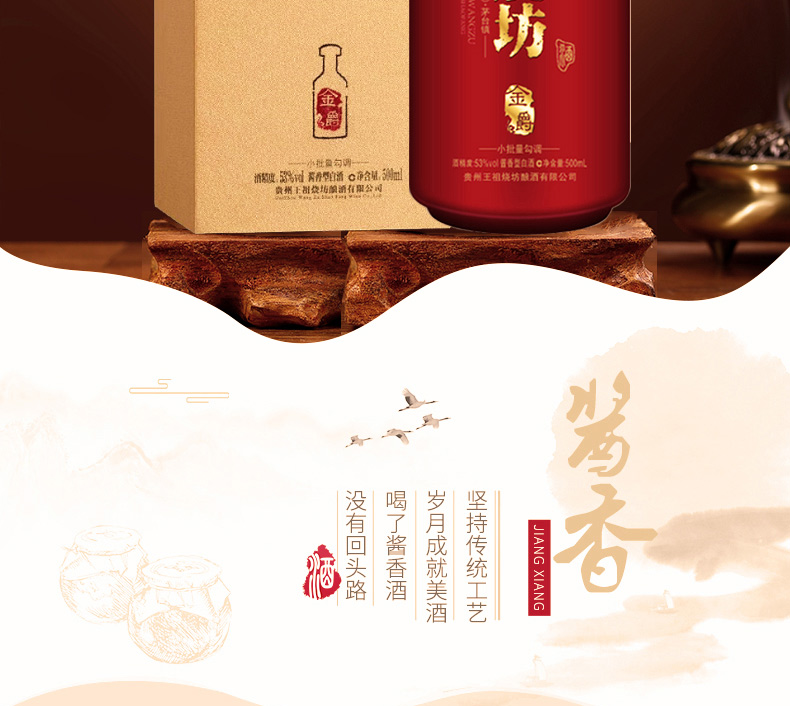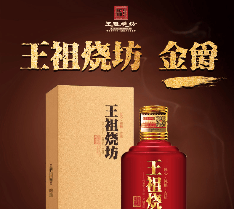 王祖燒坊【金爵】53度酱香型白酒大曲坤沙古法工艺陈酿酒高端礼盒纯粮食酒 53%vol 500mL 6瓶