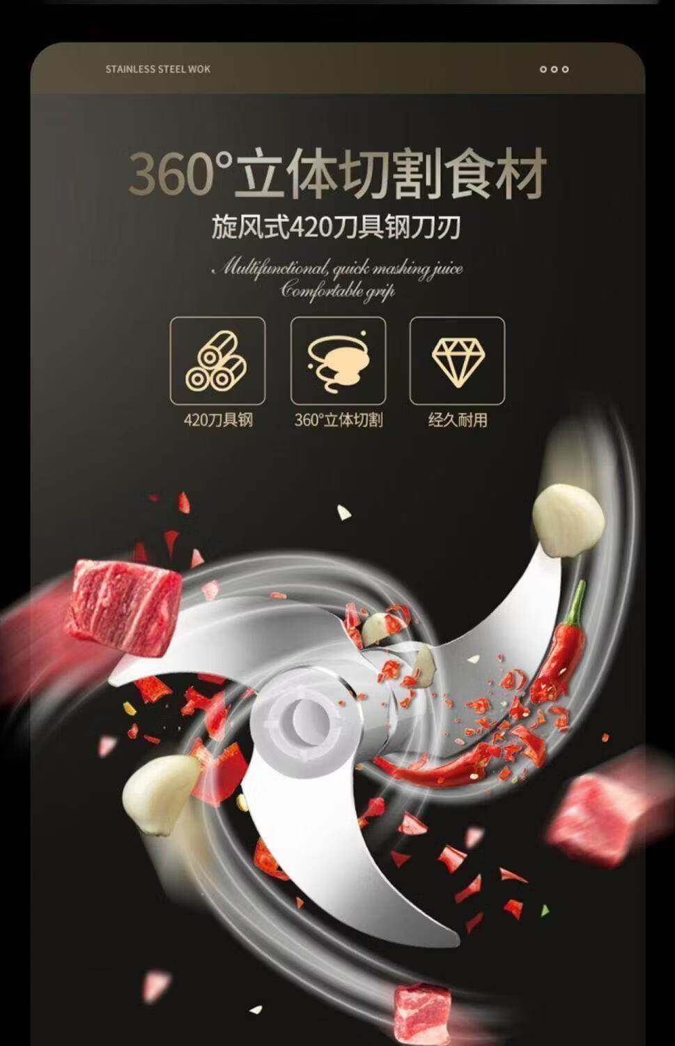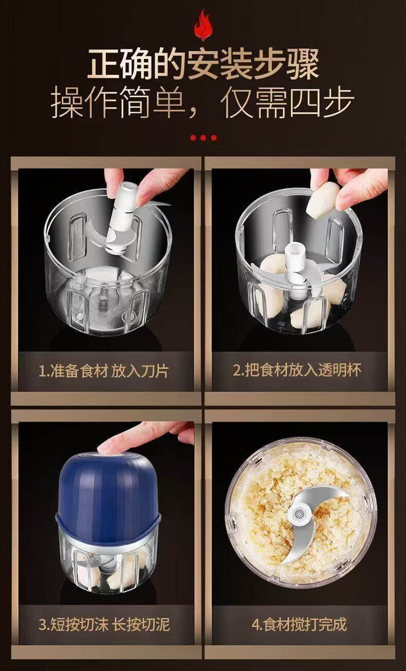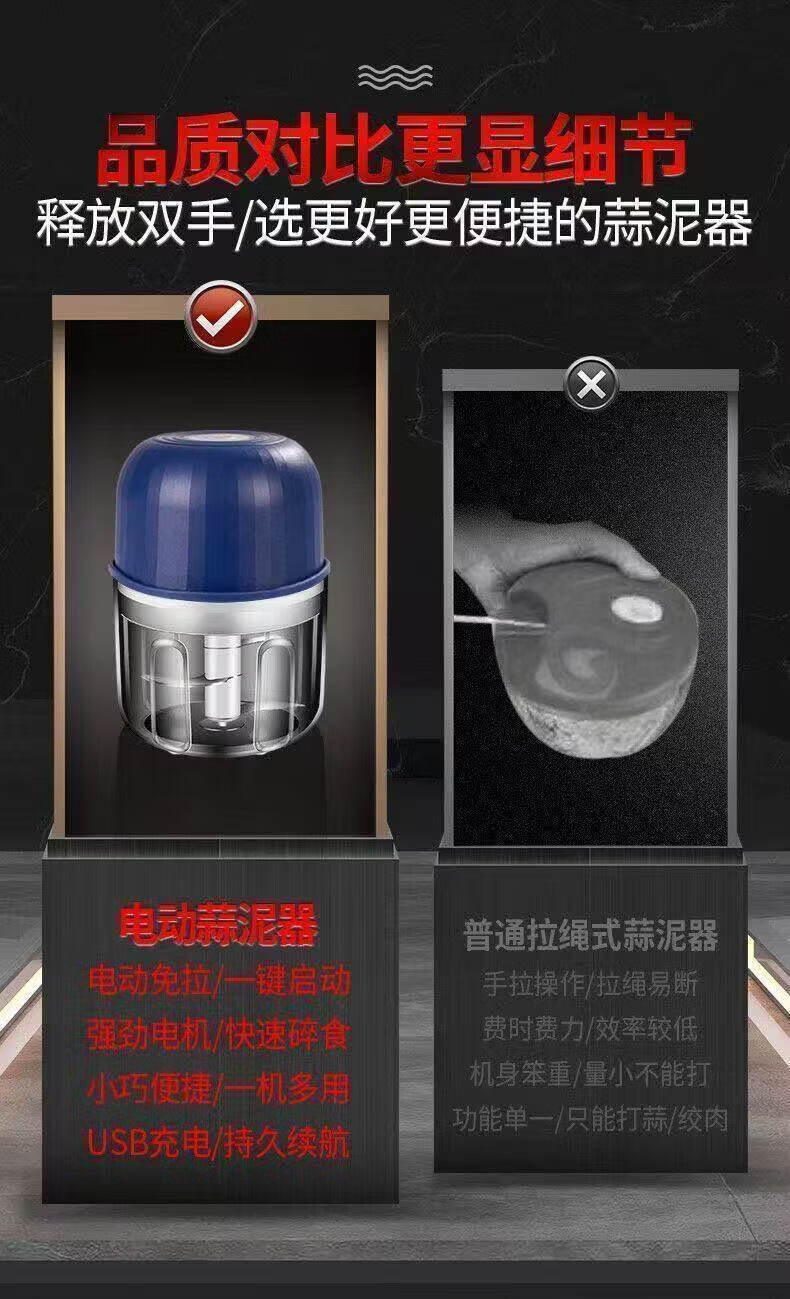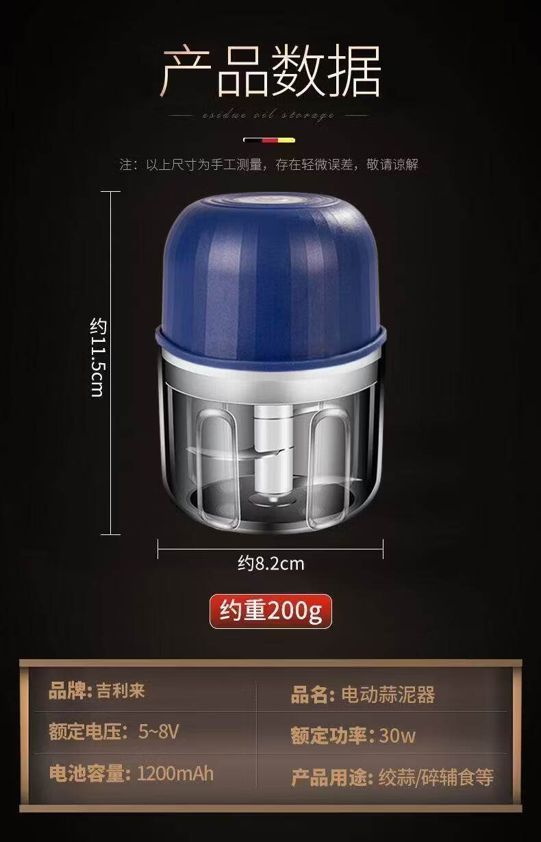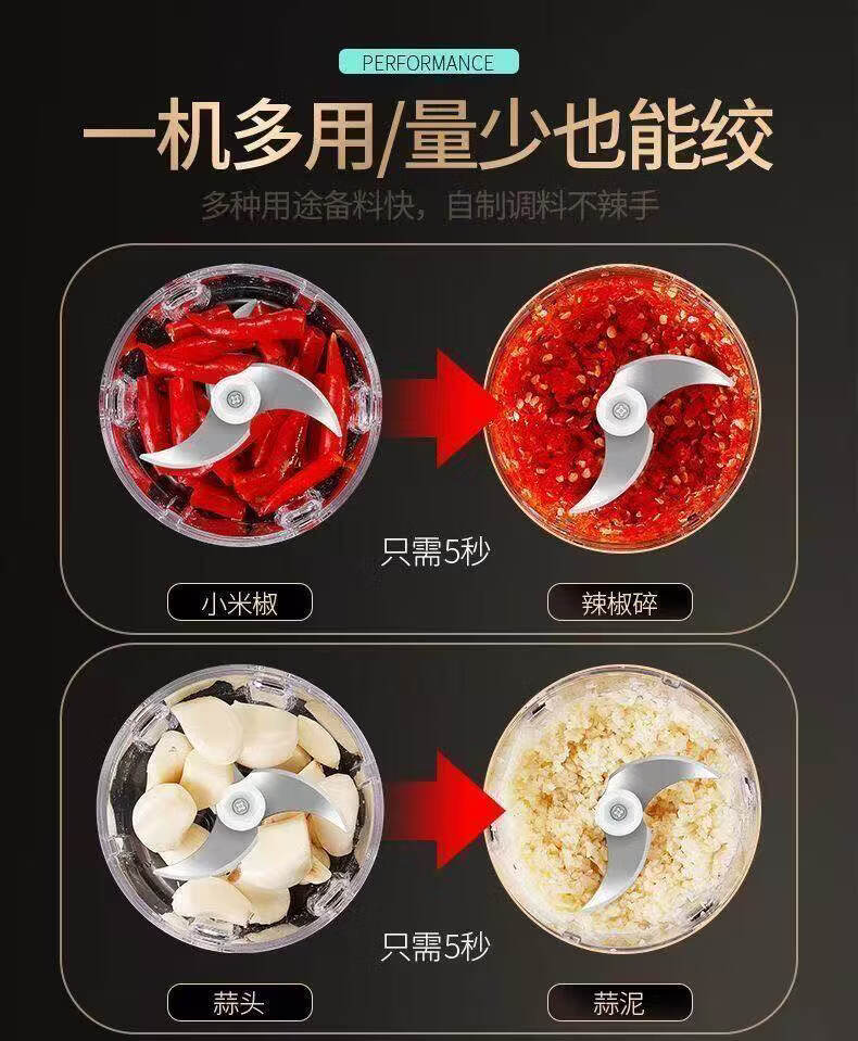 胖东来同款电动蒜泥器打蒜器捣蒜辣椒蘸料绞肉机厨房家用绞蒜器 高速马达【999亿转】顶配精钢刀 0.306L