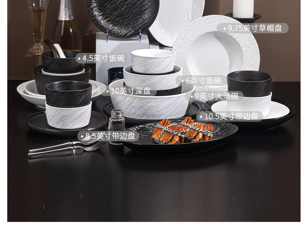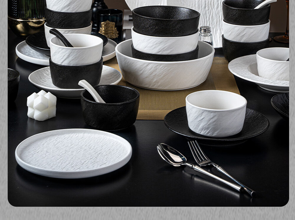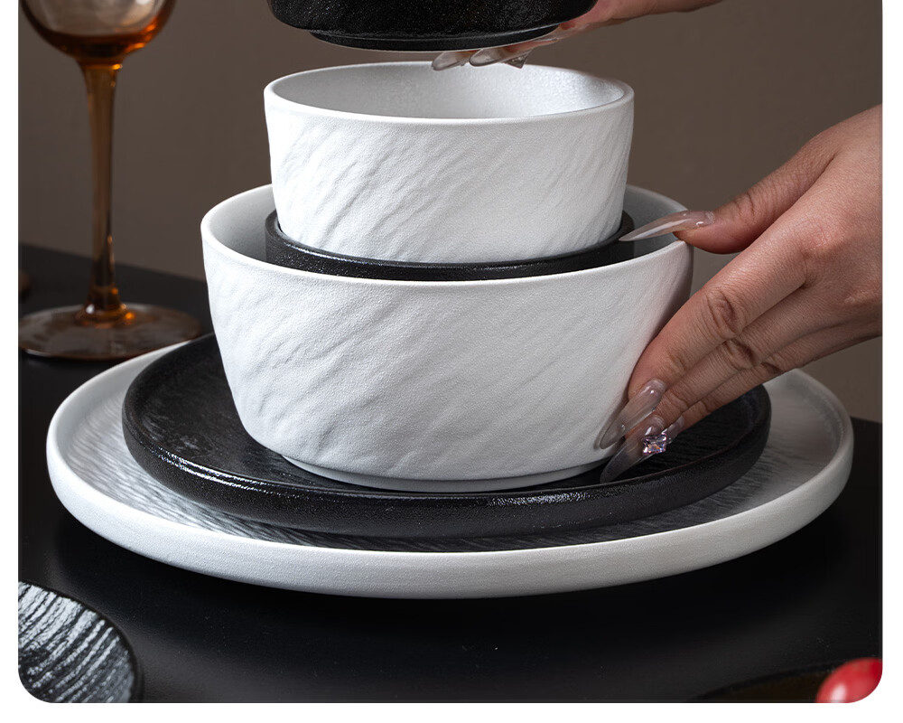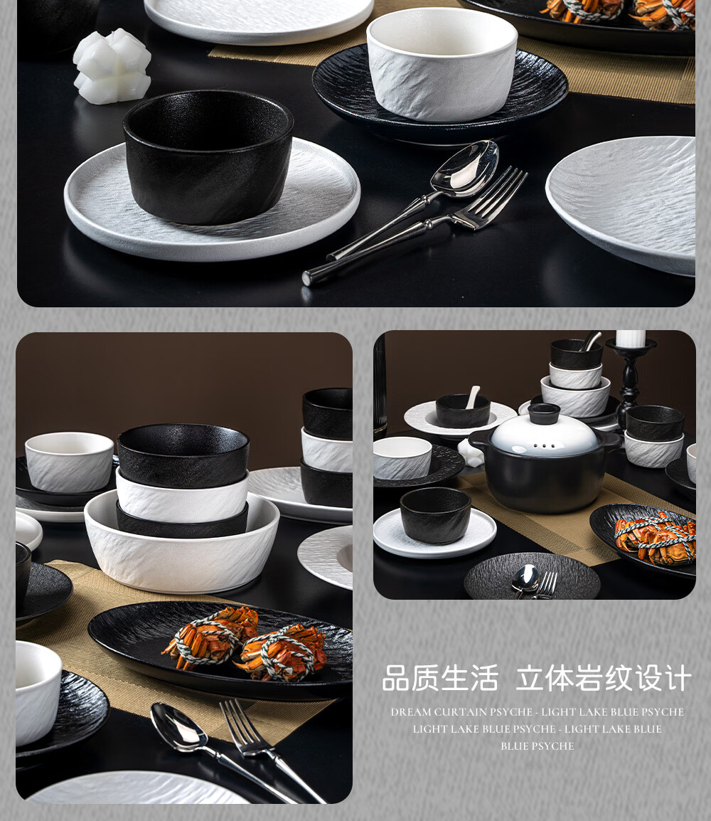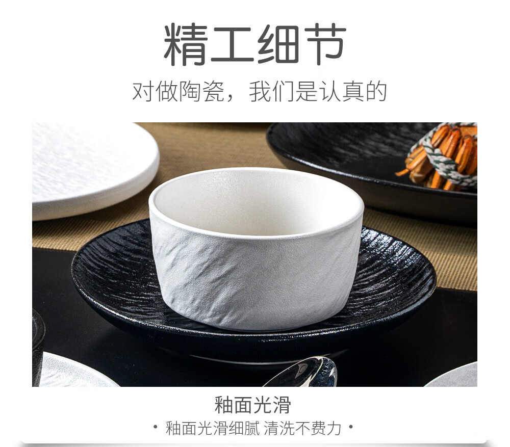 韵之和釉下彩吃饭碗家用景德镇2026新款高颜值黑白日式简约餐具碗盘碟 岩纹黑白-白色4.5英寸饭碗