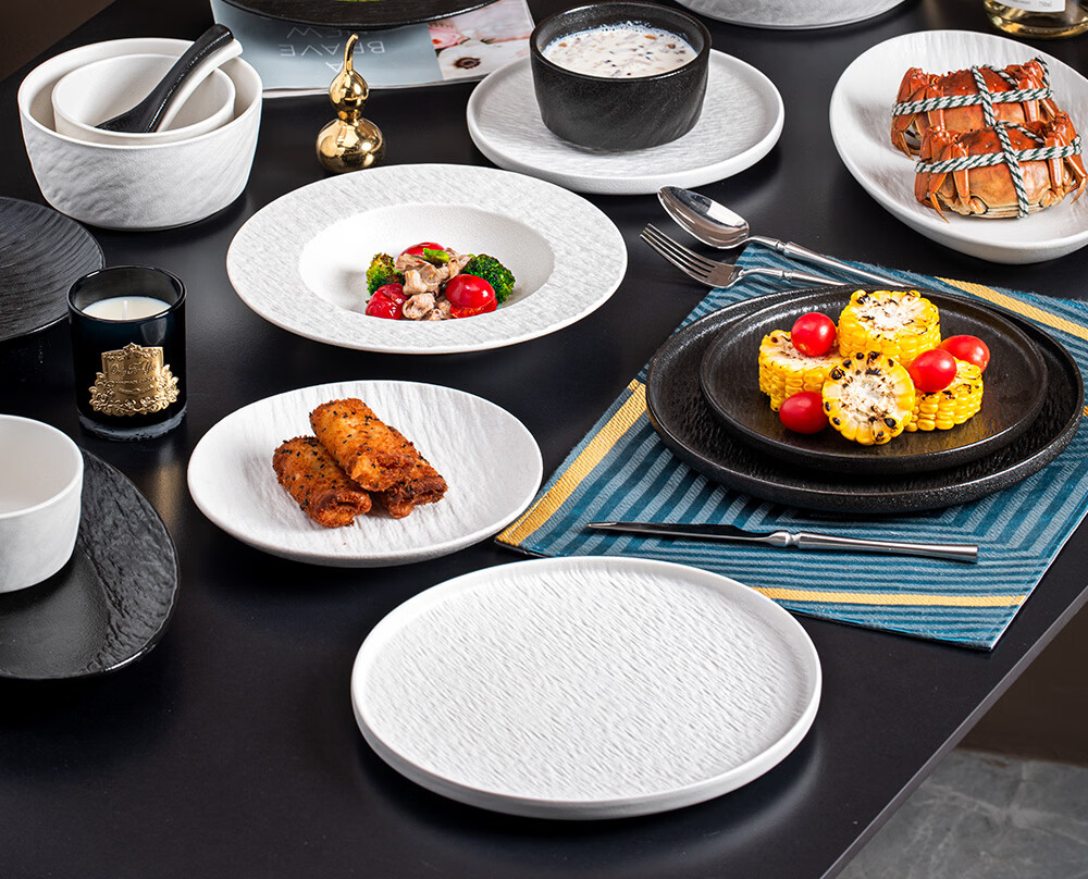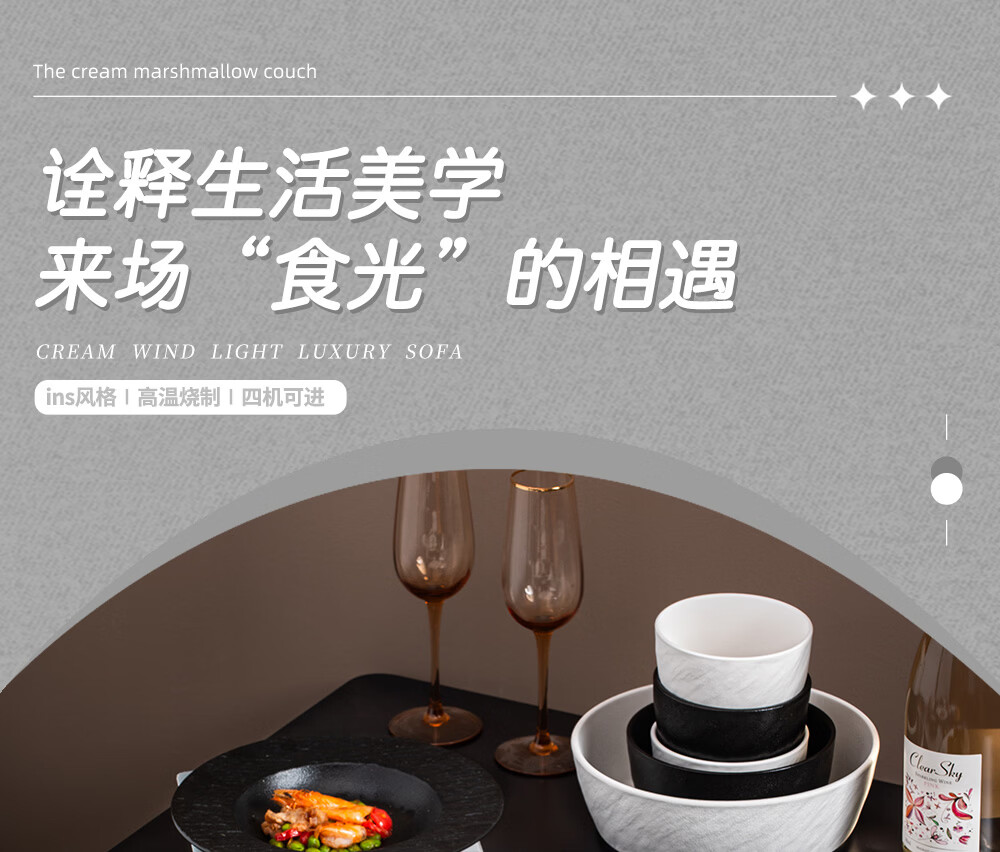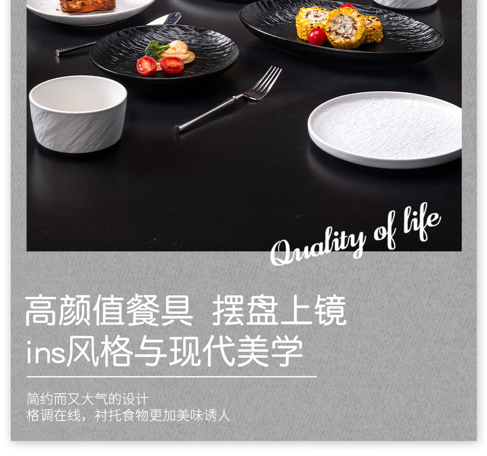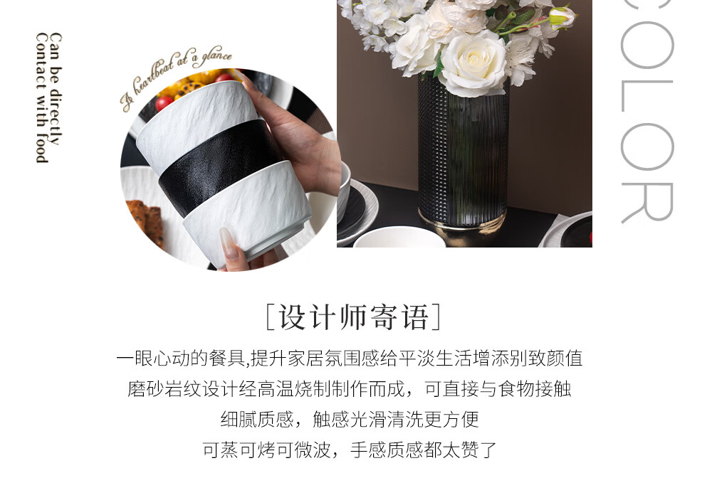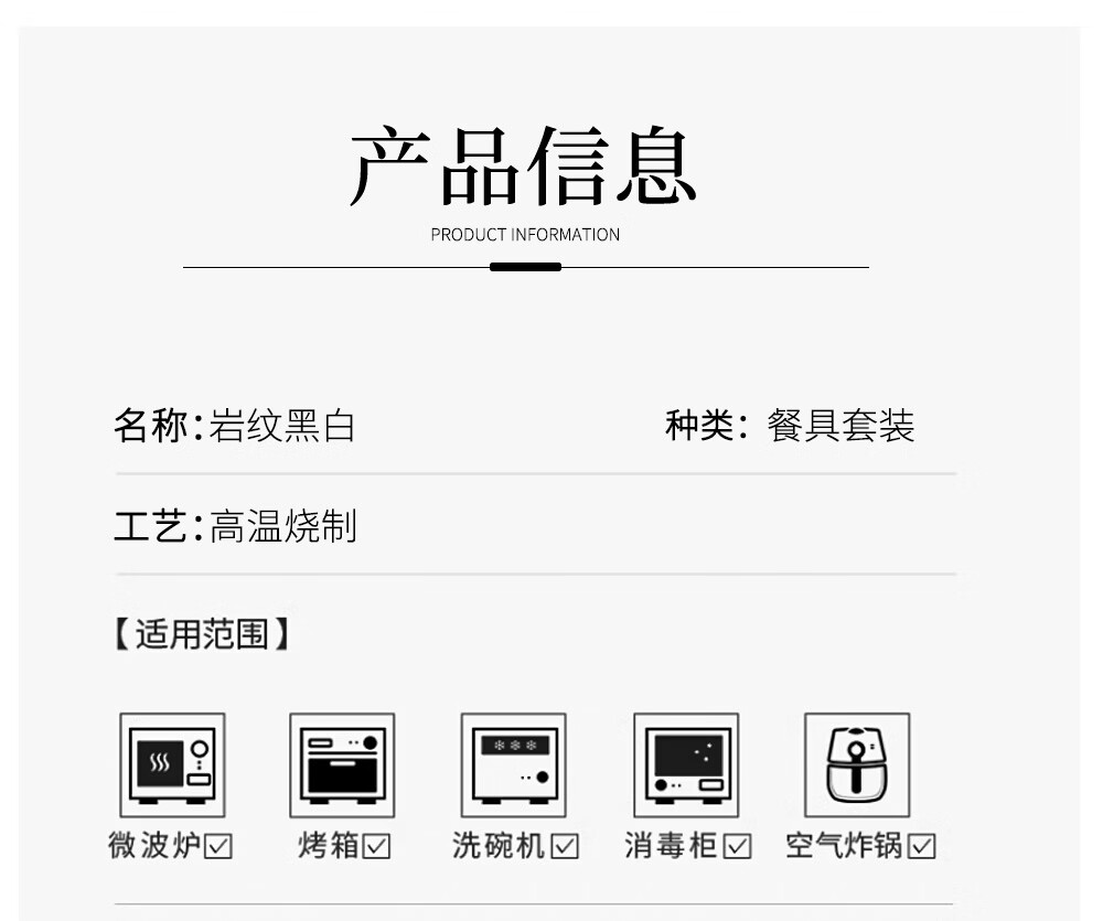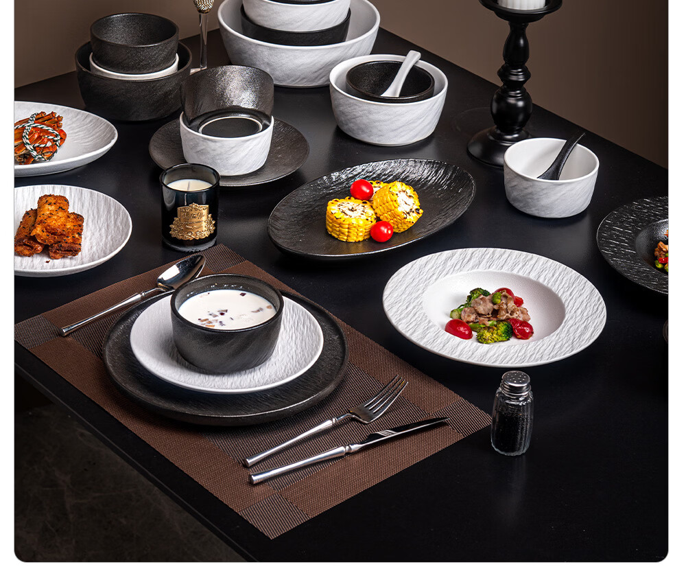 韵之和釉下彩吃饭碗家用景德镇2026新款高颜值黑白日式简约餐具碗盘碟 岩纹黑白-白色4.5英寸饭碗