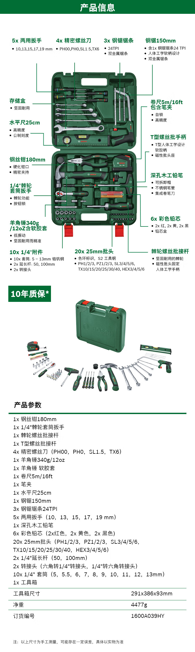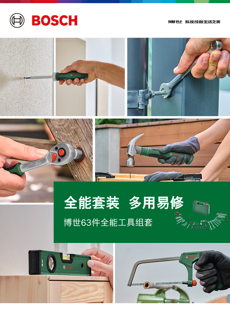 博世(BOSCH)63件全能工具组套专业工具箱套筒扳手锤子卷尺螺丝刀批头家用套装 混合套装