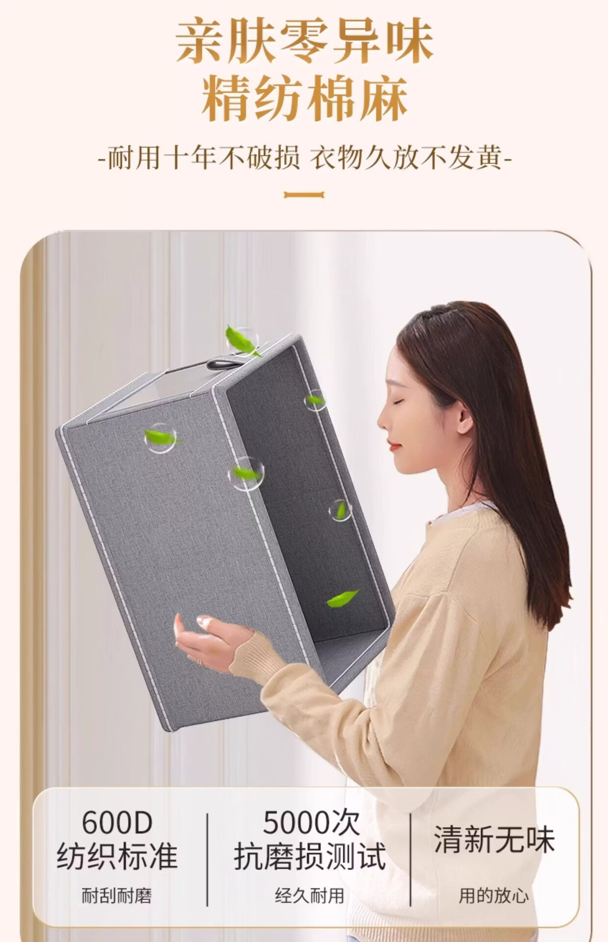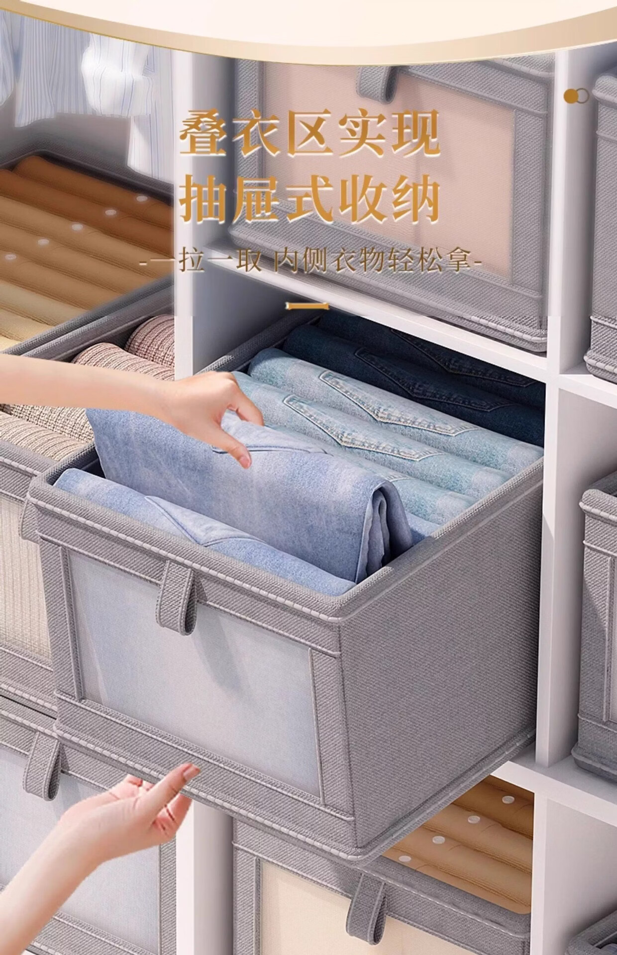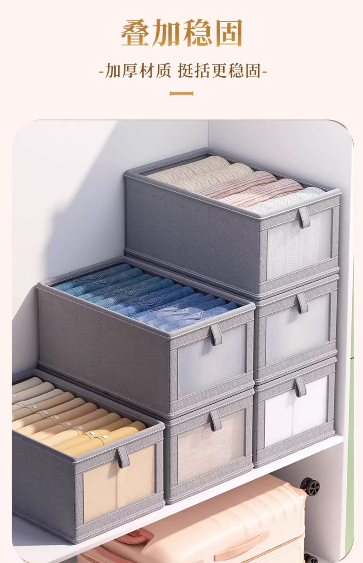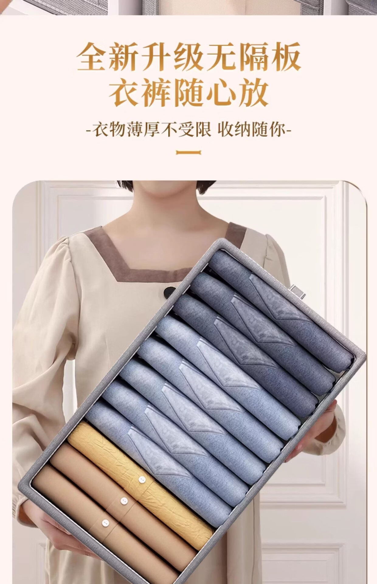 米卡博收纳盒衣物衣柜收纳家用装衣物裤子储物盒衣柜分层折叠整理箱 米白色【20L】加厚涤纶布【秋冬毛衣/卫衣/裤子】 2个装