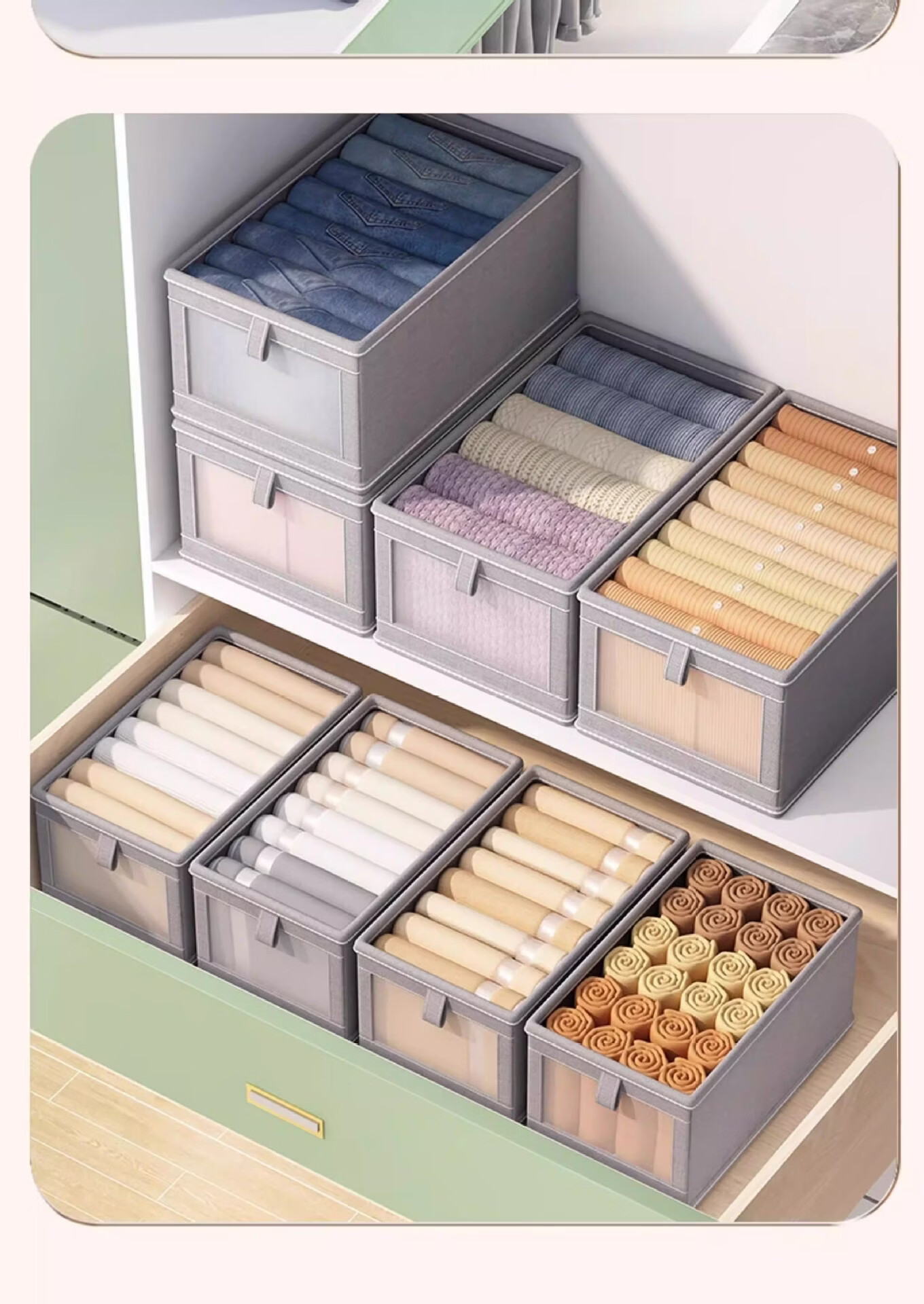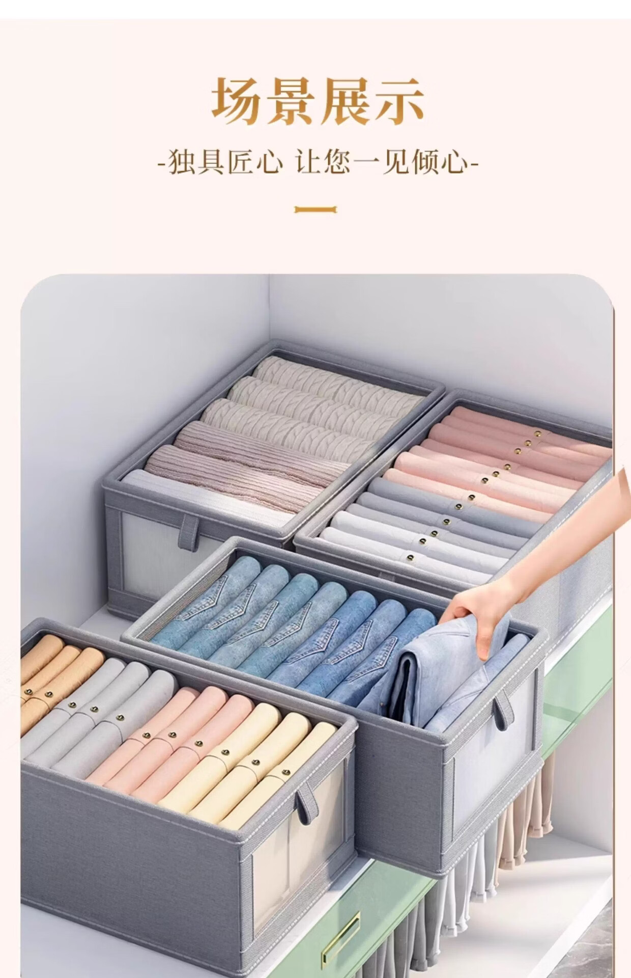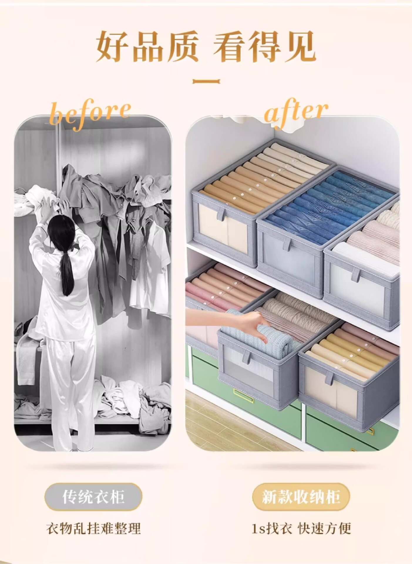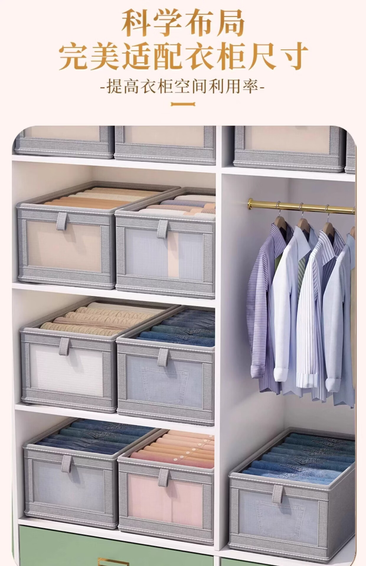 米卡博收纳盒衣物衣柜收纳家用装衣物裤子储物盒衣柜分层折叠整理箱 米白色【20L】加厚涤纶布【秋冬毛衣/卫衣/裤子】 2个装