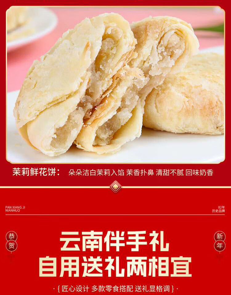潘祥记鲜花饼云南特产一盒吃遍云南花糕点礼盒400g送礼礼盒【源头直发】