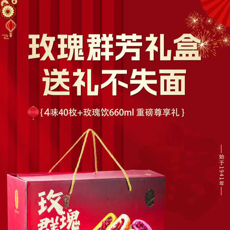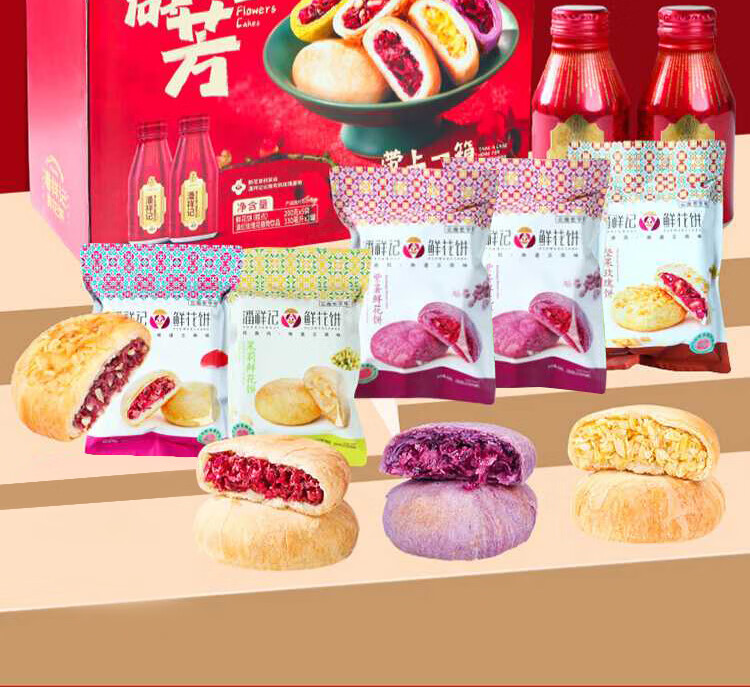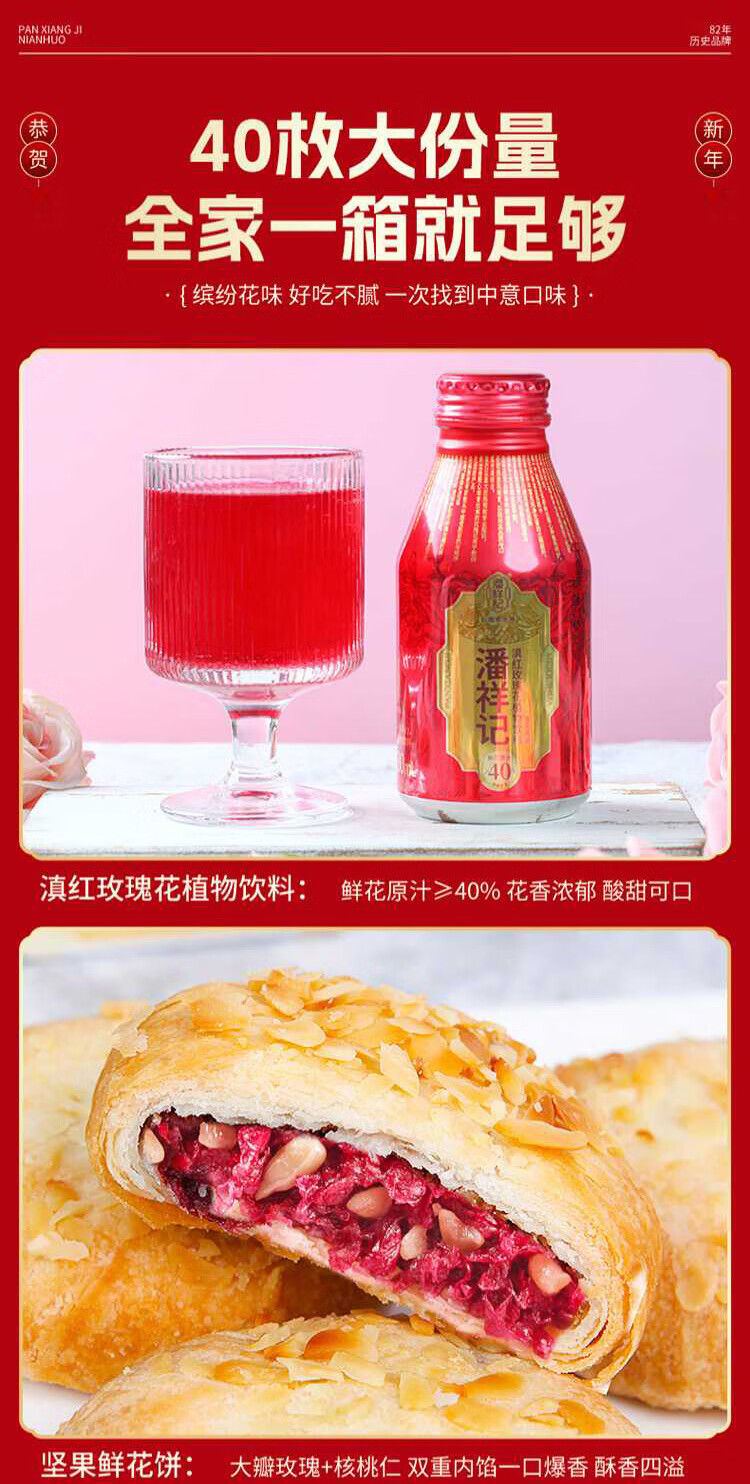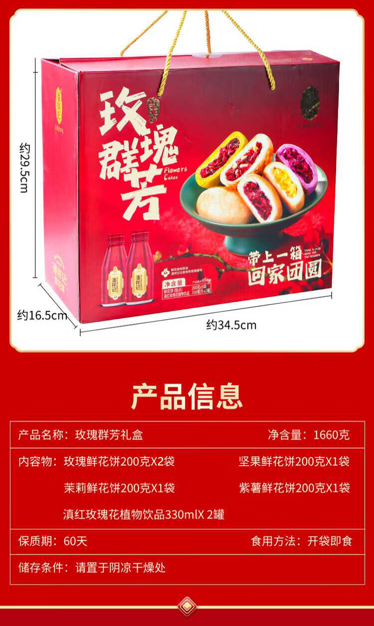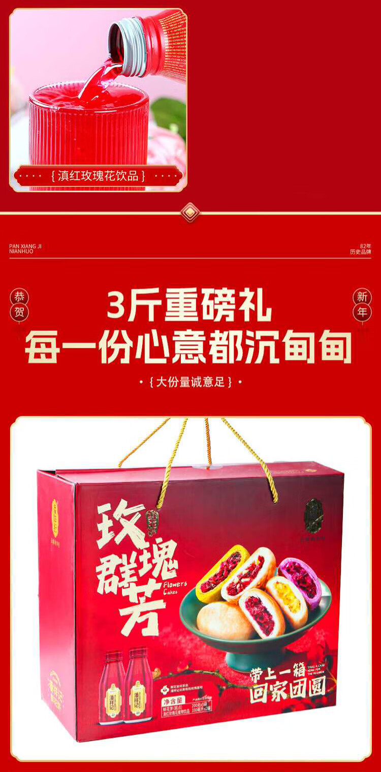 潘祥记鲜花饼群芳年货礼盒云南特产糕点礼盒 200g*5袋+660ml玫瑰花饮