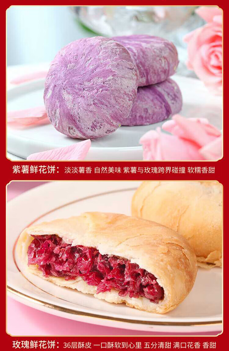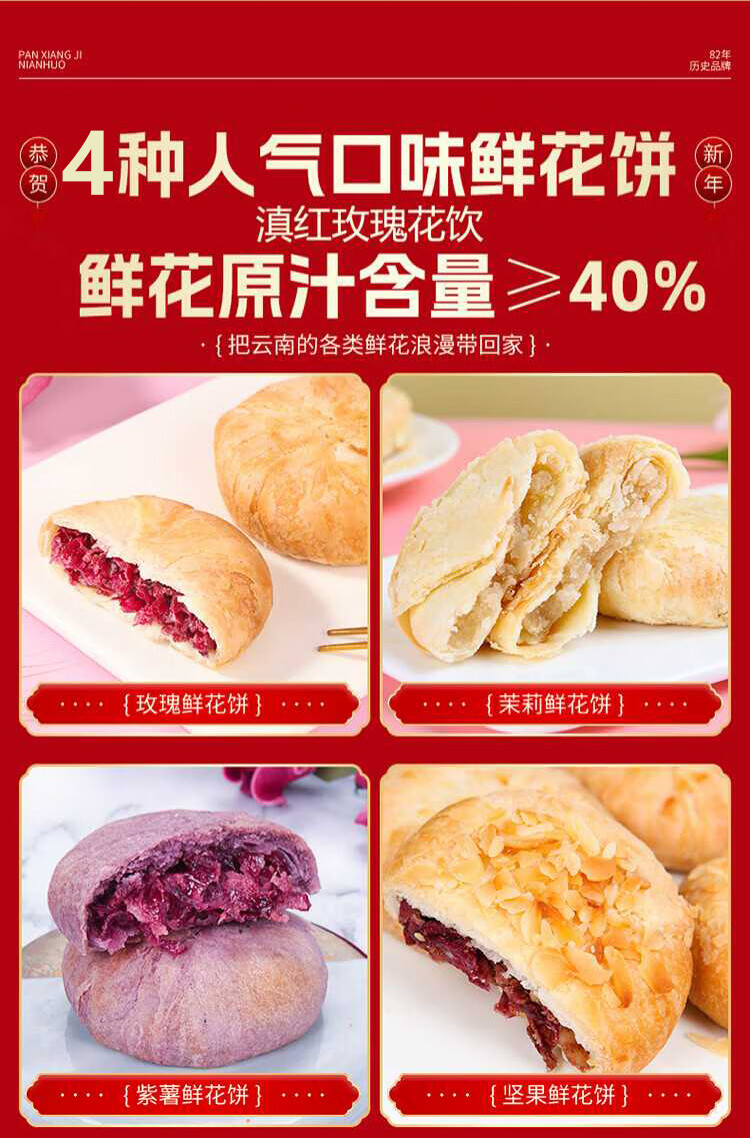 潘祥记4口味鲜花饼 云南特产早餐零食糕点紫薯/茉莉 40枚2斤礼盒