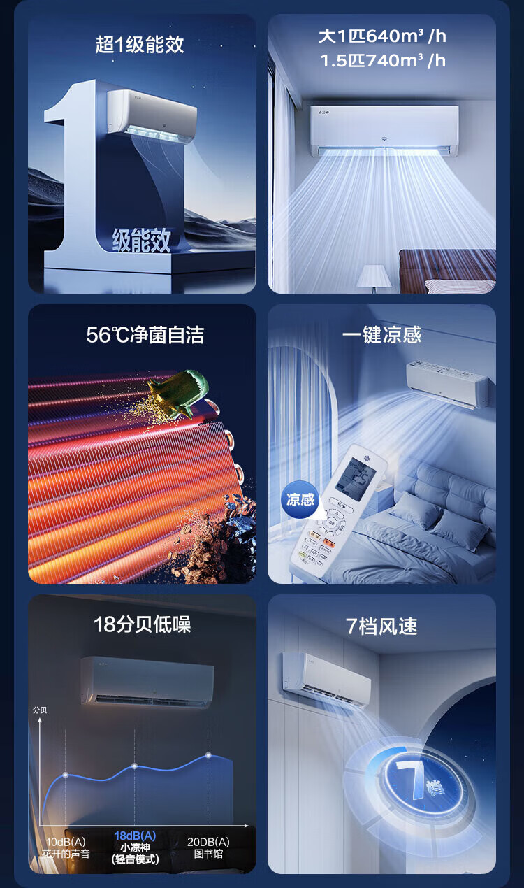 格力空调 1.5匹/大1匹 新一级能效 变频冷暖 纯铜管 省电 壁挂式空调挂机 家电国家补贴 格力出品 晶弘 1.5匹 格力出品 晶弘 小凉神 性价比神机 纯铜管
