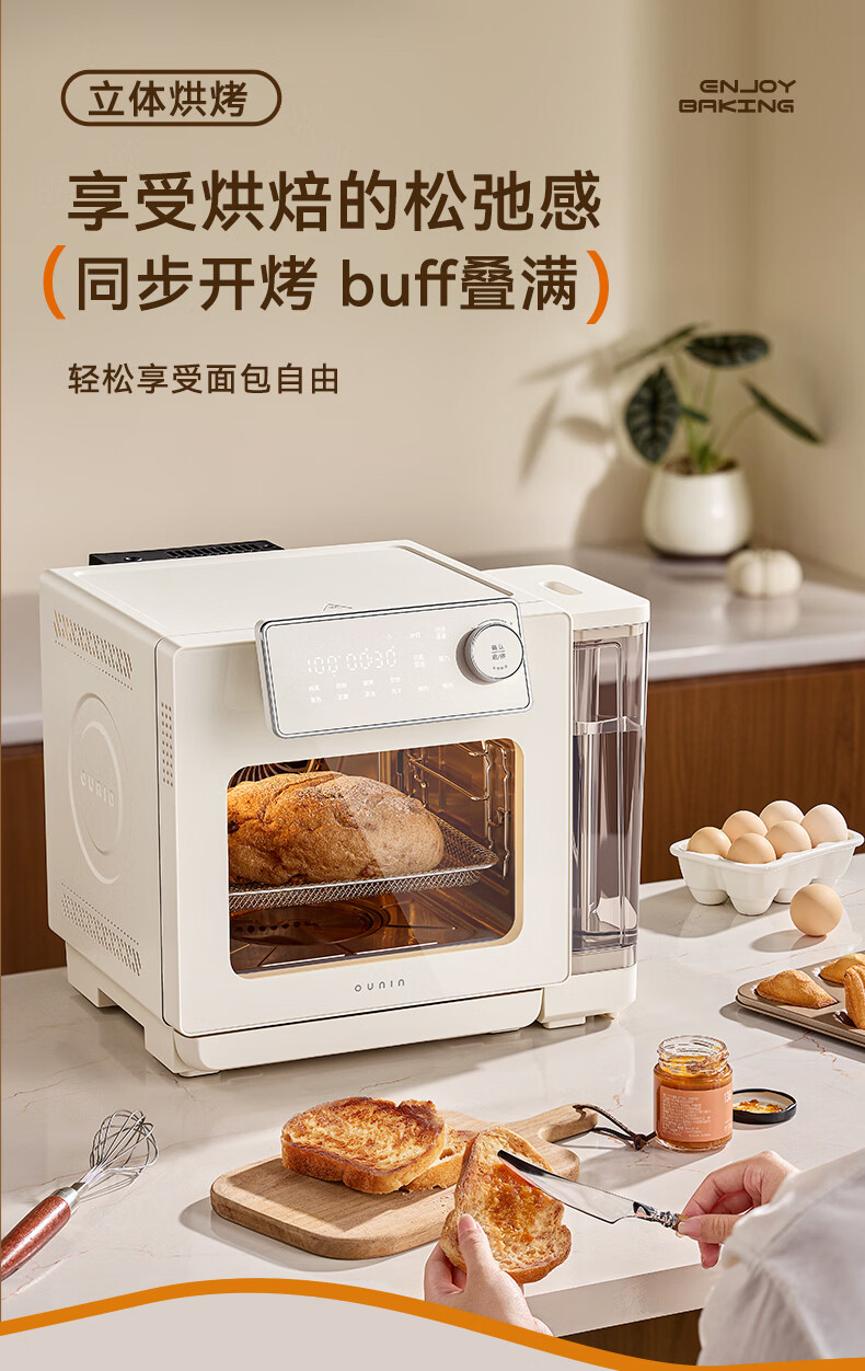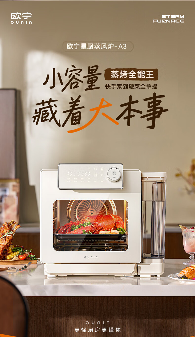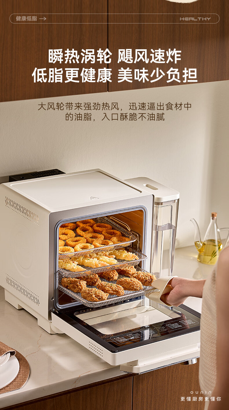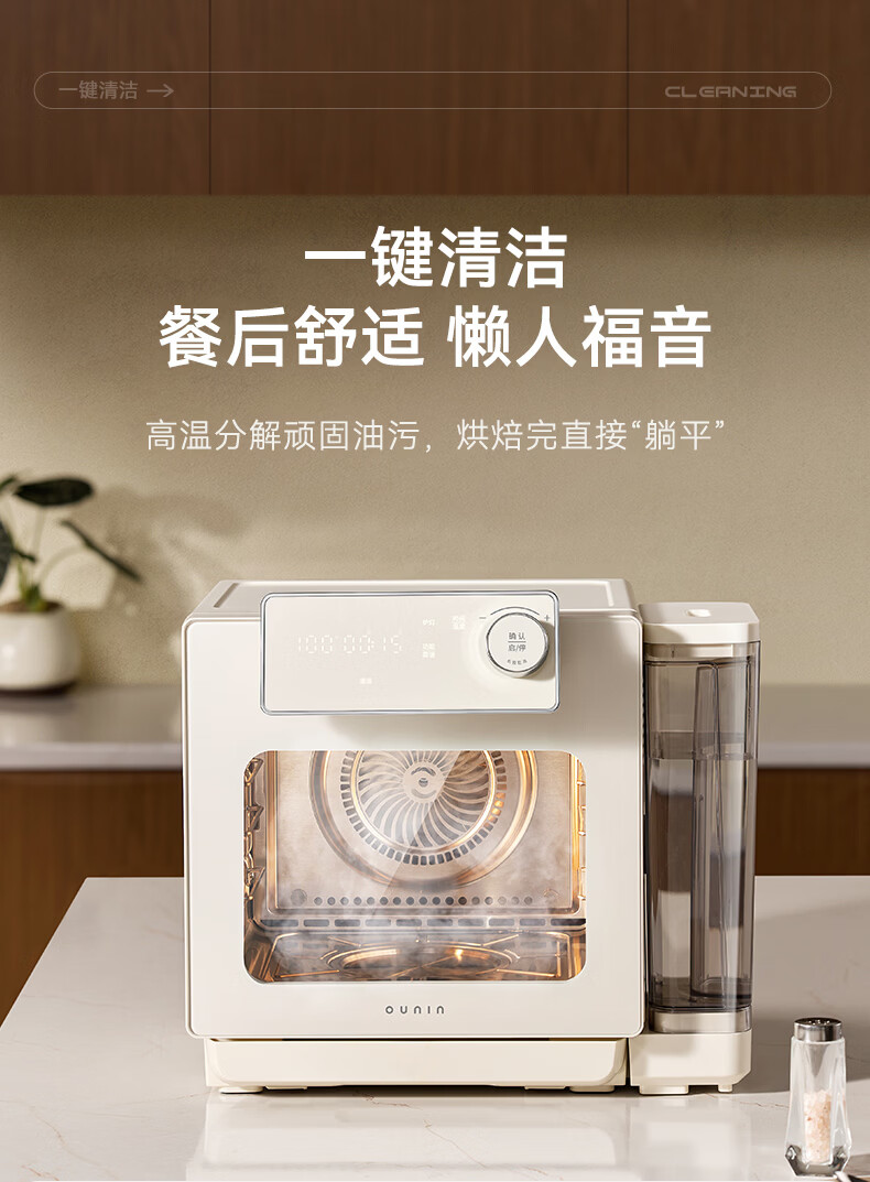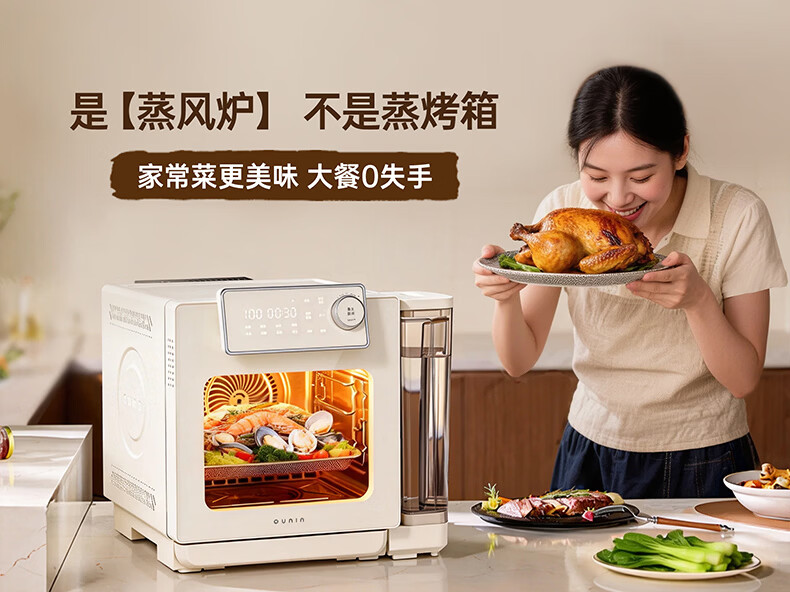 欧宁(OUNIN)小奶墩蒸烤箱台式家用蒸烤炸一体机蒸风炉电烤箱 304不锈钢内胆128项智能菜单 14L