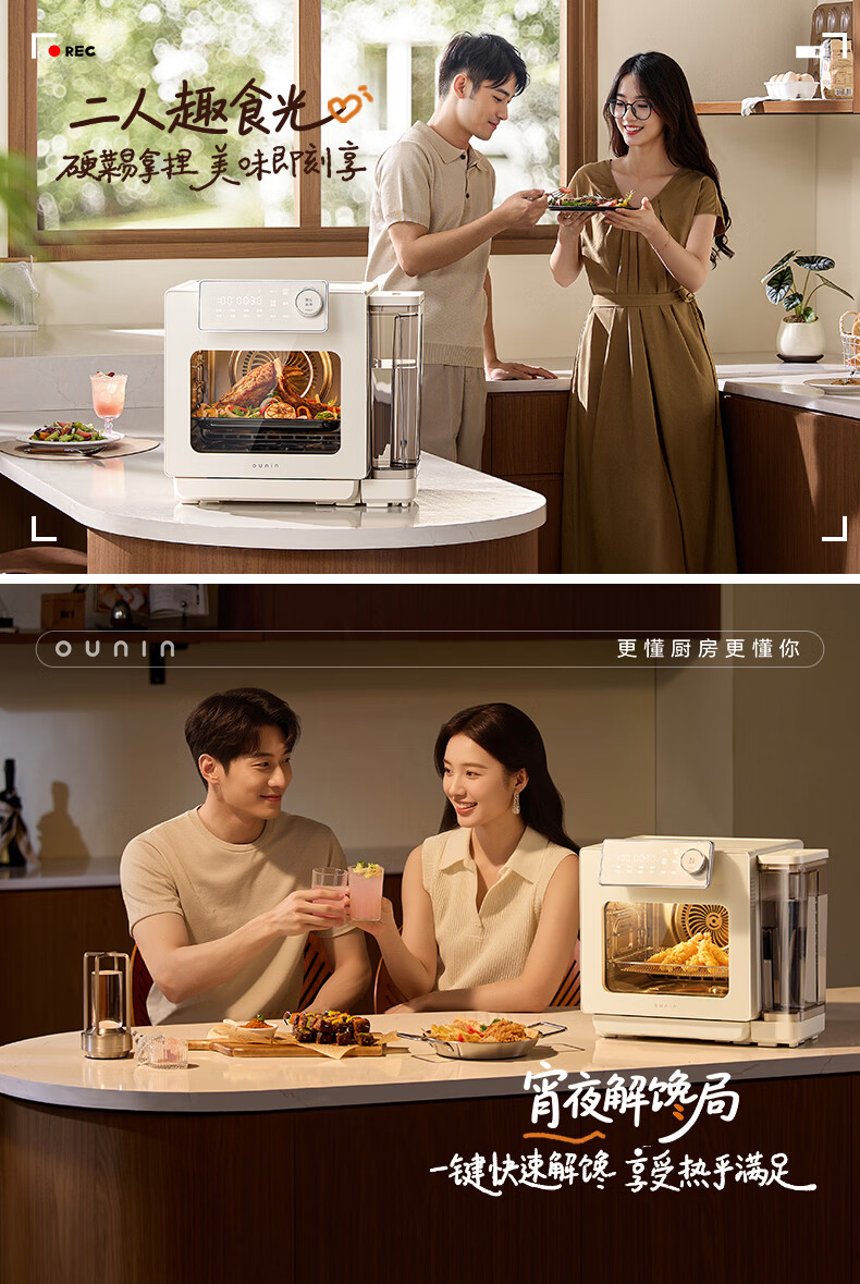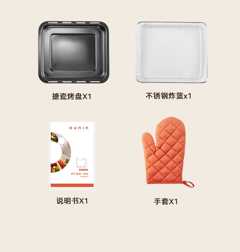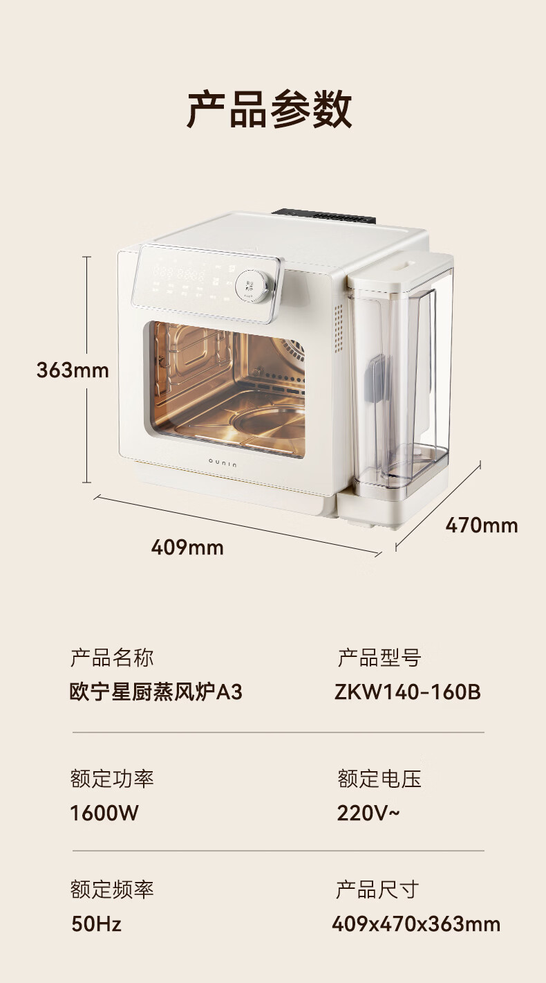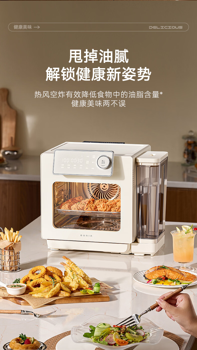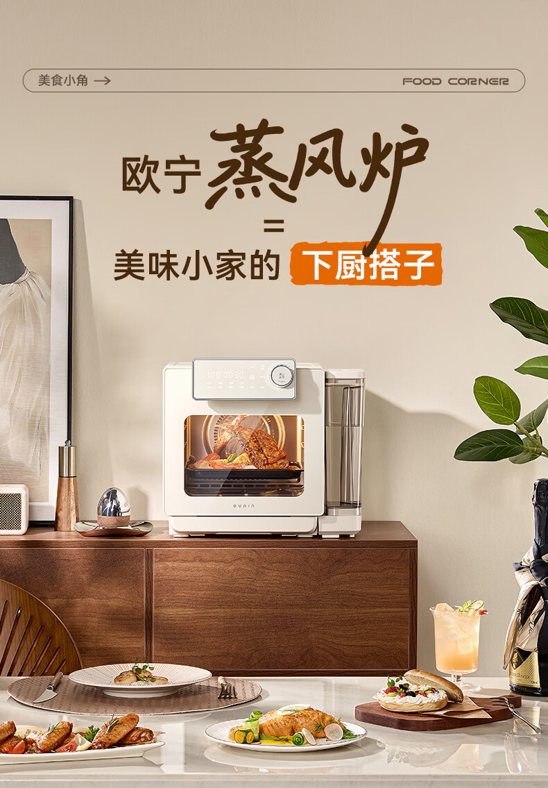 欧宁(OUNIN)小奶墩蒸烤箱台式家用蒸烤炸一体机蒸风炉电烤箱 304不锈钢内胆128项智能菜单 14L