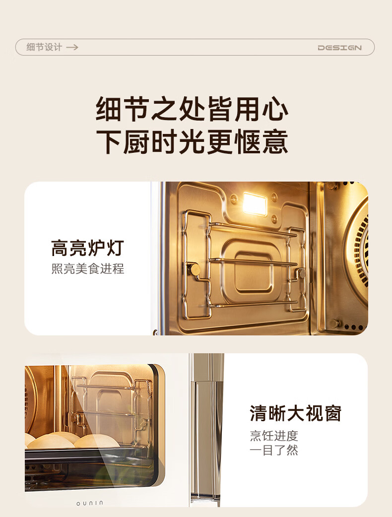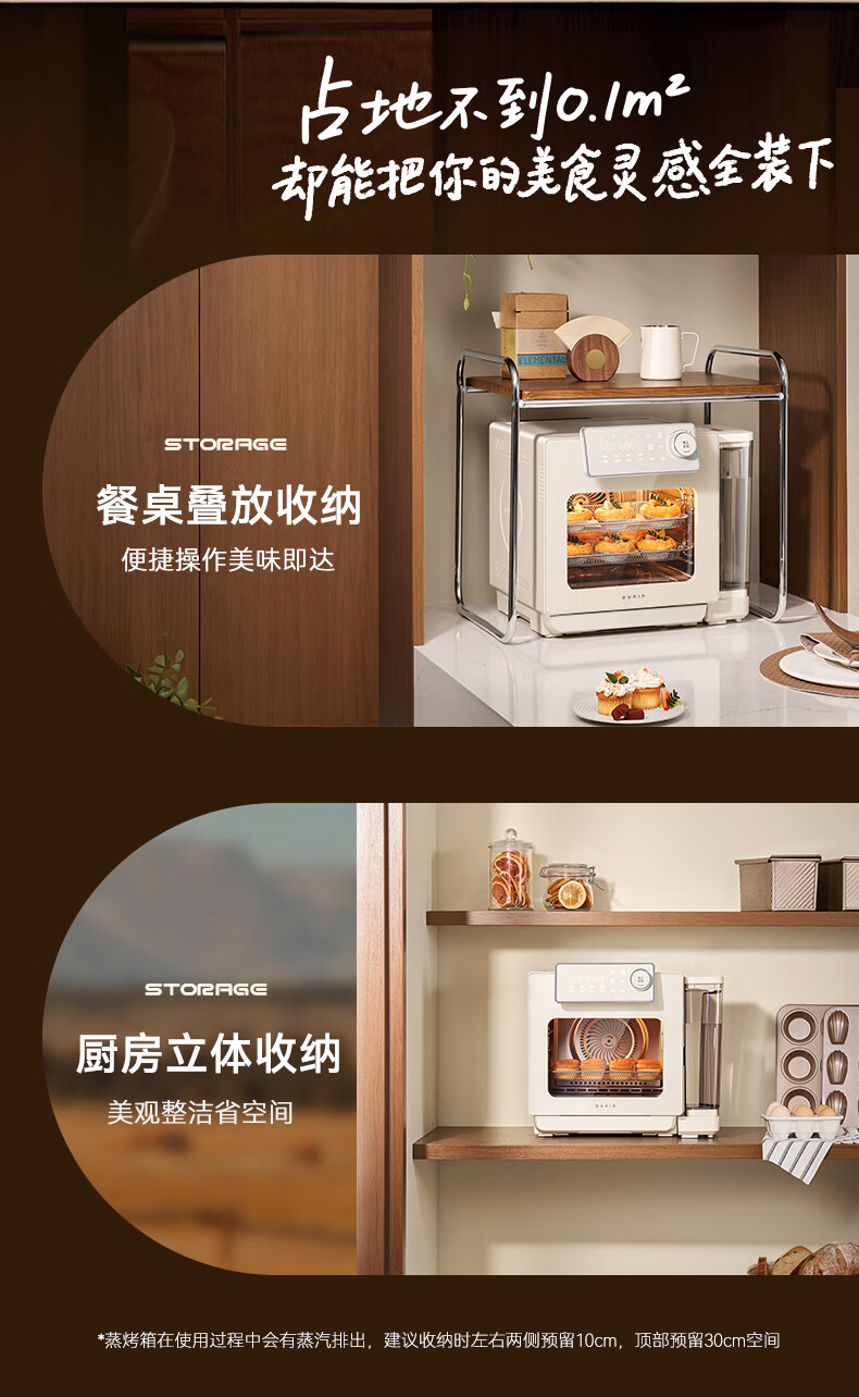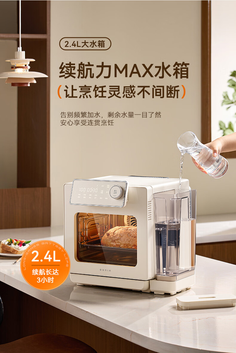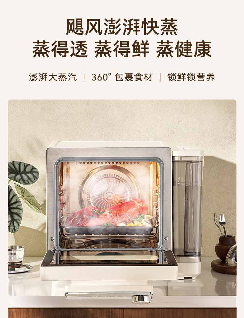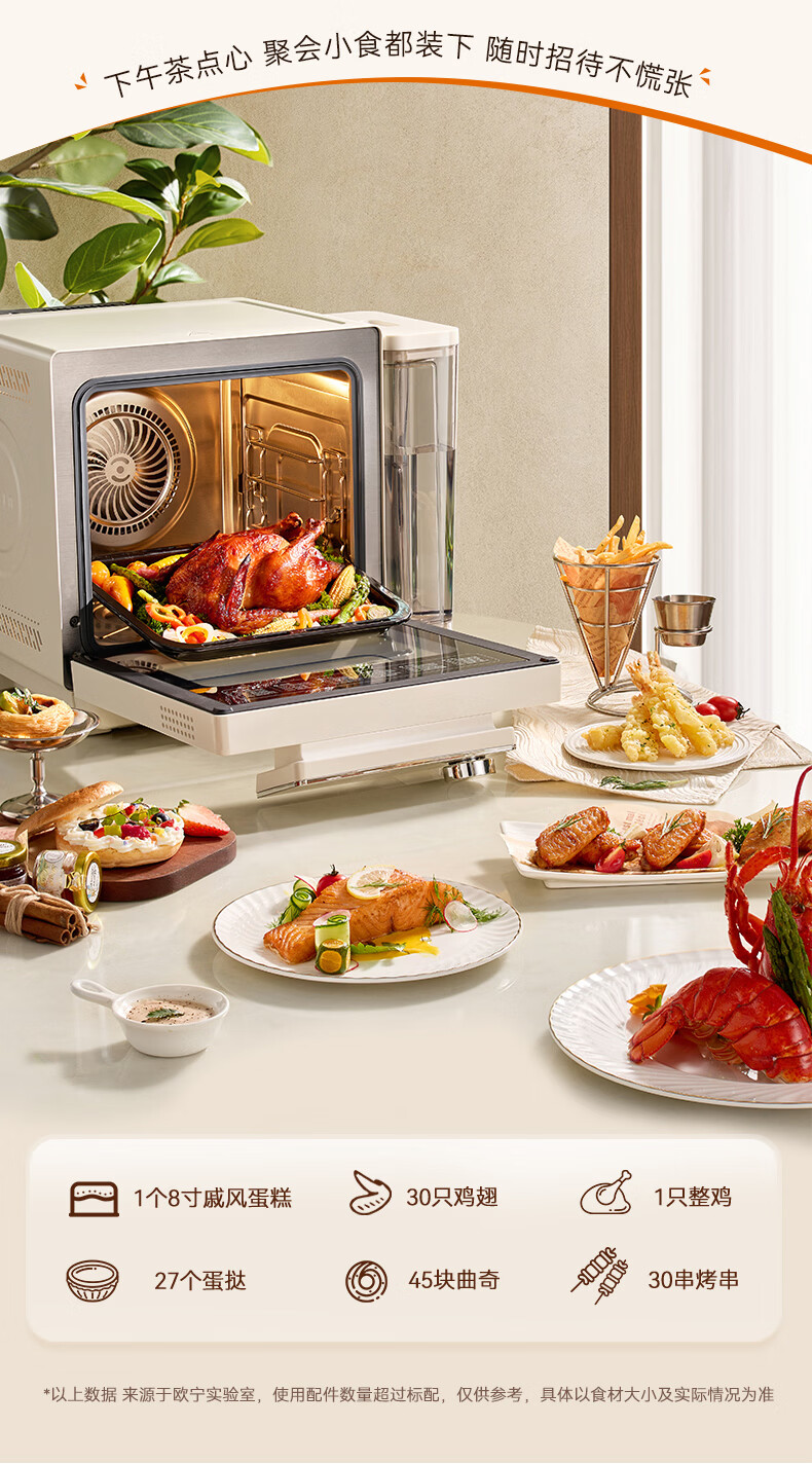 欧宁(OUNIN)小奶墩蒸烤箱台式家用蒸烤炸一体机蒸风炉电烤箱 304不锈钢内胆128项智能菜单 14L