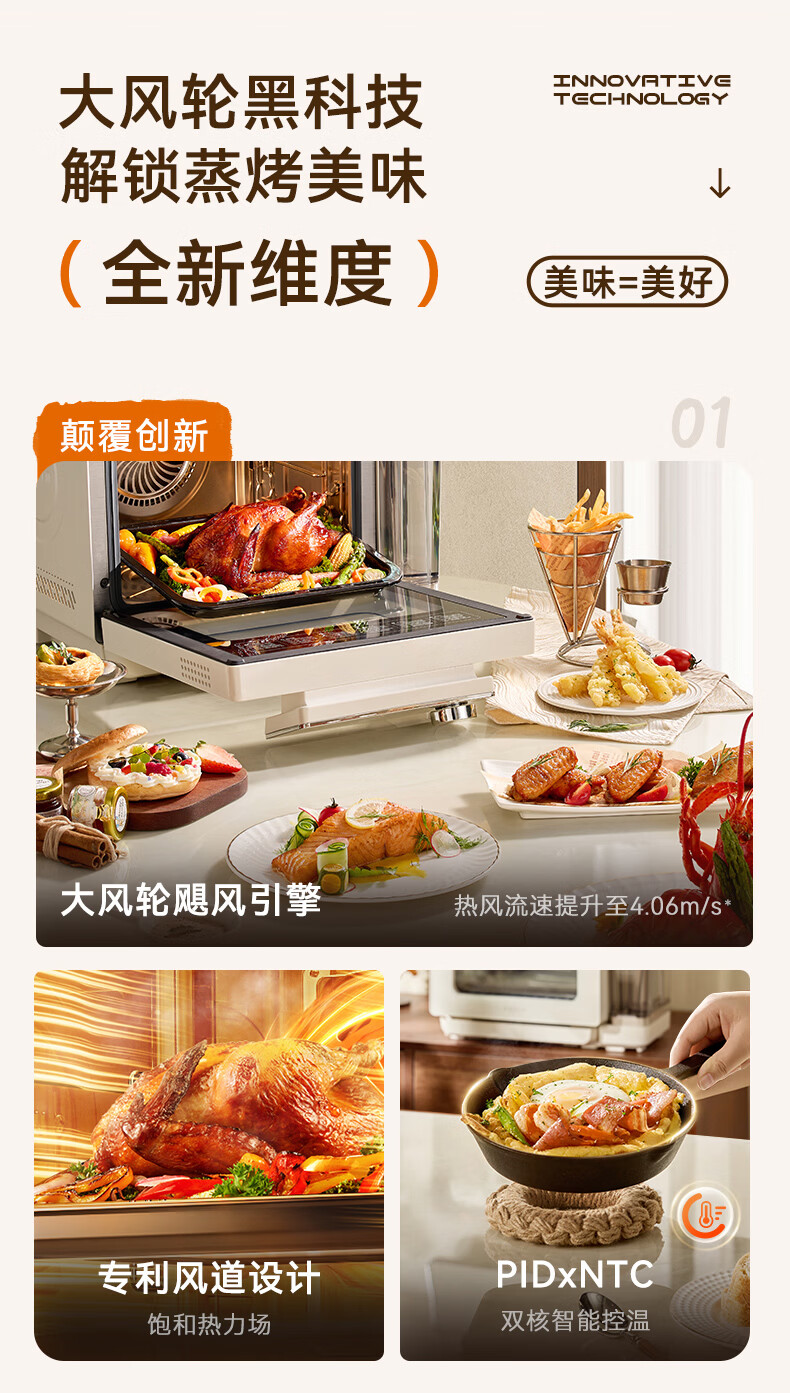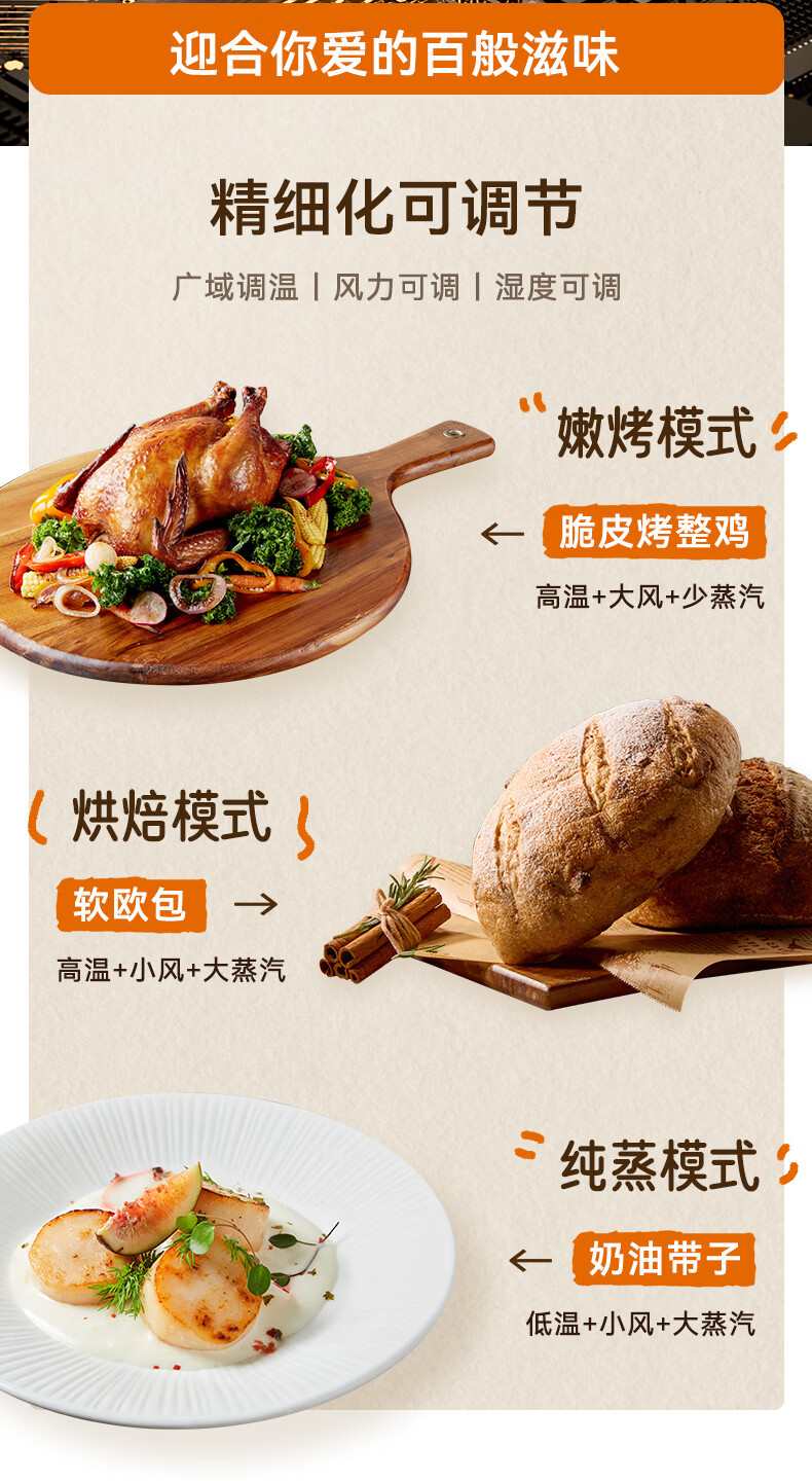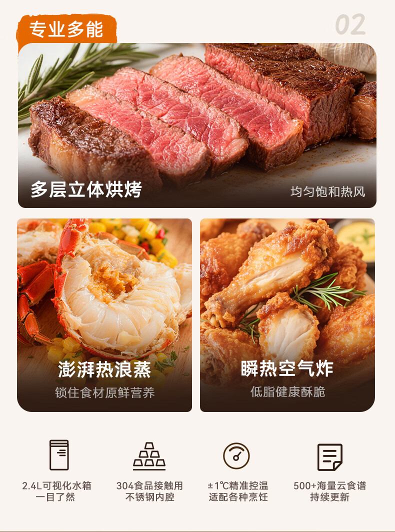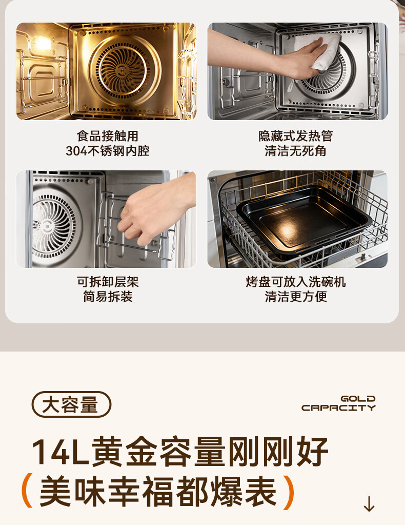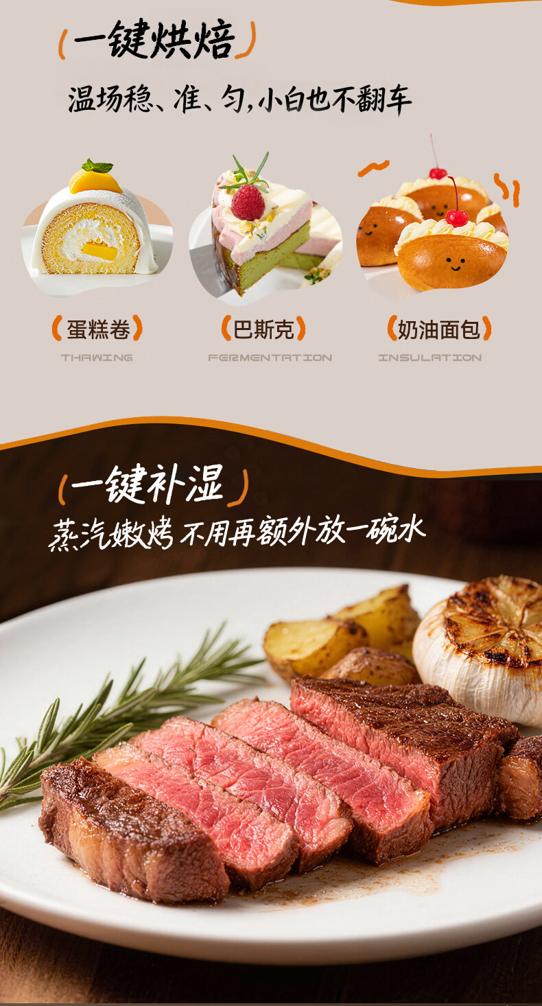 欧宁(OUNIN)小奶墩蒸烤箱台式家用蒸烤炸一体机蒸风炉电烤箱 304不锈钢内胆128项智能菜单 14L