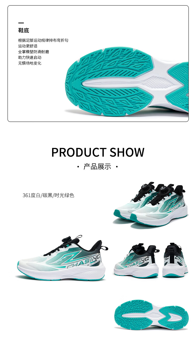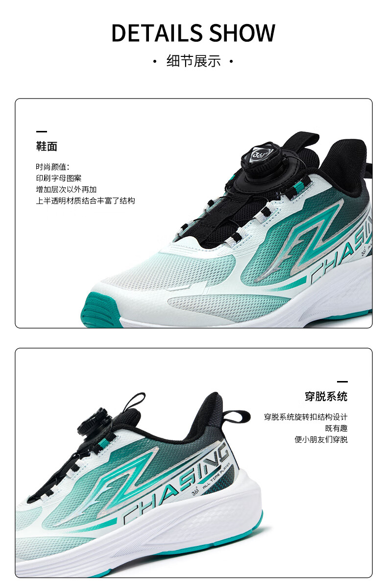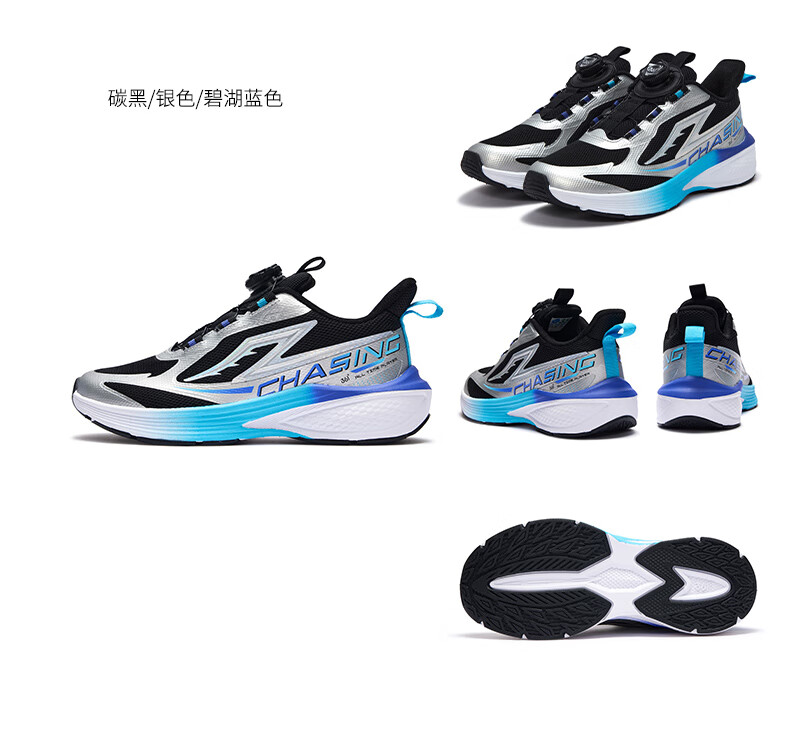 361°【商城同款】童鞋男童跑步鞋年春季新款中大童鞋子 碳黑/银色/碧湖蓝色 37