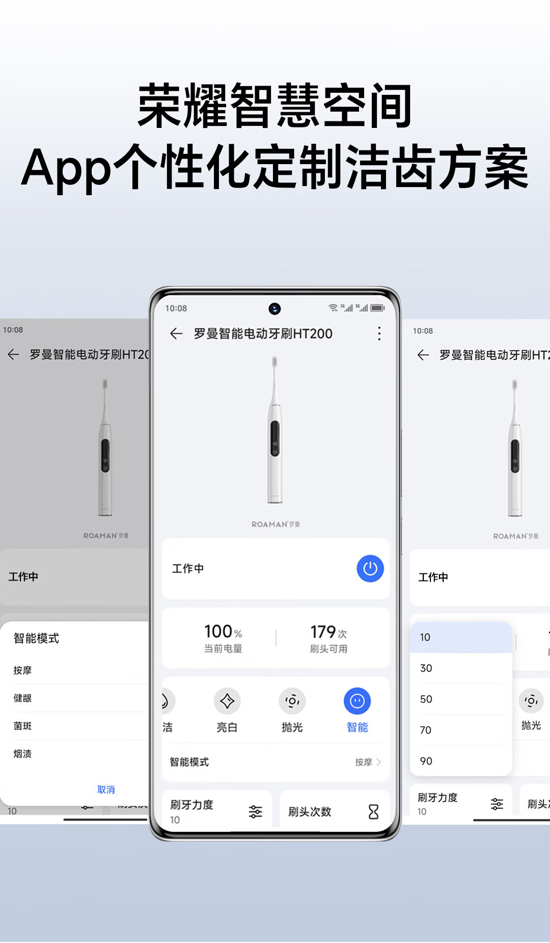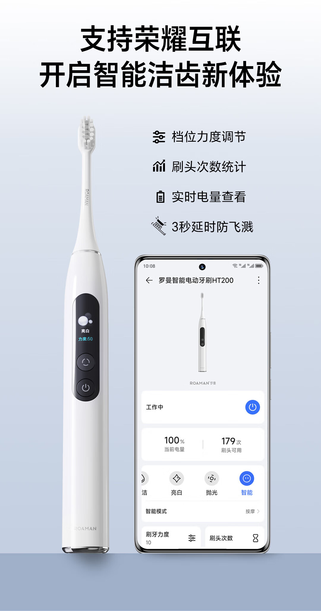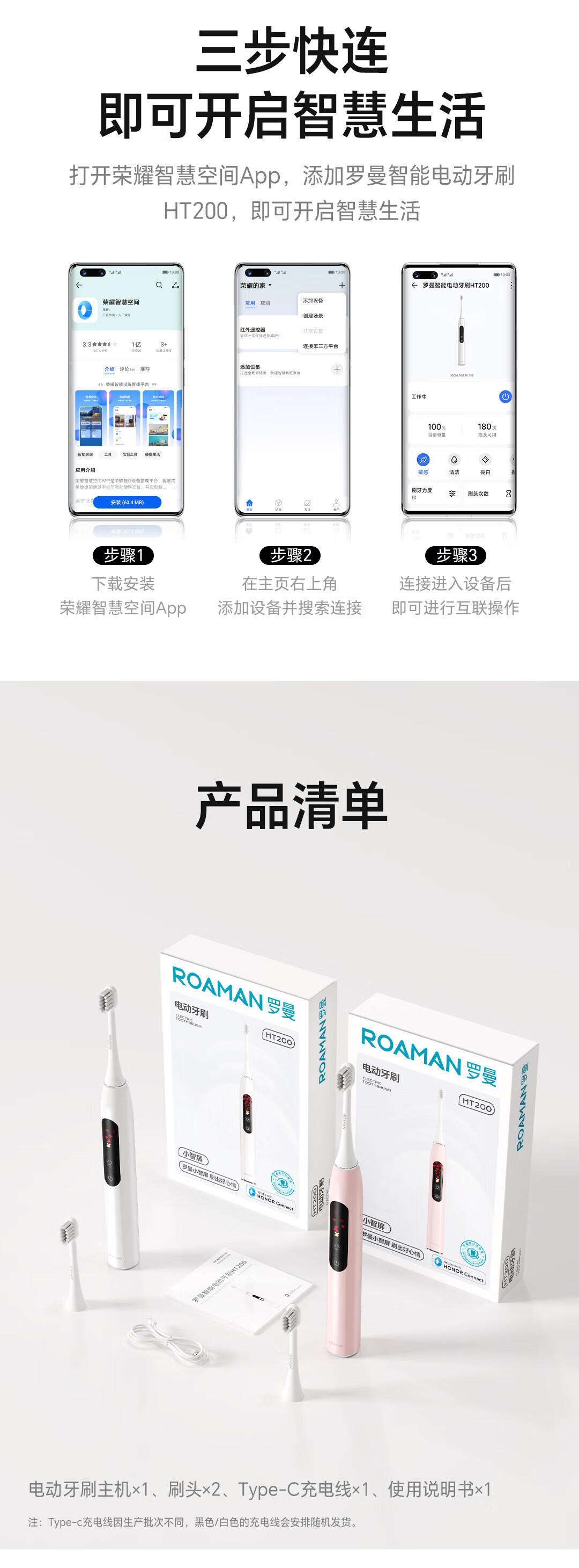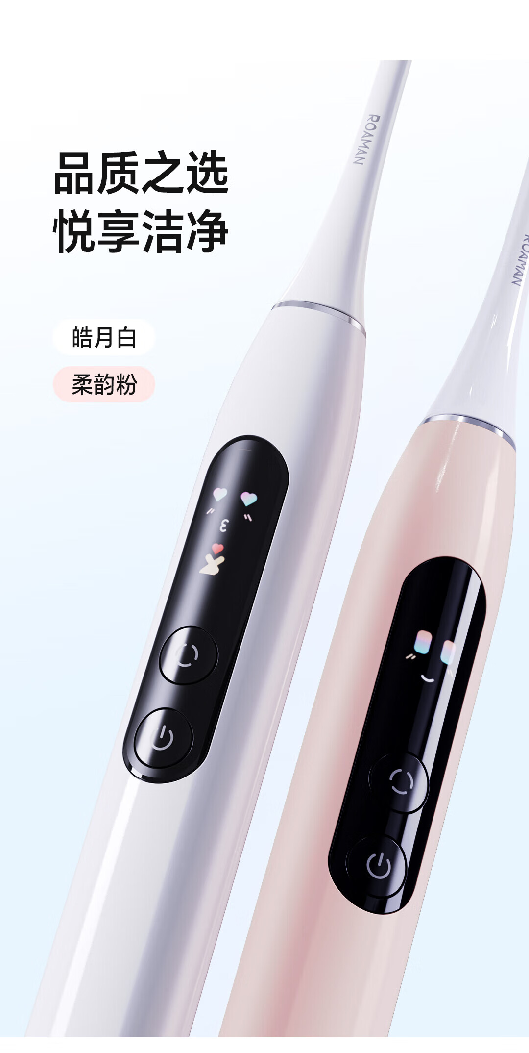 罗曼(ROAMAN)小熊智能屏电动牙刷牙医推荐深层清洁软毛护龈净白成人送男女朋友情侣生日礼物礼品HT200粉